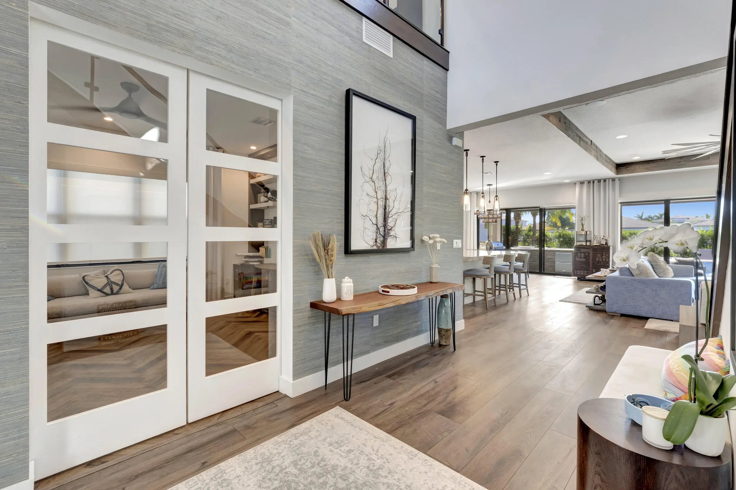 Stunning 2 story Pacifica model, located in one of Boca's most sought after communities, LOTUS. This 4 bd,4.5 bth home is located on a prime cul-de-sac lot with expansive driveway, 3 car custom garage, specialty floors and cabinetry. Interior upgrade with LVP throughout. Custom glass stair rail, designer lighting & ceiling fans, beautiful custom closets. Upgraded kitchen featuring Wolf, Subzero & Bosch appliances. Upgrade cabinets & countertops. Primary bedroom on main level w/freestanding whirlpool tub. Second floor loft was converted to media theater room. Backyard perfect for entertaining with heated pool, jacuzzi & sun shelf, luxury outdoor kitchen with Hibachi, motorized screens, awnings and whole house generator. Furniture negotiable. LOTUS OFFERS CONTEMPORARY LUXURY LIVING, WITHOUT THE COUNTRY CLUB FEES. EXPERIENCE THE AMAZING LIFESTYLE AND ENJOY ALL THE AMENITIES THAT LOTUS HAS TO OFFER. BEAUTIFUL 26,000 SQ FT CLUBHOUSE W/ EVENT ROOM WITH A BAR TO RELAX AND ENJOY, STATE OF THE ART FITNESS CENTER, EXERCISE STUDIO,INDOOR SPORTS COURT,LOCKER ROOMS W/SHOWERS,CARD ROOM,GAME ROOM & PLAY ROOM. SITE AMENITIES INCLUDE AN OUTDOOR RESTAURANT W/BAR,HEATED RESORT STYLE BEACH ENTRY POOL,WHIRLPOOL,LAP POOL,POOLSIDE CABANAS, WATERPARK, SHADED PLAYGROUND,BASKETBALL COURT, 8 TENNIS COURTS,6 PICKLEBALL COURTS W/ONSITE PRO. THERE IS ALSO A SOCIAL DIRECTOR MANAGING SOCIAL CLUBS & ORGANIZATIONS. LOTUS IS ZONED FOR "A" RATED SCHOOLS AND LOCATED MINUTES AWAY FROM DELRAY MARKETPLACE,DOWNTOWN DELRAY,BEACHES AND RESTAURANTS! WELCOME HOME!!!