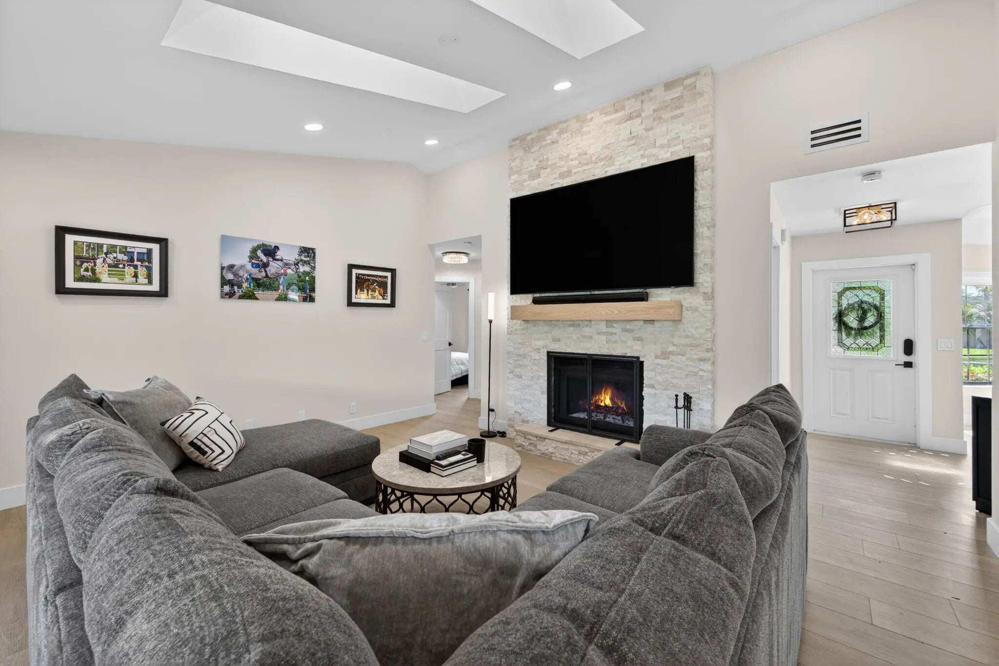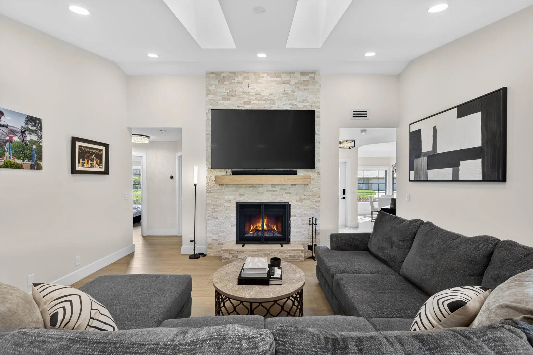 Experience the pinnacle of South Florida living in this stunning Wellington turn-key home, nestled in a quiet street on a cozy corner, 3 bedrooms 2 bathrooms, 2-car garage home featuring a spacious split floor plan with a large primary bedroom overlooking the patio, an ensuite bathroom with dual luxury sinks with walk-in spa-like shower. Two large bedrooms with second bathroom with walk-in shower. The kitchen opens to views of the patio and breakfast area leading to the living room boasting a luxurious stone wall wood burning fireplace. The formal dining room offers plenty of space for large gatherings with beautiful views of the outside. The private backyard and covered patio are perfect for entertaining. Located in highly sought after Sugar Pond Manor. No HOA in the heart of Wellington!