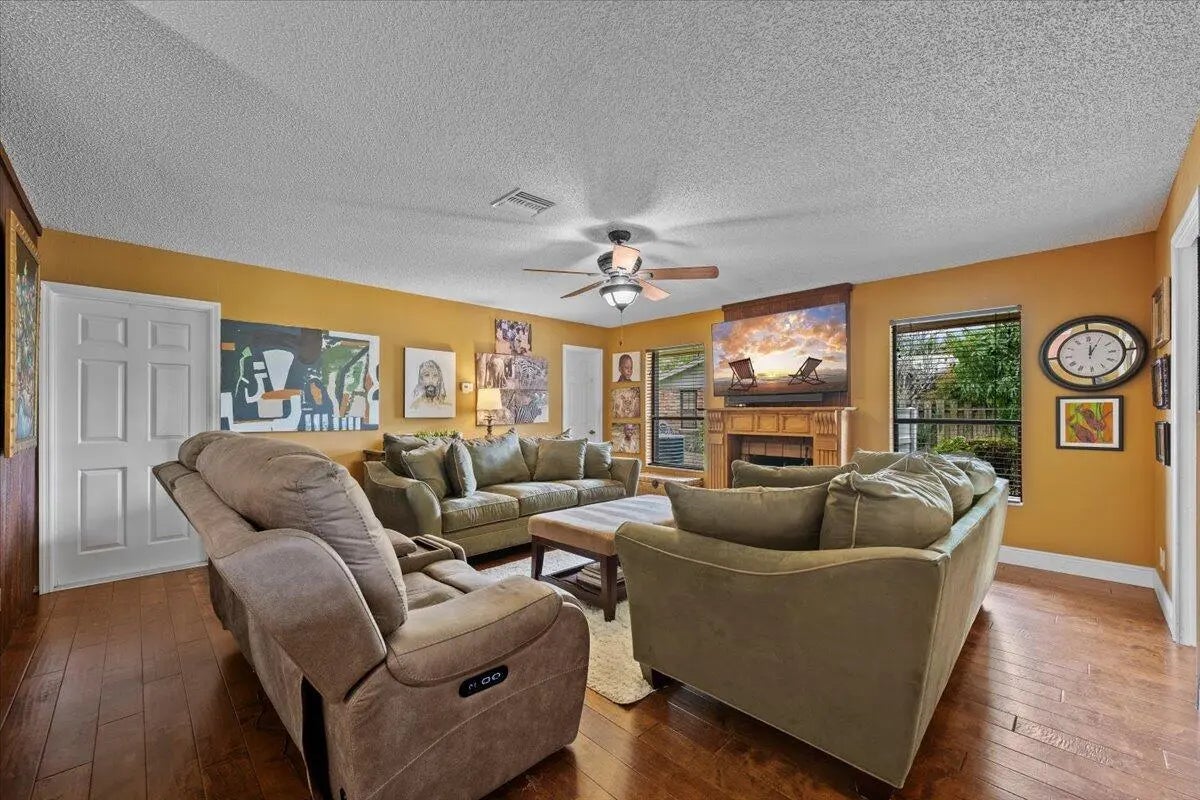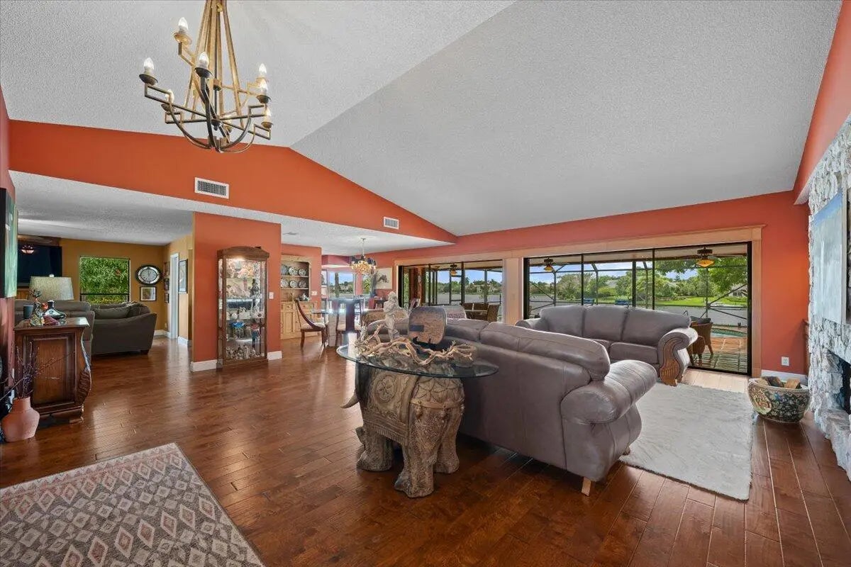 Imagine waking up to long lake views every morning, and welcoming each sunrise from your private screened pool deck, not to mention sunset boat rides on Lake Wellington. As the cooler weather approaches, the entire back of the house can open up, affording you the luxury of building fires in BOTH wood burning fireplaces. This well loved home even has a private office with a dedicated entrance and half bath, providing the perfect professional environment for receiving clients, separate from your living space. The roof, floors, baseboards, lanai, and extended patio are ~eight years old. Both AC units are 4 years old, and the electrical panel is 2025. The 180 sq. ft. permitted office is not reflected in the tax records, bringing the total sq. ft. under air to 3,065.