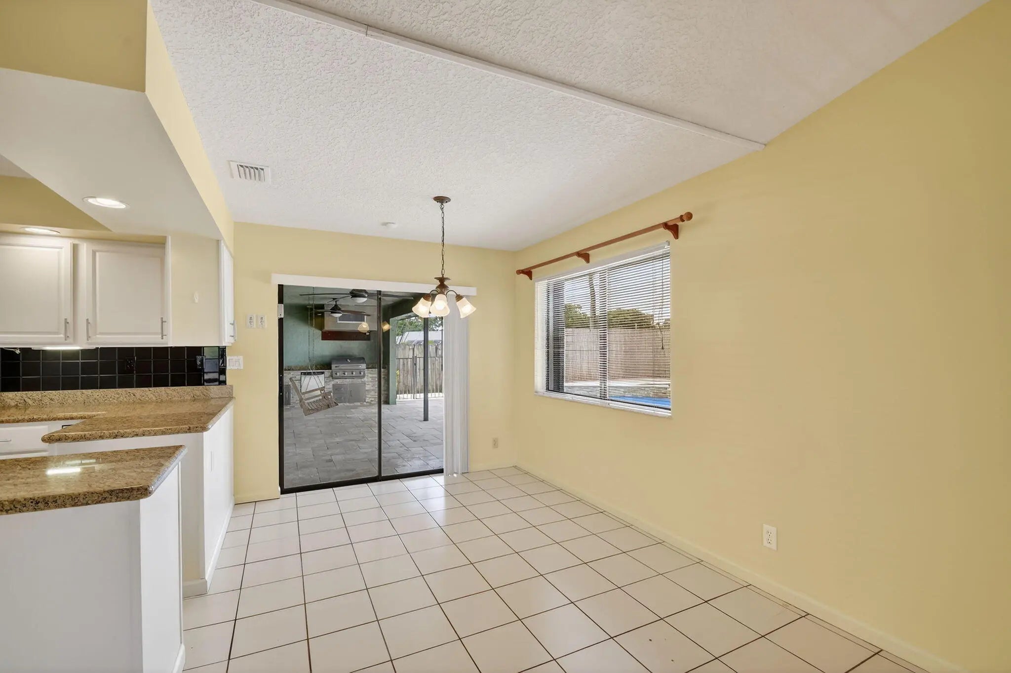Spacious 4 BR/3 BA-1/3 Acre property with NO HOA- Outside private retreat designed for Florida living w/ fully fenced yard, saltwater solar htd. pool, cabana bath, & outdoor kitchen for year round enjoyment -Large kitchen/Family Room area wi/separate breakfast room & wood-burning fireplace for those few cold Florida nights & football watching parties- Large formal Dining Room for holiday entertaining-Split bedroom layout affords privacy-Other features include oversized garage, circular driveway w/ plenty of room to park, central vacuum & security systems, hurricane accordian shutters, sprinklers on well , exterior Ring cameras- Newly painted interior-New bedroom carpet- Big backyard w/room for RV, boat or camper-Located near top-rated schools, shopping, dining, parks & equestrian events EZ to show & quick occupancy! All meas. approx.