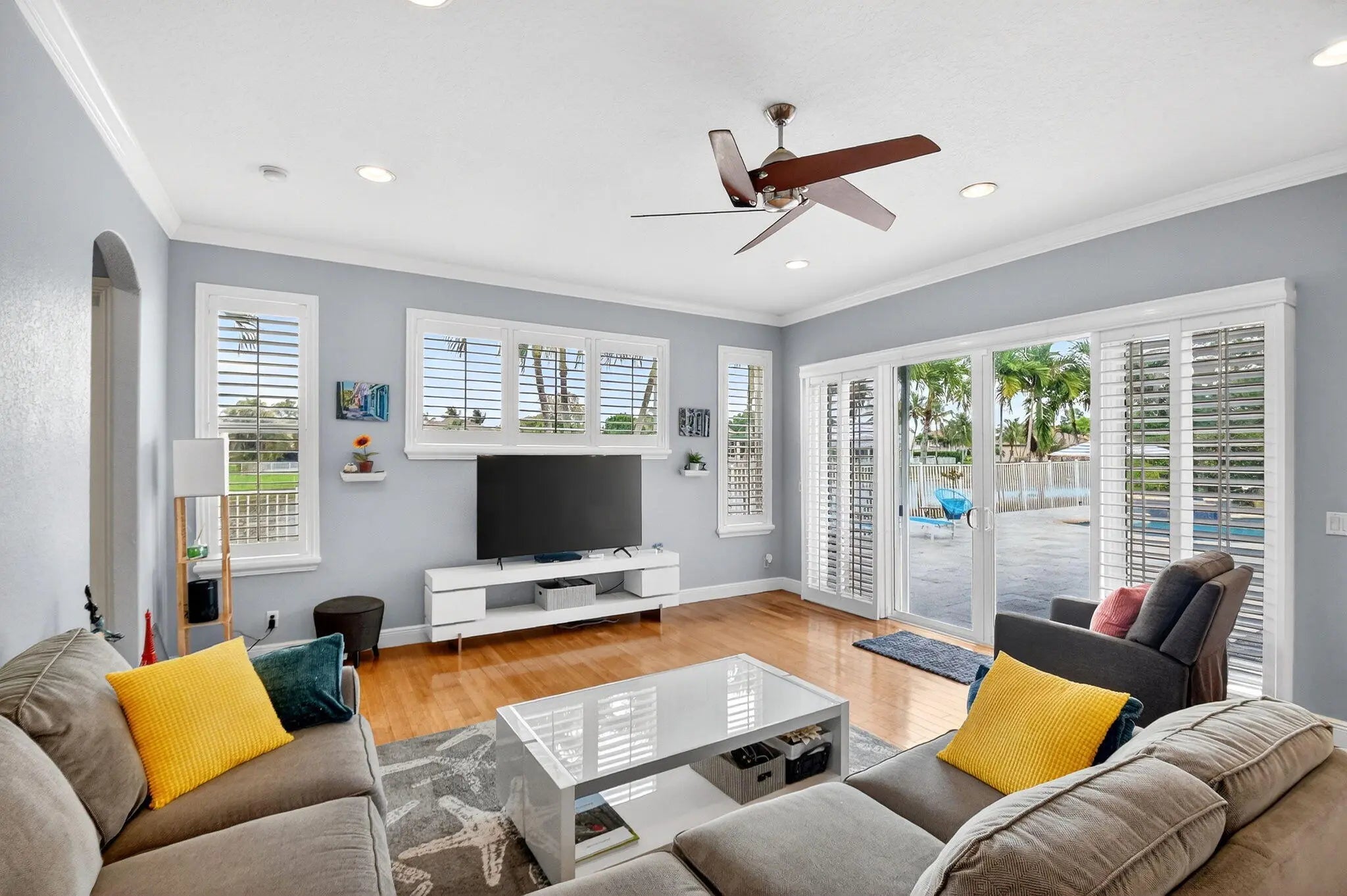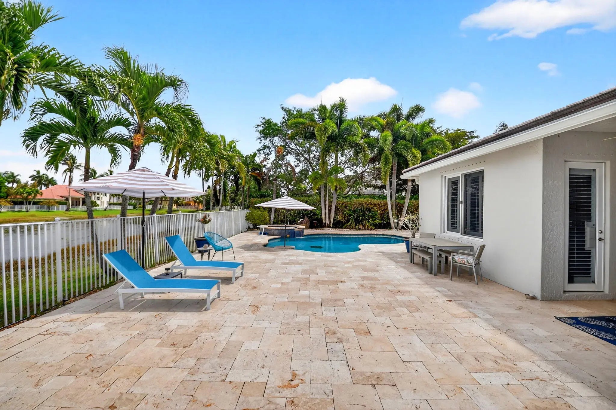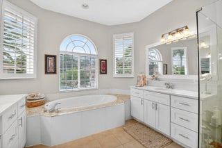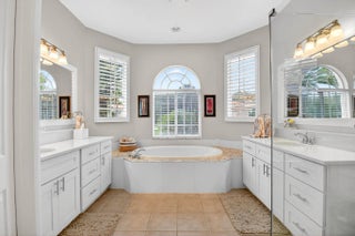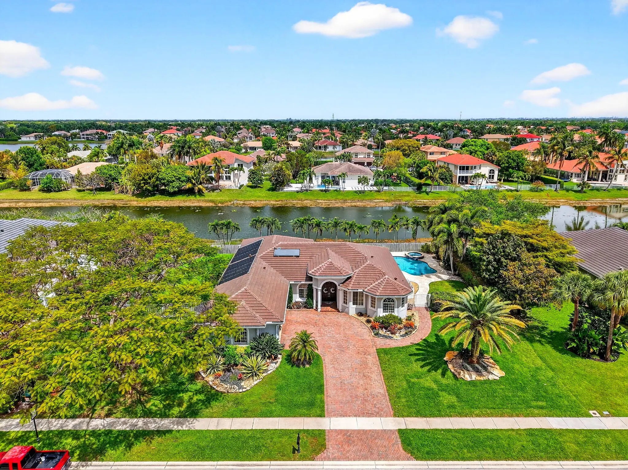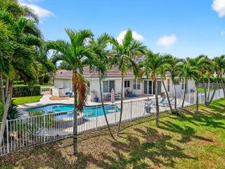 Outstanding lakefront living in Wellington! This spacious one-story home offers 4 bedrooms + den (or 5th bedroom), 3.5 baths, and over 3,000 sqft of beautifully updated living space on a fully fenced 0.40-ACRE LOT. Move-in ready with a NEW ROOF (2025), two A/C systems (2020/2021), and a solar hot water heater. The upgraded kitchen features quartz countertops, double convection ovens & open bar top... while renovated baths, bamboo flooring throughout and custom closets add style and functionality. Enjoy the Florida lifestyle with a private pool and spa, dual solar/electric heating, retractable awning & serene lake views. Additional highlights include partial impact windows, a 3-car garage, and plenty of space for entertaining. A rare combination of upgrades, space, and waterfront setting!