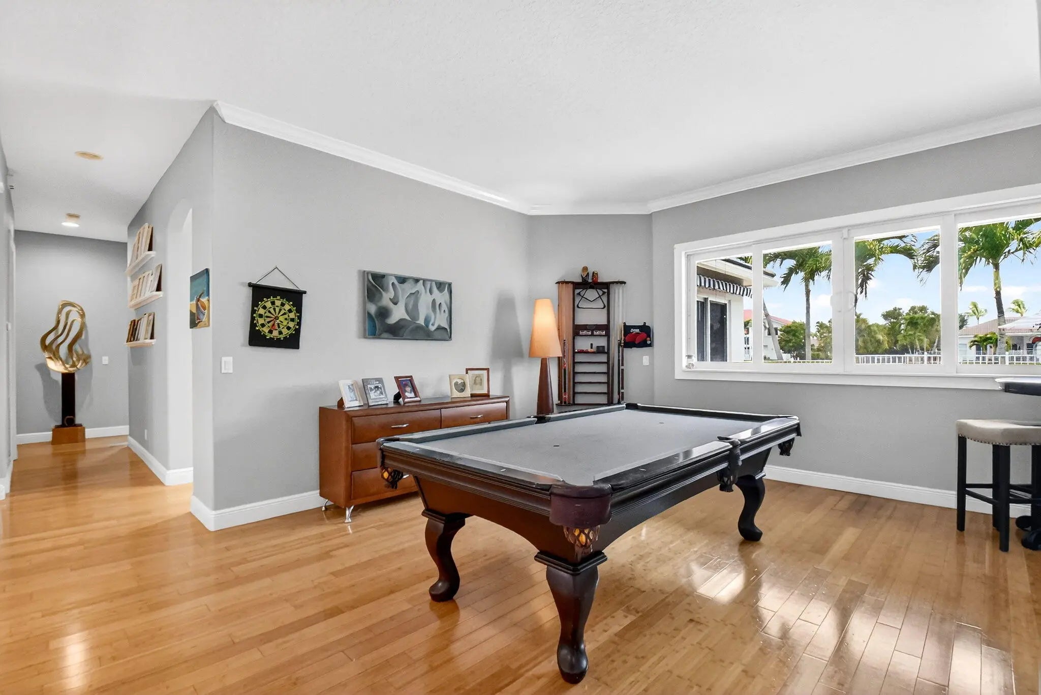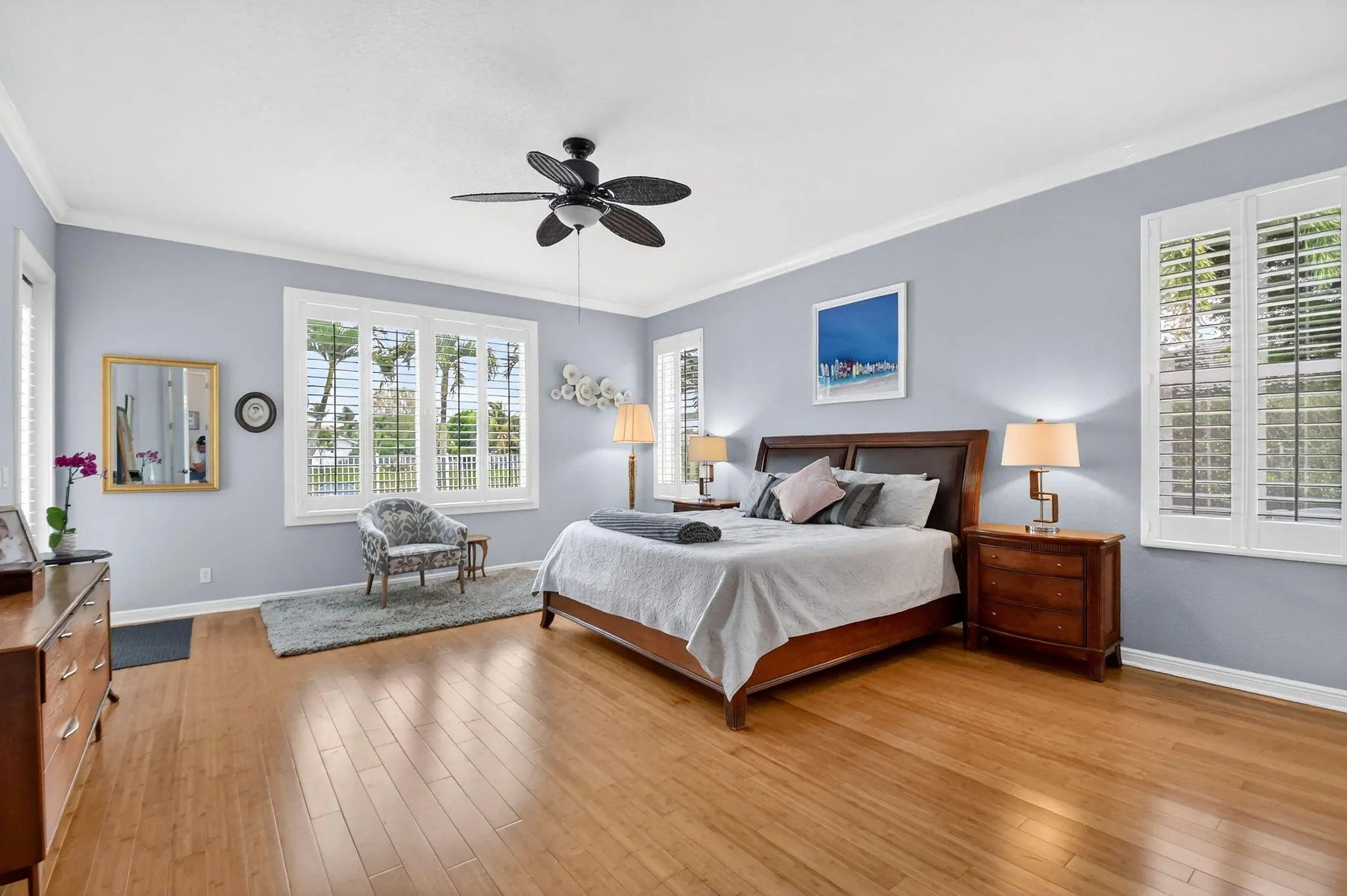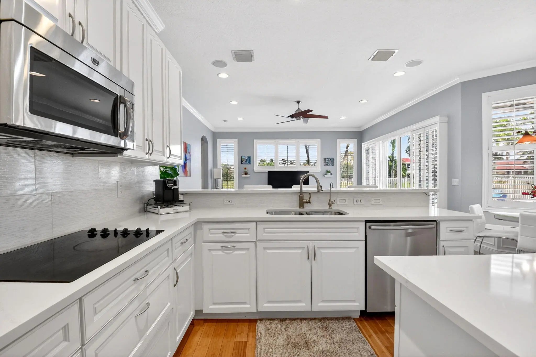 Outstanding lakefront living in Wellington! This spacious one-story home offers 4 bedrooms + den (or 5th bedroom), 3.5 baths, and over 3,000 sqft of beautifully updated living space on a fully fenced 0.40-ACRE LOT. Move-in ready with a NEW ROOF (2025), two A/C systems (2020/2021), and a solar hot water heater. The upgraded kitchen features quartz countertops, double convection ovens & open bar top... while renovated baths, bamboo flooring throughout and custom closets add style and functionality. Enjoy the Florida lifestyle with a private pool and spa, dual solar/electric heating, retractable awning & serene lake views. Additional highlights include partial impact windows, a 3-car garage, and plenty of space for entertaining. A rare combination of upgrades, space, and waterfront setting!