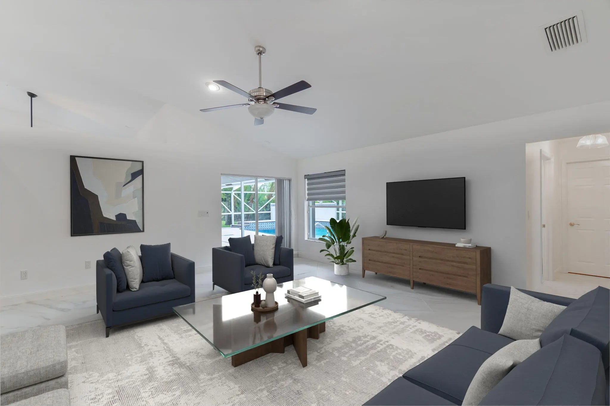 Gracefully situated on a quiet cul-de-sac within the exclusive community Meadow Wood, this updated 4BR/2.5BA pool home offers a refined blend of luxury, comfort, & location. Zoned for Wellington's top A-rated schools & just minutes from world-class equestrian venues, fine dining, & premier shopping. A grand double-door entry opens to a light-filled open-concept layout with soaring ceilings & expansive living spaces. The designer kitchen features a snack bar & breakfast nook, seamlessly flowing into the great room. The primary suite offers dual walk-in closets & a spa-like bath. Split floor plan featuring spacious secondary bedrooms. Enjoy indoor-outdoor living with a screened lanai, resort-style pool, & spa surrounded by lush landscaping—perfect for relaxing or entertaining.