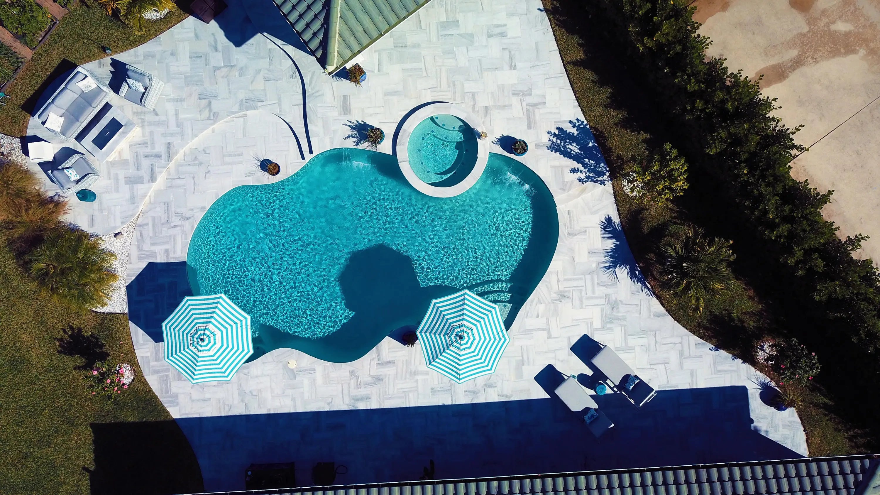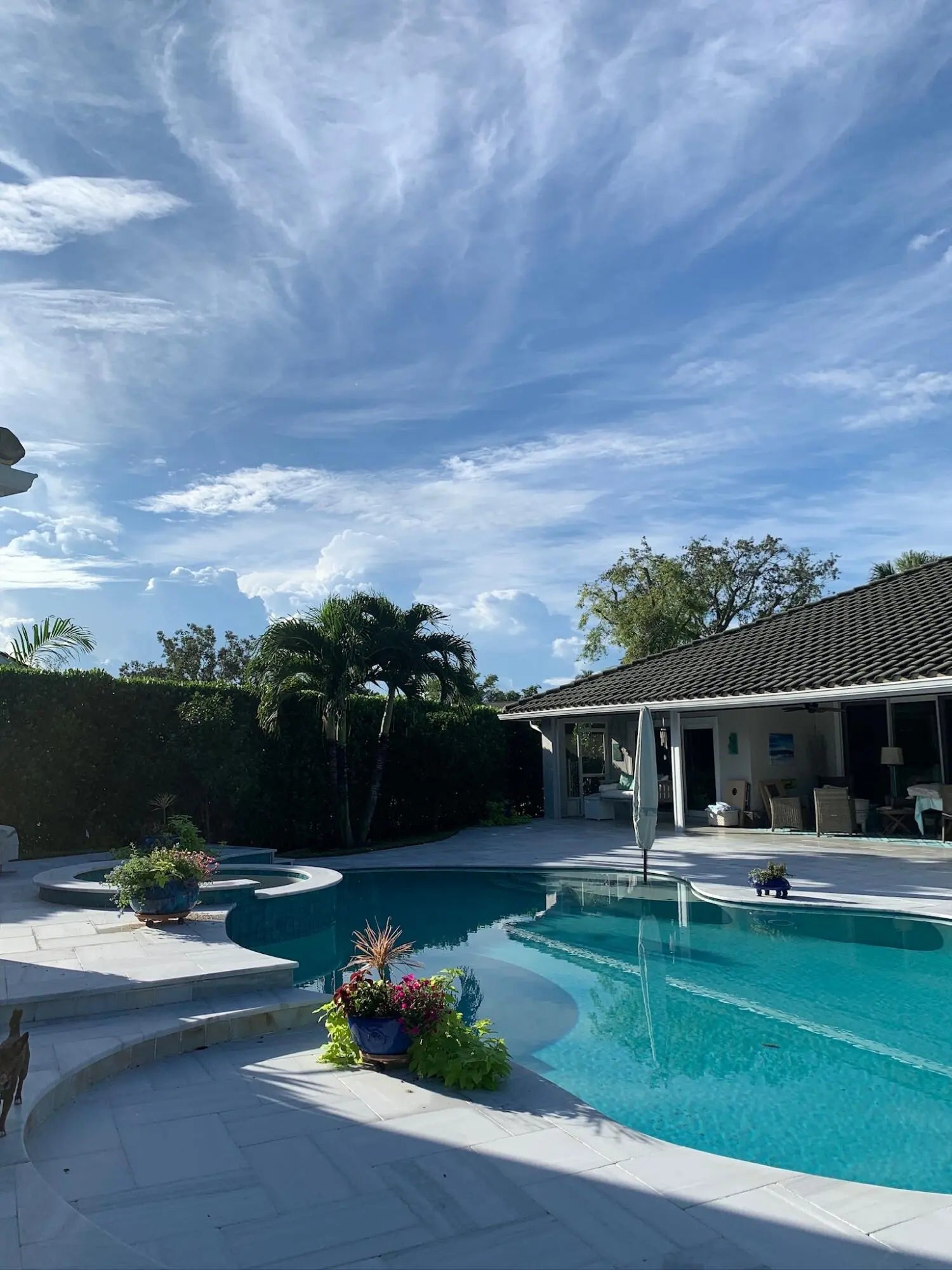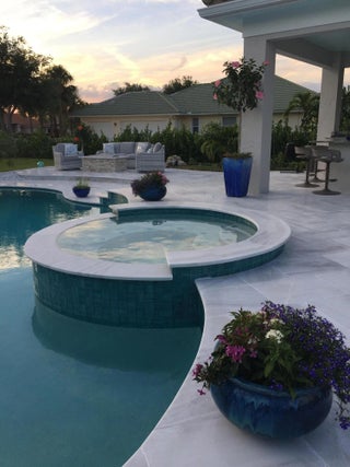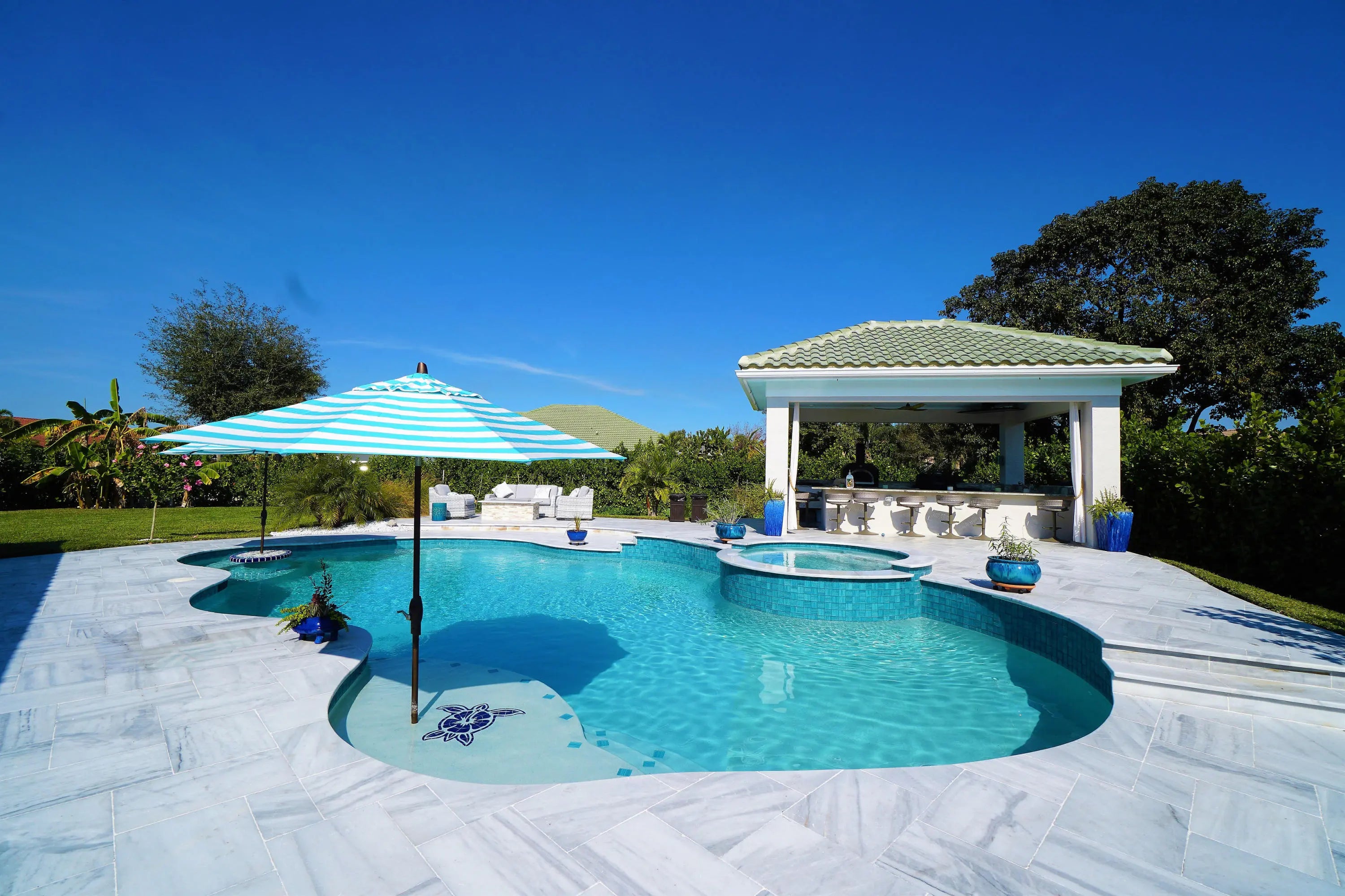Fenced, Gas Heat, Gunite, Heated, In Ground, Pool/Spa Combo, Salt Water, Waterfall, Chlorination - Auto, Equipment Included, Free Form, Private