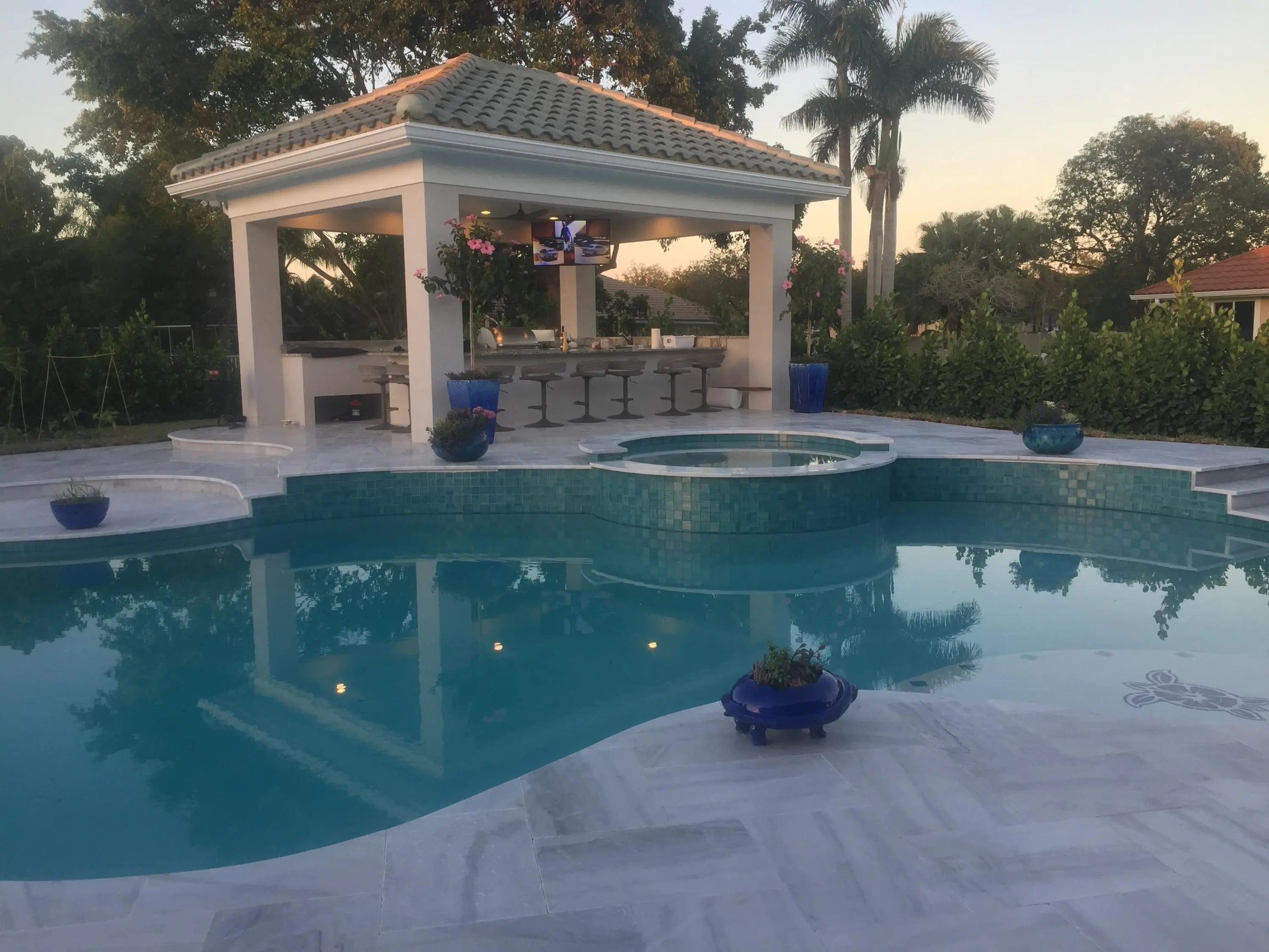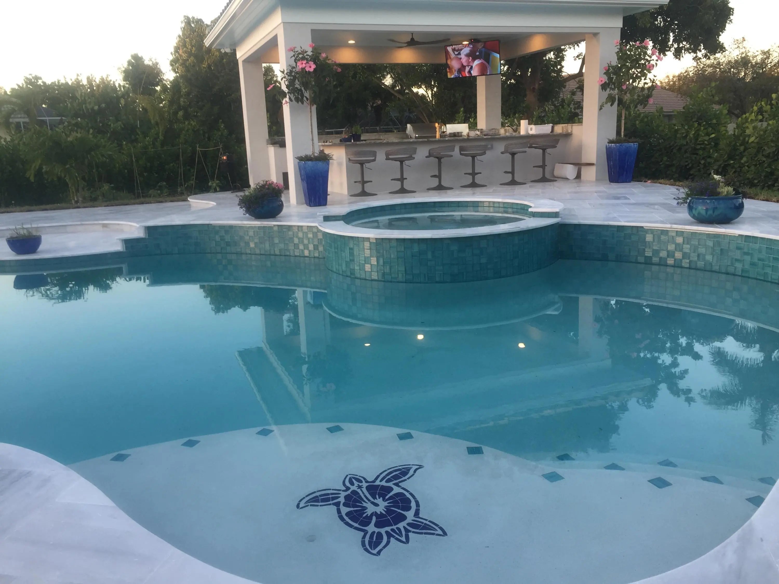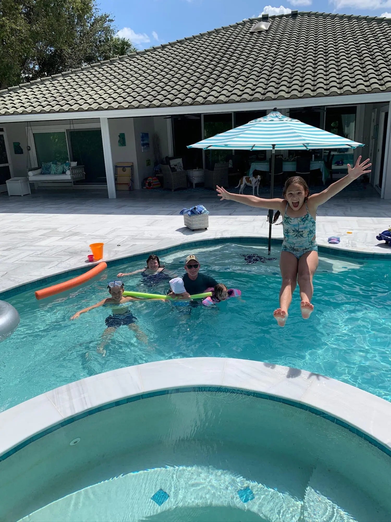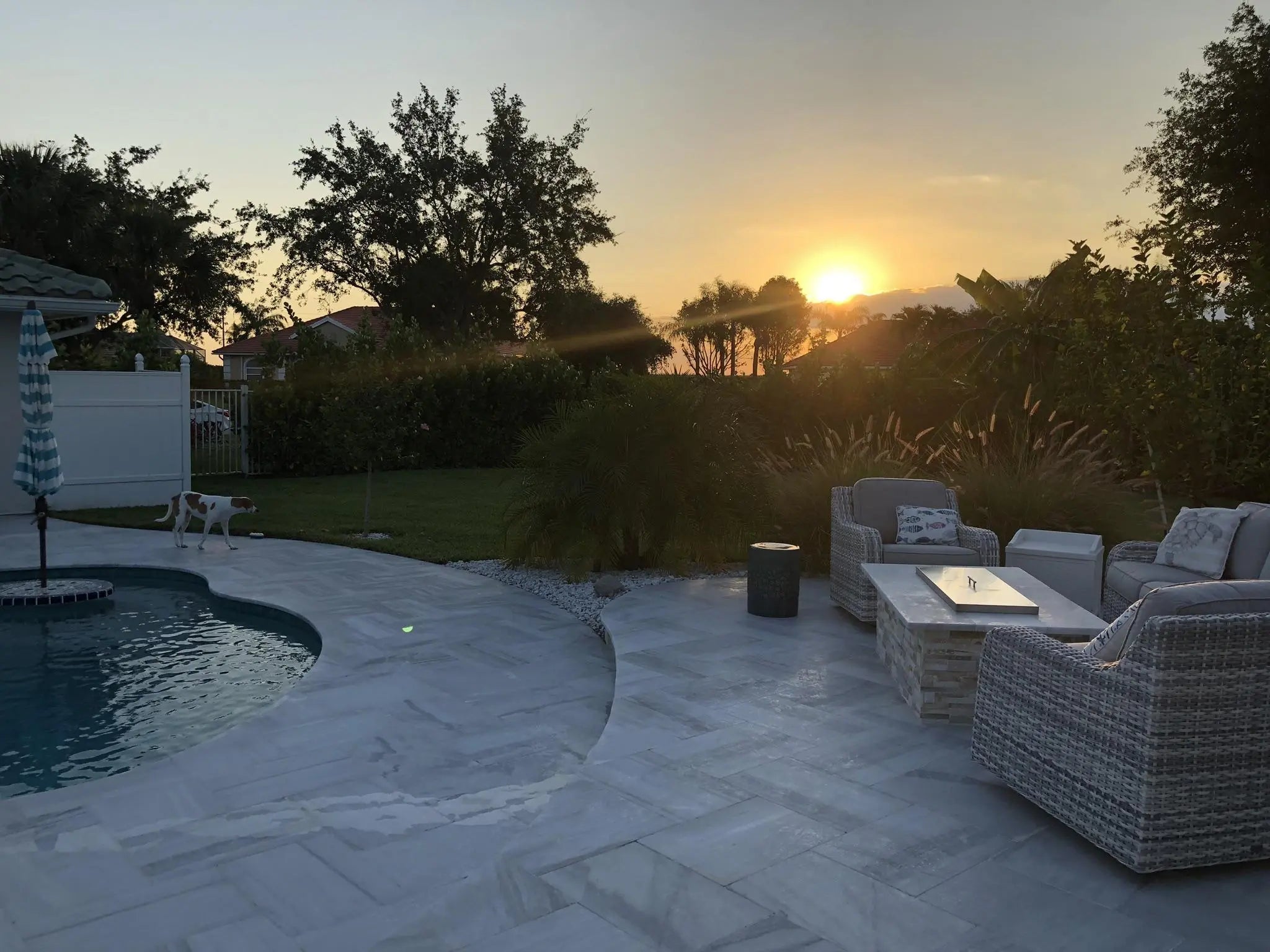 Fenced, Gas Heat, Gunite, Heated, In Ground, Pool/Spa Combo, Salt Water, Waterfall, Chlorination - Auto, Equipment Included, Free Form, Private