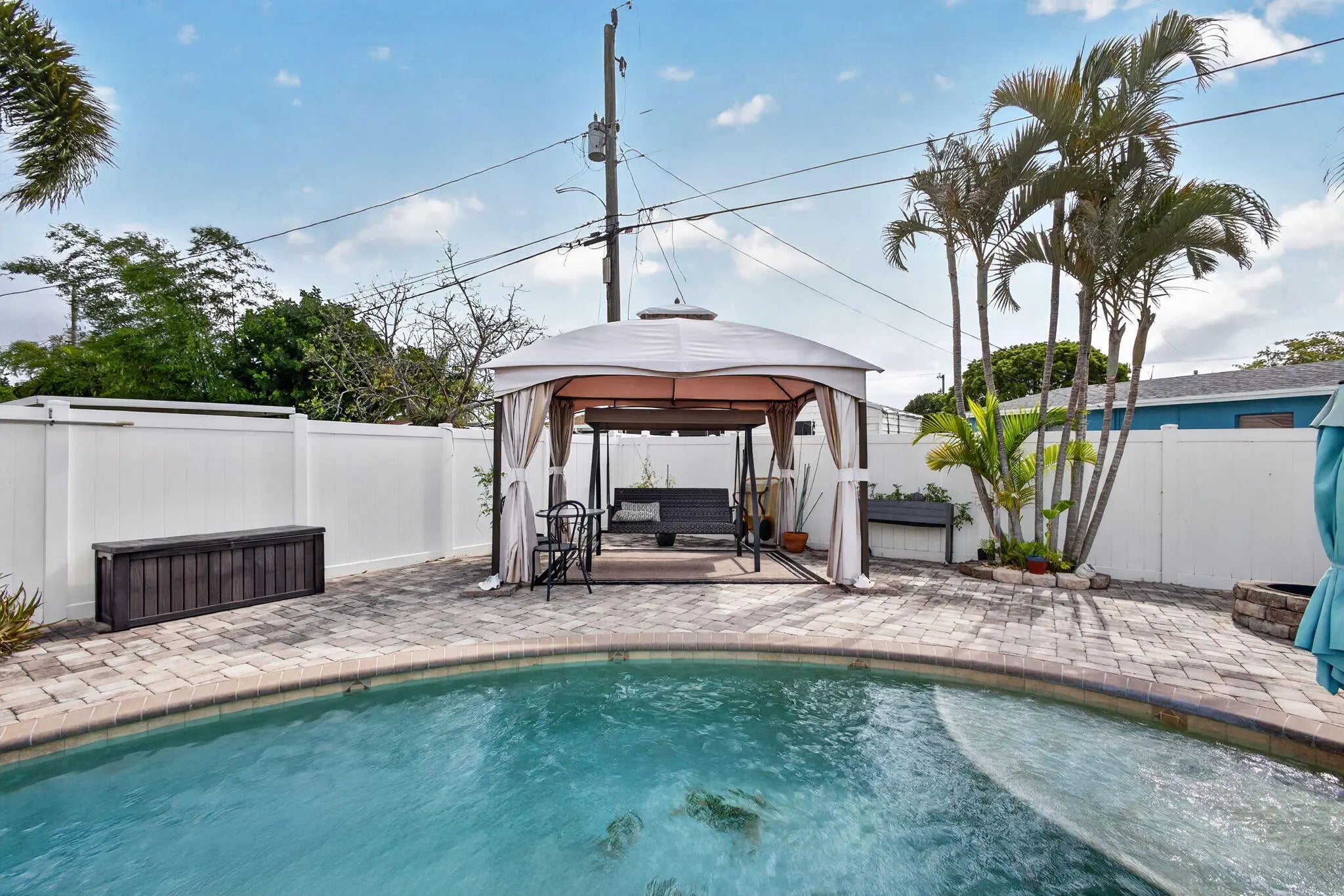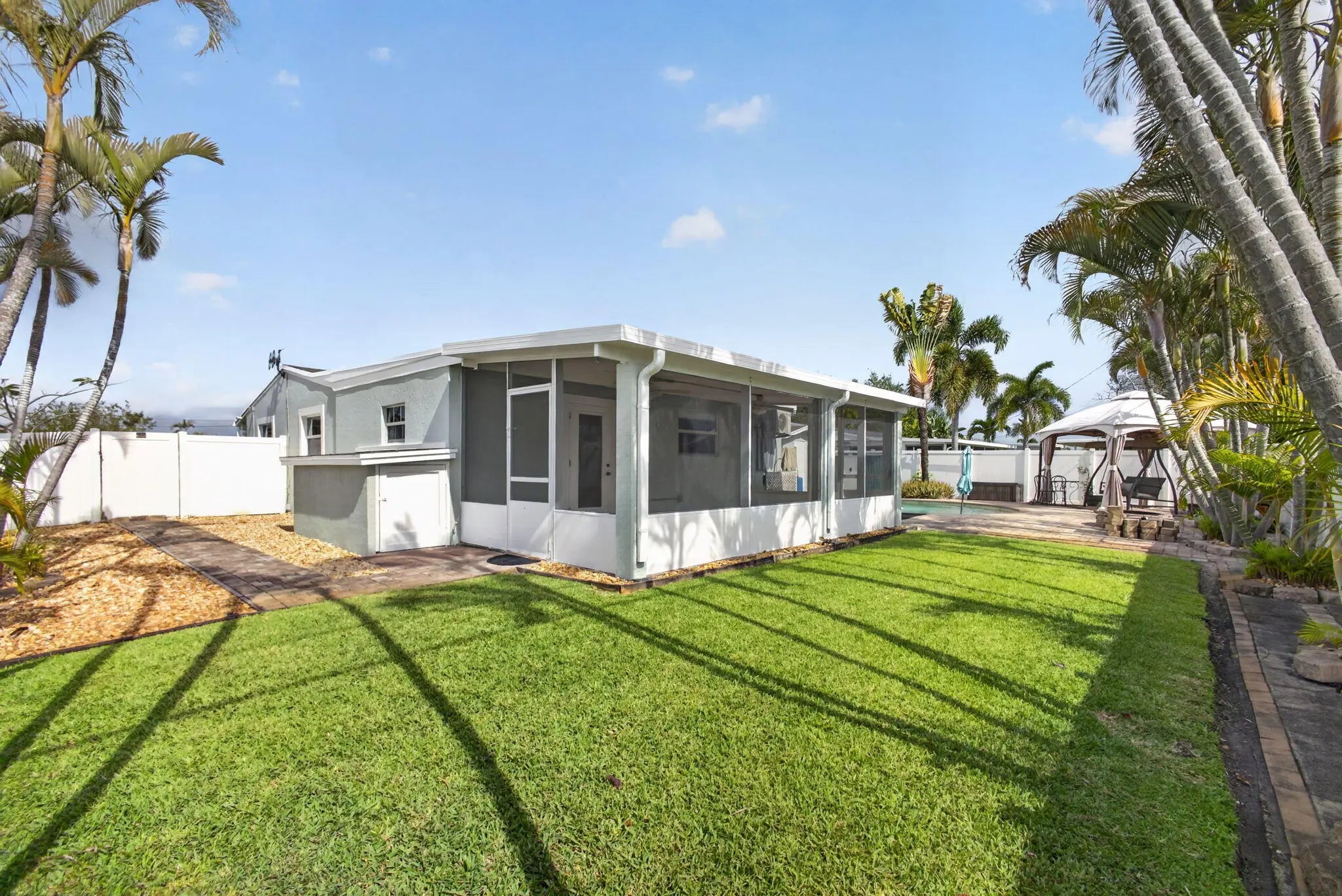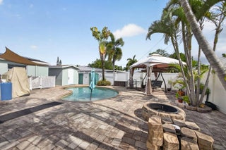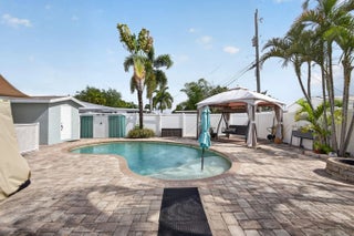 Beautifully maintained 4-bedroom, 2-bath home situated on a spacious corner lot in a highly desirable Palm Beach Gardens location. This property offers the perfect blend of comfort, efficiency, and outdoor living. Spacious and functional split floor plan featuring updated electrical and plumbing systems, newer hot water heater, impact windows and doors and generator for added peace of mind. Enjoy Florida living at its finest with a private saltwater pool complete with a sun deck, a large outdoor deck with a charming gazebo and swing, and a screened patio perfect for relaxing year-round. The fully fenced yard provides privacy and plenty of space for pets or play. Additional highlights include energy-saving solar panels, concrete shed with electric & space to park a boat. No HOA. Must see!