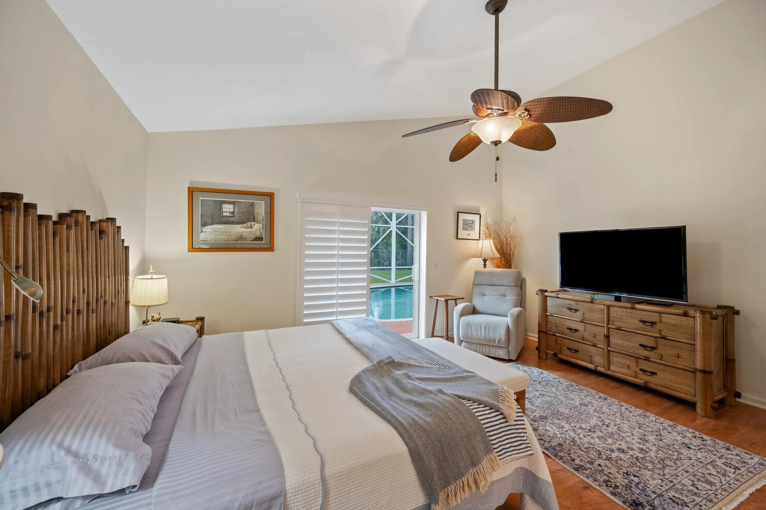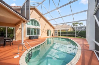 Welcome to the beautiful community Hidden Creek of Binks Forest located in the prime location of Wellington! Featuring an A rated school district and easy access to nearby dining, shopping, health care facilities, and entertainment, this lovely, well maintained gem awaits the new proud owners. Highlighting upgrades include a new roof in 2022, HVAC system in 2020, whole home Generac generator, and impact windows. This charming home has a split bedroom floor plan with the primary bedroom having pool/patio access, vaulted ceilings, ample light, and attached bath with separate tub, shower, dual vanity, with dual closets. The guest rooms are stacked and share a full bath with shower and closet space in each guest room. The home also features a dining area, formal sitting room, spacious kitchen with granite countertops , tile backsplash and stainless steel appliances. An additional living area off the kitchen shares access out to the covered patio that is fully screened, and the heated pool and spacious deck complete the relaxing outdoor atmosphere that overlooks the golf course beyond the mature tree line. This home also presents tile and laminate flooring, Whirlpool appliances, plantation shutters, 2 car garage, in home laundry, in-ground propane tank, and is being offered fully furnished!