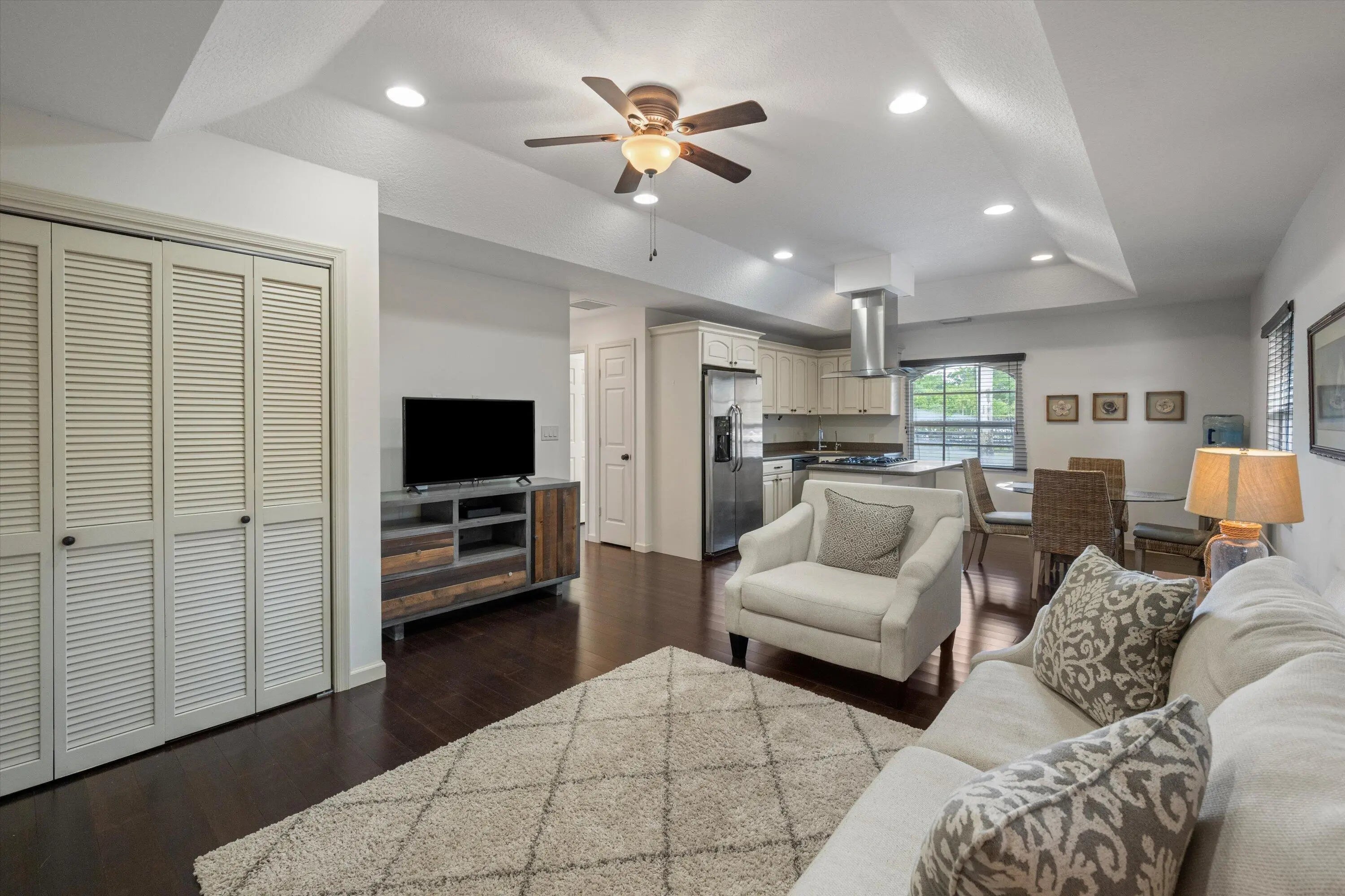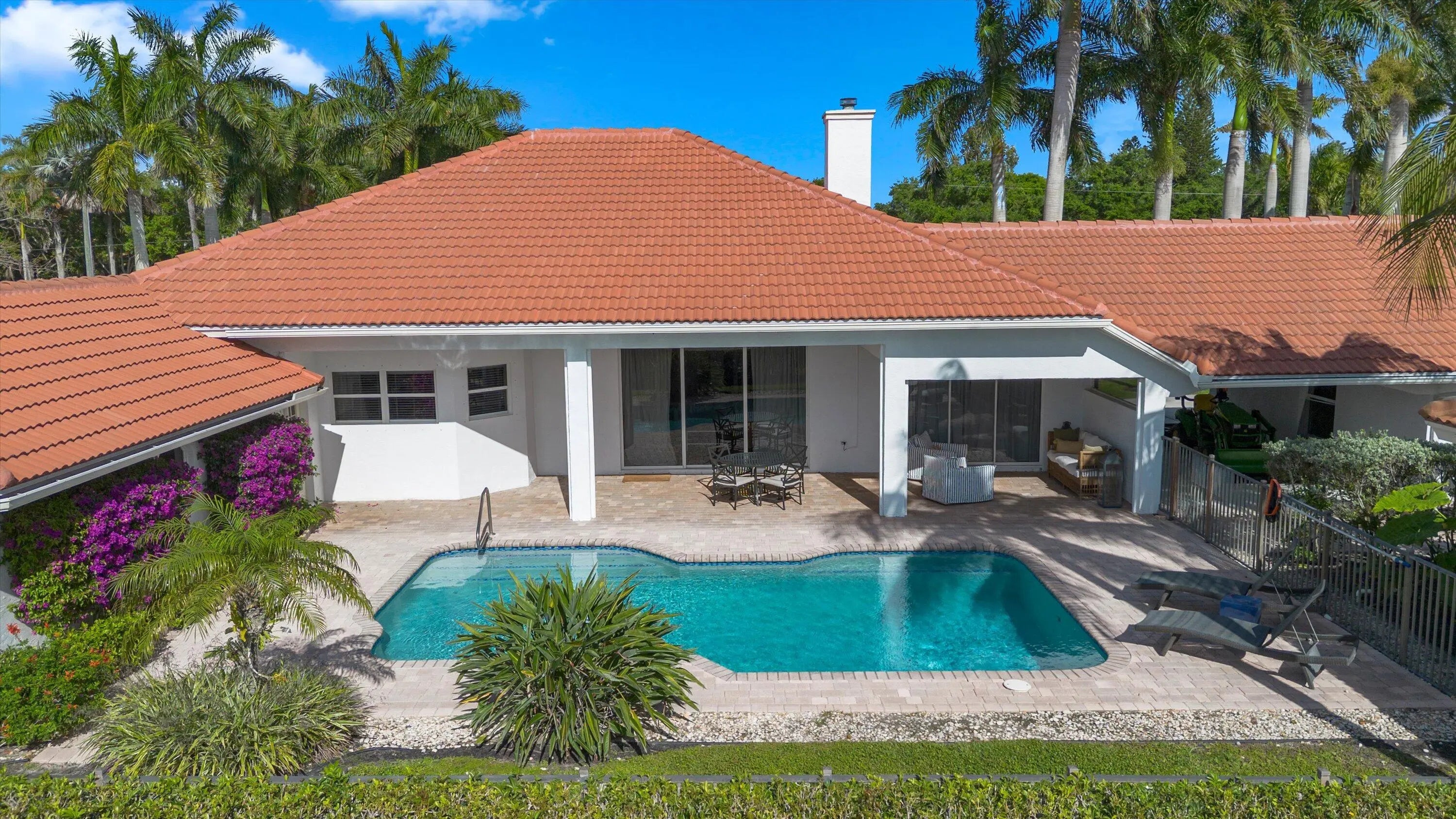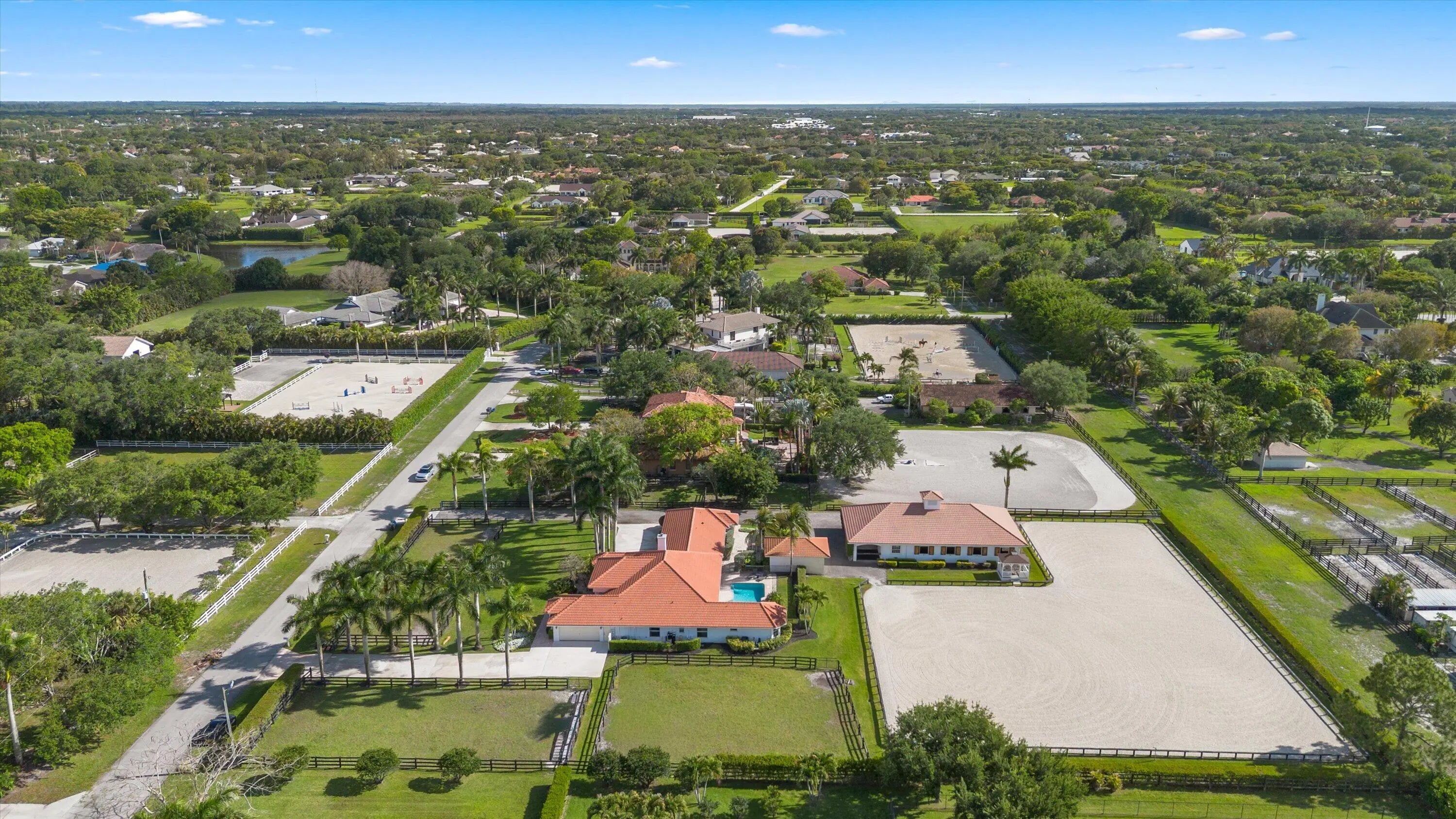 This centrally located equestrian property offers both convenience and functionality. The 8-stall center-aisle barn offers 12x12 stalls, tack and feed rooms, shutters, roll-down doors. Each stall equipped with fans, water and whole barn fly spray system. A new storage garage with covered manure area and separate home and barn entrances complete this ideal equestrian property. The 3,700 sq ft home features 4 bedrooms, 3 baths, and an open floor plan that flows to a spacious pool and patio overlooking the arena and grounds. The updated kitchen includes granite countertops, stainless steel appliances, and a separate laundry room with a 2-car garage. The 24,500 sf L shape arena measures 70x200 plus 85x123.