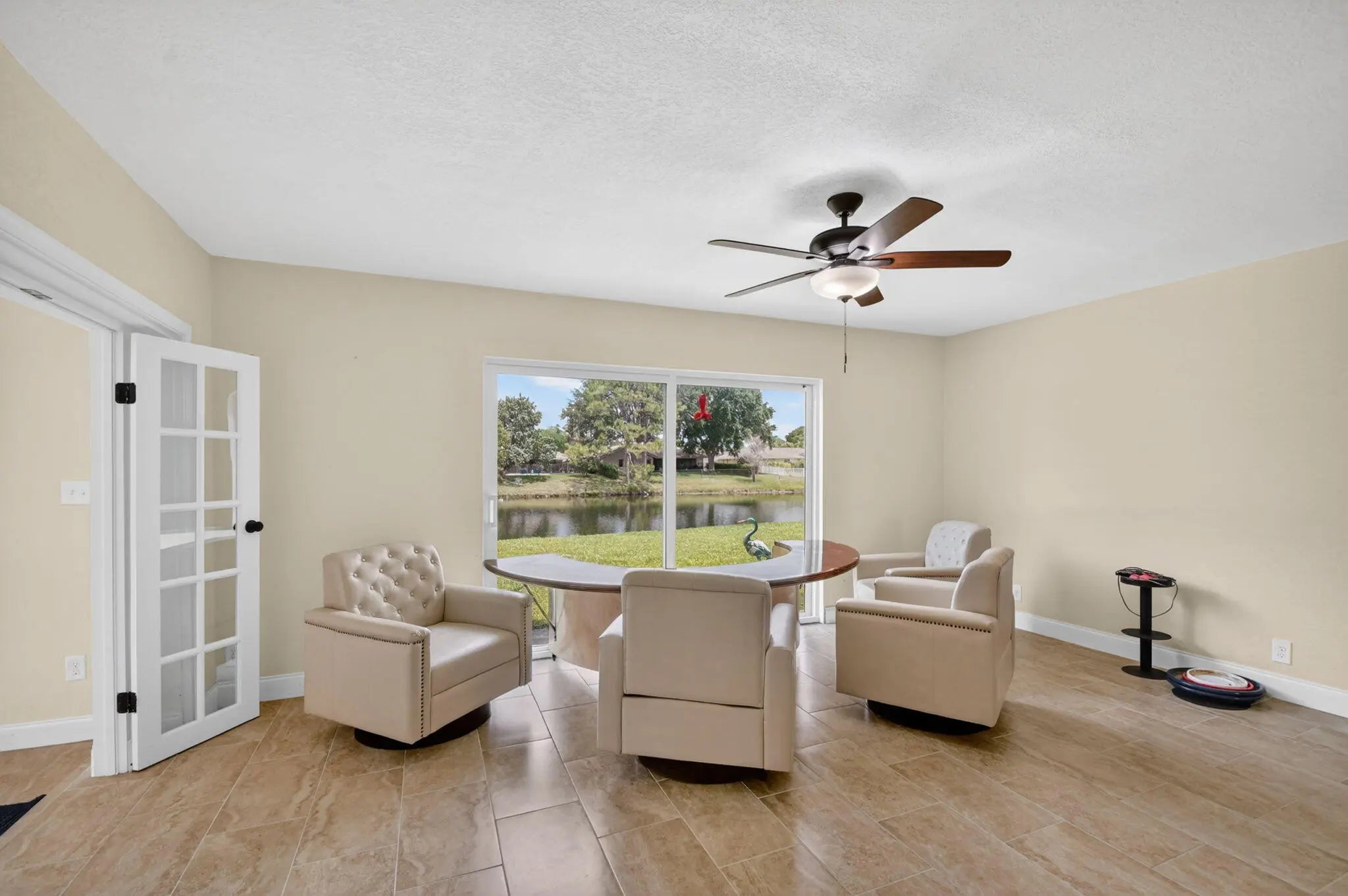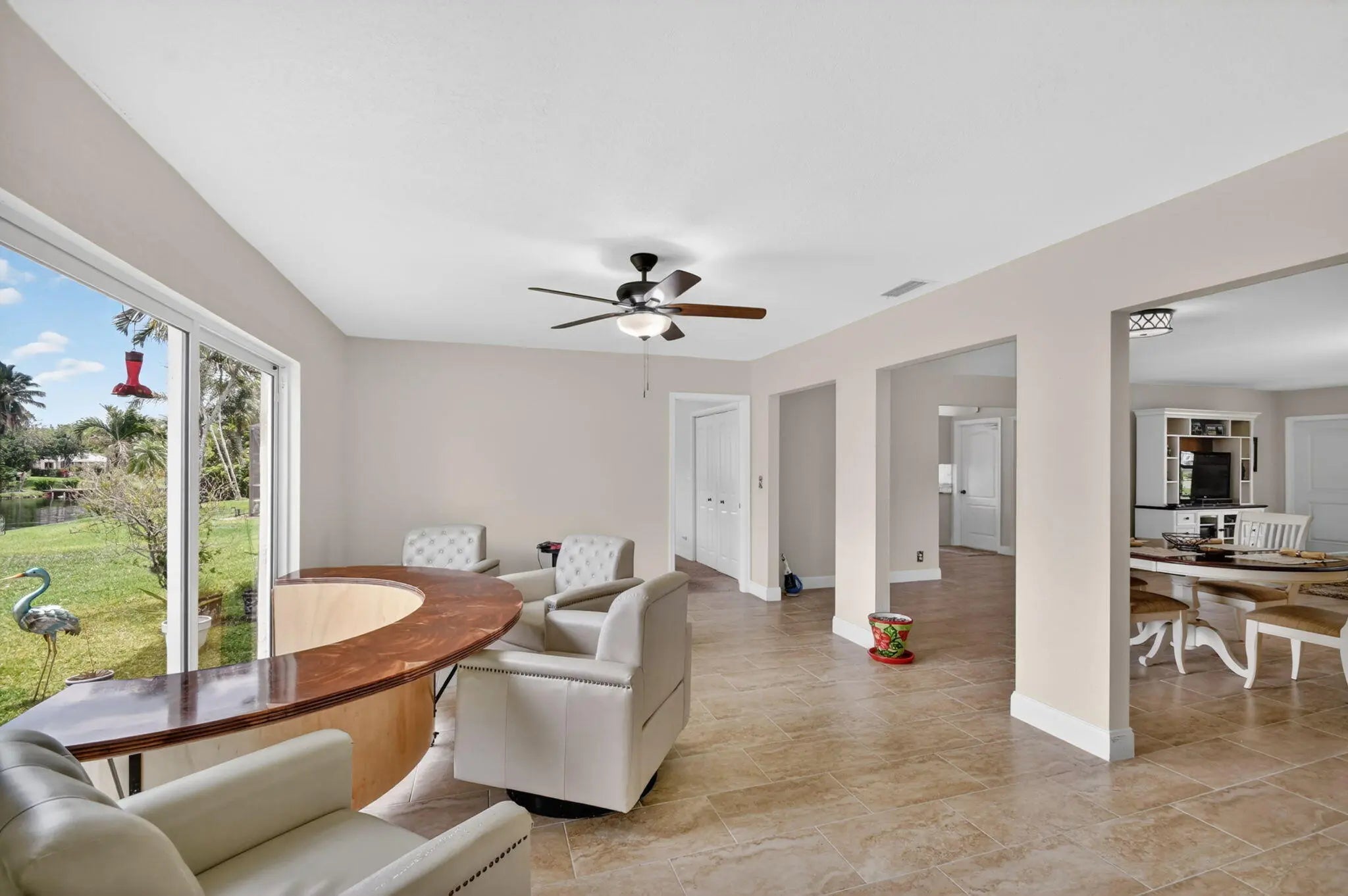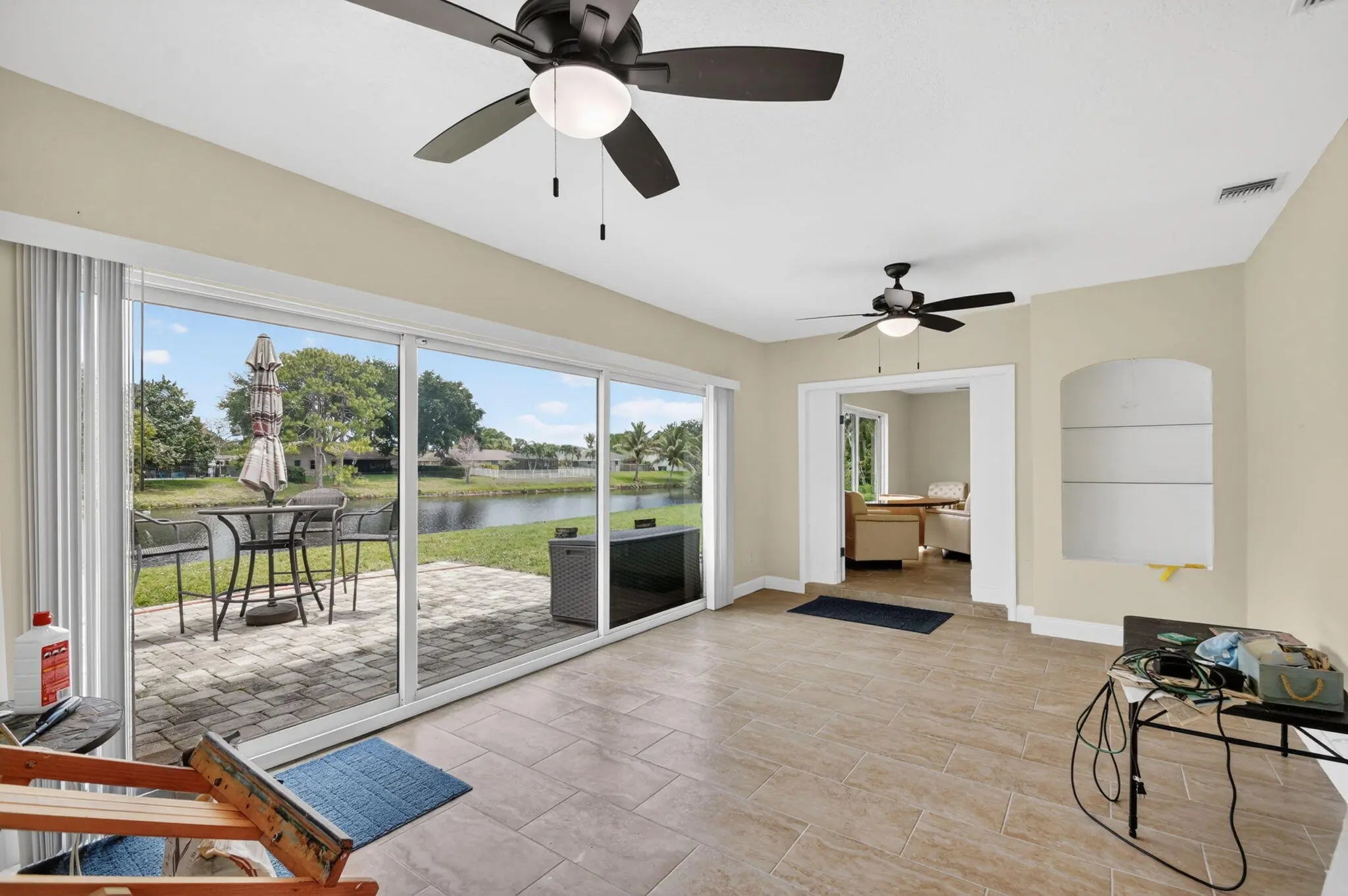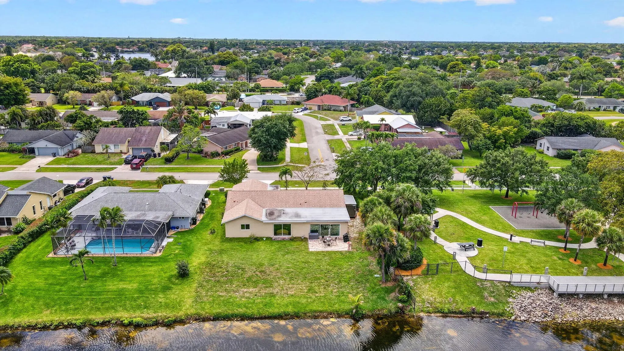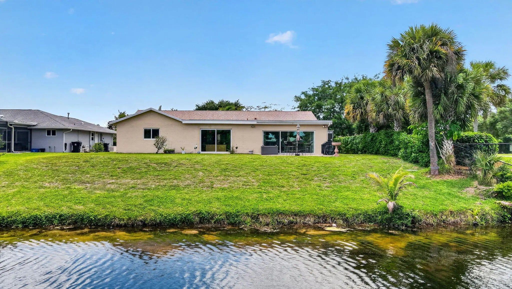 Welcome to this beautifully updated waterfront home in the heart of Wellington! This 4-bedroom, 2-bath residence offers the perfect blend of comfort, style, and location. Step inside to find a bright and open living space featuring tile flooring throughout the main areas and a thoughtfully renovated kitchen complete with granite countertops, stainless steel appliances, and warm wood cabinetry perfect for everyday living and entertaining. The bedrooms offer a cozy retreat with soft carpeting, while both bathrooms have been tastefully updated with modern vanities and custom tile showers. Enjoy peace of mind with recent updates including fresh interior and exterior paint, upgraded lighting, and ceiling fans throughout. Step outside and take in serene water views, creating the ideal backdrop