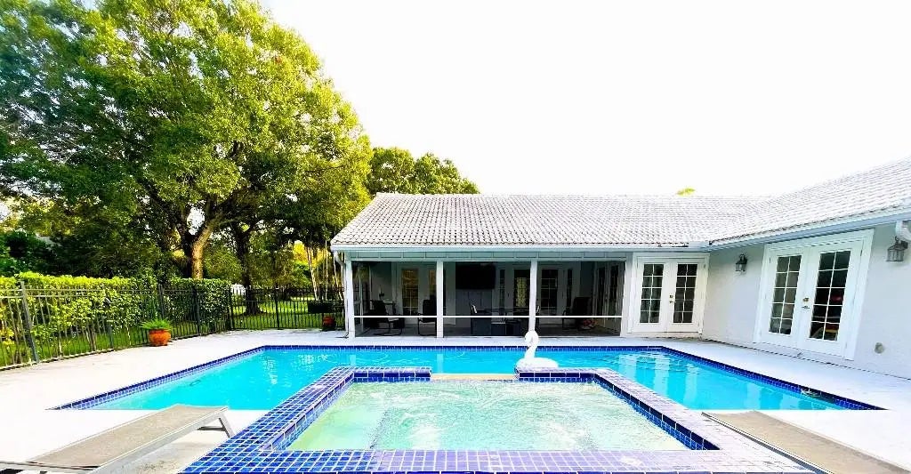 This beautiful family home, sits almost centered on its lush 1+ acre lot, creating a grand estate feel as soon as you pull into the long, circular driveway, impressive backyard with an inviting pool with large jacuzzi and more.