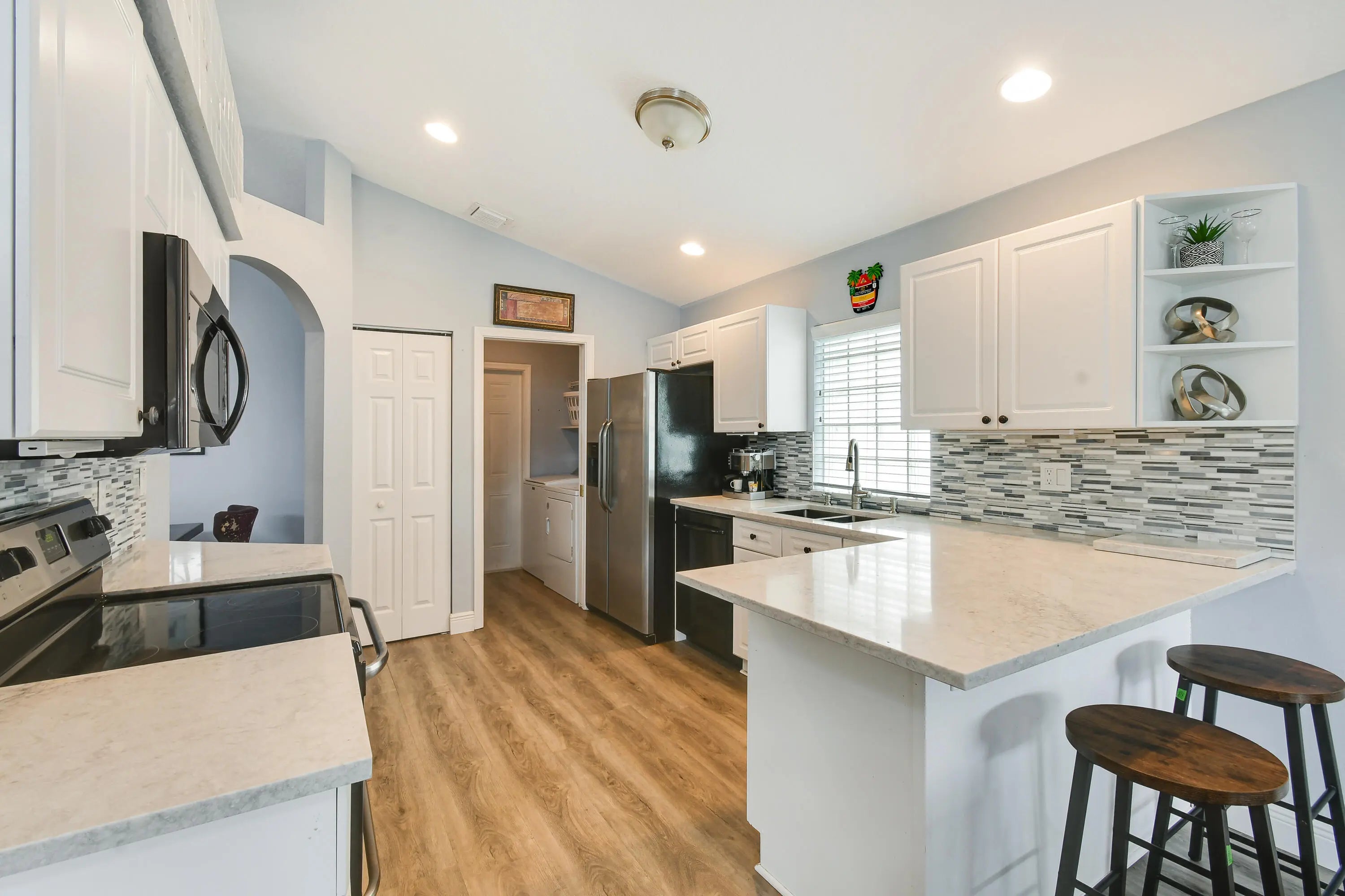 Discover the perfect blend of comfort and functionality in this 3 bedroom, 2 bath home, nestled in the desirable Wellington's Edge. Enjoy the tranquility of a peaceful enclave while being just moments from popular shopping, dining, and top rated schools. Step inside to find a spacious, open concept living area ideal for entertaining or relaxing in style. The updated kitchen features stainless steel appliances, quartz countertops, and lots of cabinetry, offering both beauty and practicality. The large master bedroom features 2 walk in closets and a spa like en-suite bathroom complete with dual vanities, soaking tub, and separate shower. The private yard features artificial turf and a roomy screened porch. Resident's enjoy an abundance of resort style amenities within the gated community.