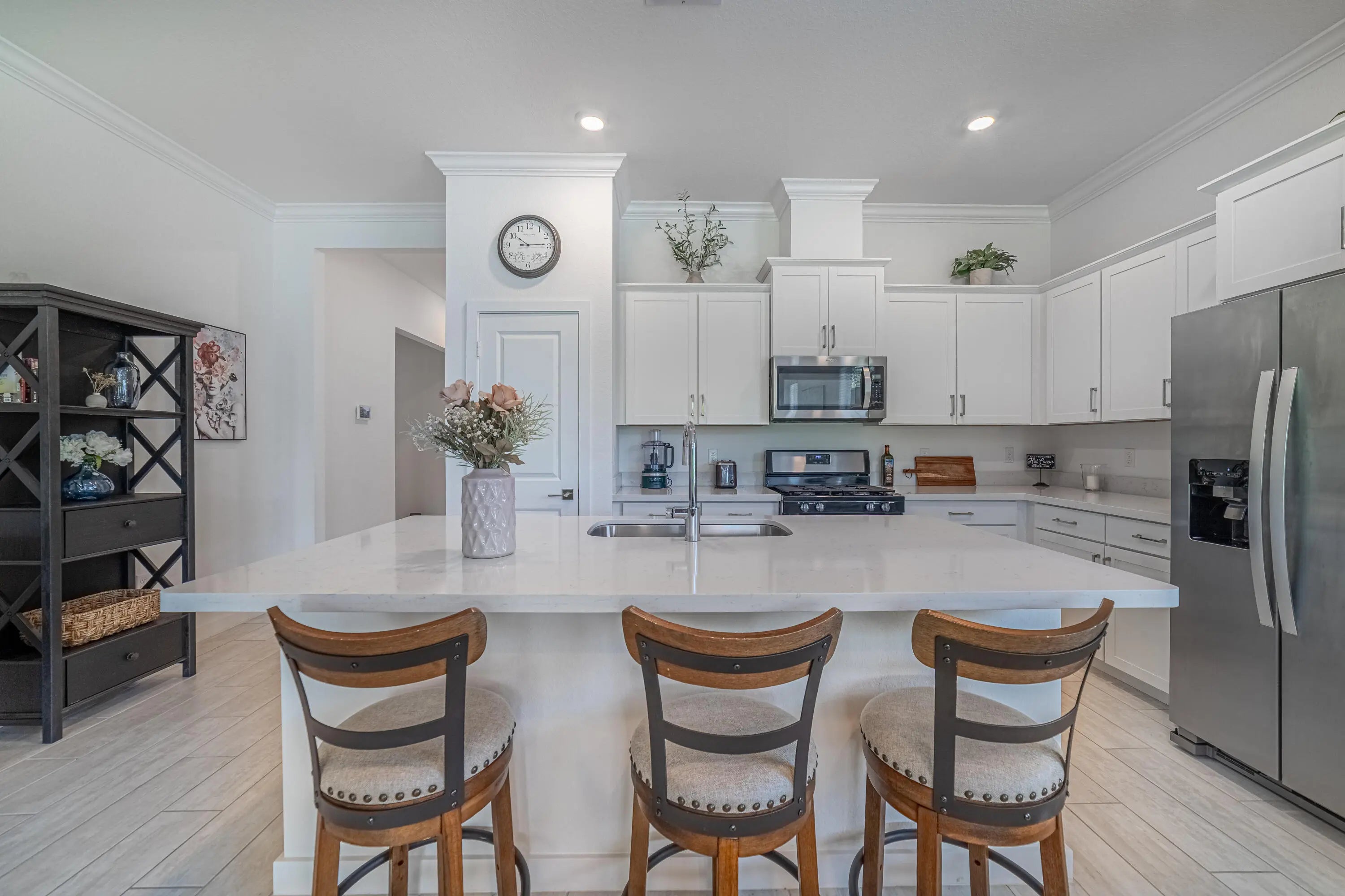 Welcome to a Peaceful Retreat in the Arden Community! This beautiful 3-bedroom with a den, 2-bathroom Villa and a 2-car garage offers hurricane impact windows & doors throughout, epoxy garage floors and tankless hot water heater. Kitchen features white cabinets, quartz countertop, stainless steel appliances. Crown molding in living area & the master bedroom. Enjoy relaxing or entertaining outdoors on the covered patio, with an expansive backyard ready for your personal touch. Arden offers resort-style amenities, including two pools, hot tub, fitness center, tennis, basketball and pickle ball courts and so much more.