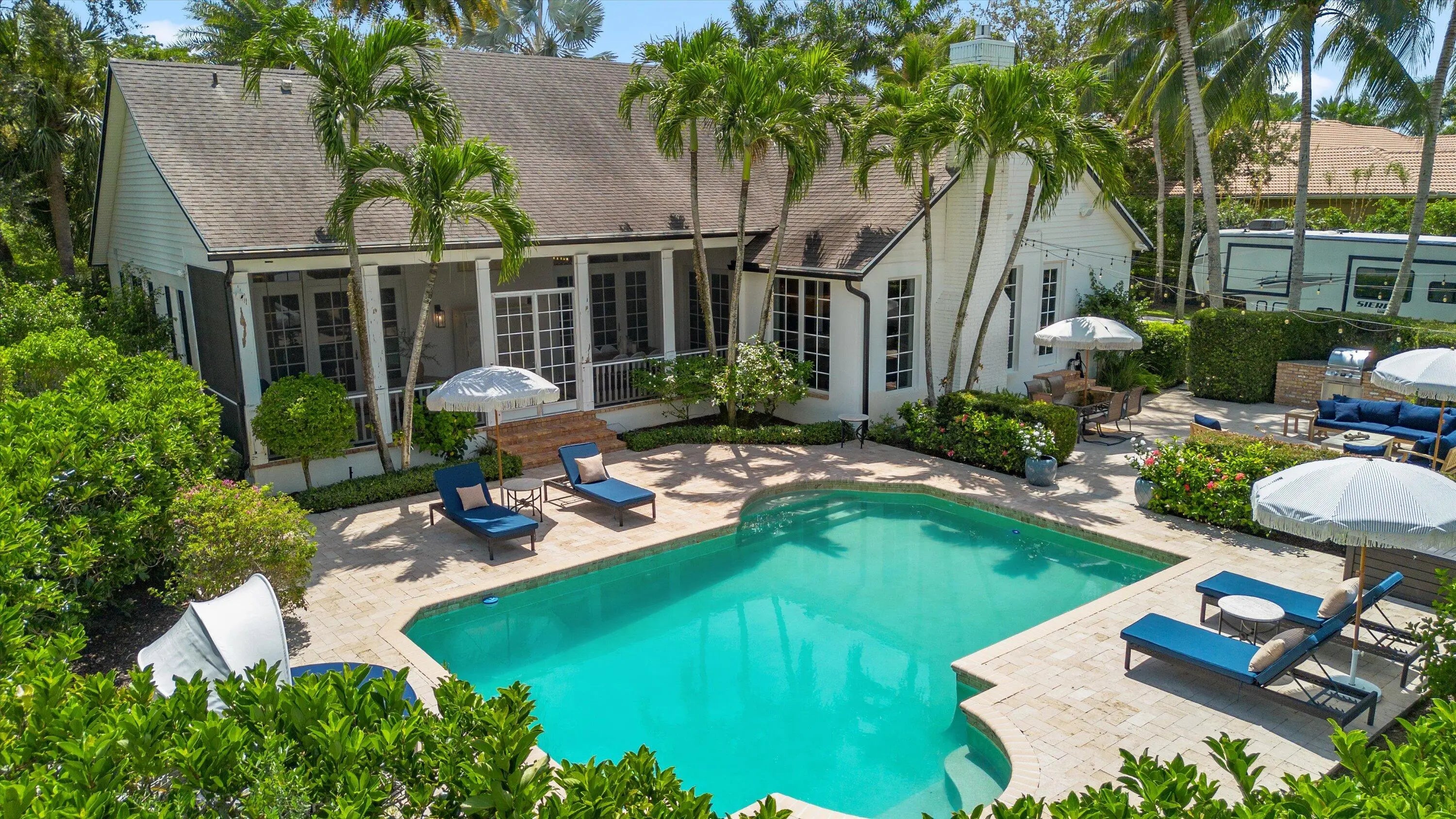 Discover this one-of-a-kind residence, perfectly positioned on nearly 2 private, fully fenced acres in the highly sought-after Paddock Park neighborhood—just minutes from all equestrian venues. Designed for both comfort and entertaining, this home offers many tasteful updates. Featuring a 3-way split floor plan with 4 bedrooms, 3 bathrooms, a private office, and a versatile loft space, this home offers abundant room. Unwind on the screened-in patio while enjoying breathtaking sunsets over the sparkling heated pool and expansive backyard. Just steps away, an outdoor BBQ area provides the perfect setting for gatherings with friends. Combining privacy, space, and an unbeatable location, this exceptional home is the perfect place to call home for season!