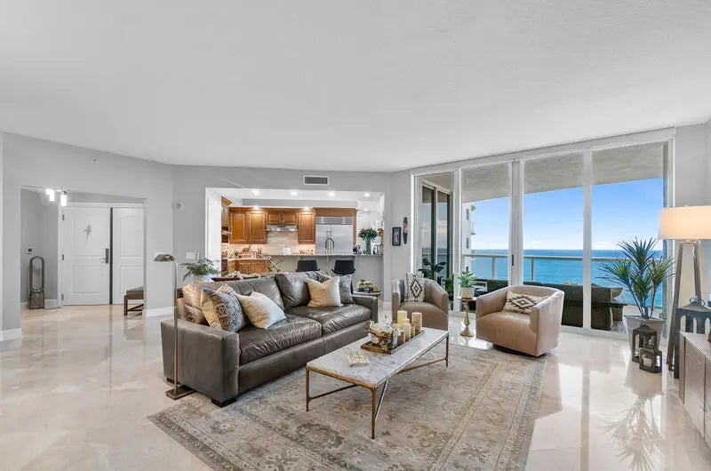 Exclusivity and privacy await you in this rarely offered 3 bedroom, 3 bath meticulously maintained residence with expansive unobstructed ocean and intercoastal views located in Beach Front, a boutique-like building with only 51 residences. The elevator takes you to your own private foyer which leads directly into the sunlit living area with spectacular endless views of the Atlantic Ocean. Features include a newly renovated chef's kitchen featuring a Sub- Zero refrigerator, Miele induction cooktop, GE Monogram oven and microwave and so much more. A polished travertine floor throughout reflects the sunlight from expansive UV tinted sliding doors abound in each room. Every slider is also fitted with Bandalux electric blinds for beauty and comfort. See Supplement... The impressive oversized primary bedroom offers ocean views and two walk-in custom closets. The additional sunlit bedrooms are spacious and offer stunning intercoastal and city views. Updated bathrooms and custom- built closets invoke exceptional quality of materials for the discriminating buyer. An in-suite laundry room with new GE washer and dryer also houses the 2 A/C's with new compressors with germicidal UV light systems. Beach Front is ideally located on Singer Island and offers a 24 hour manned gate and concierge from 7 AM to 10 PM. The property offers beach access, a theater room, 2 BBQ areas, social meeting room, billiards, fitness center and sauna, sun deck, oceanfront pool and spa and underground parking. Conveniently located in Northern Palm Beach County, Singer Island offers an abundance of amenities which includes shopping at the Gardens Mall and Worth Avenue, golfing at PGA National, world class fishing, snorkeling, scuba diving and jet skiing. Don't forget your bathing suit!