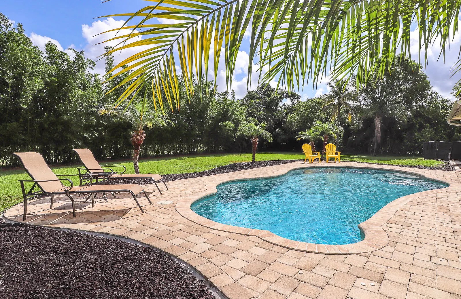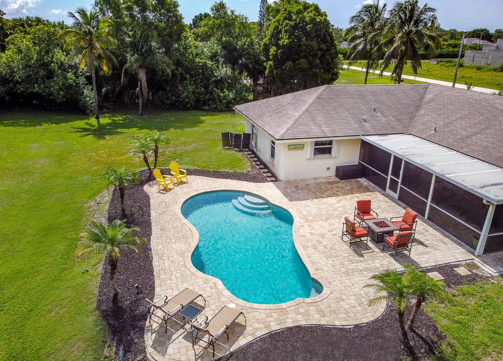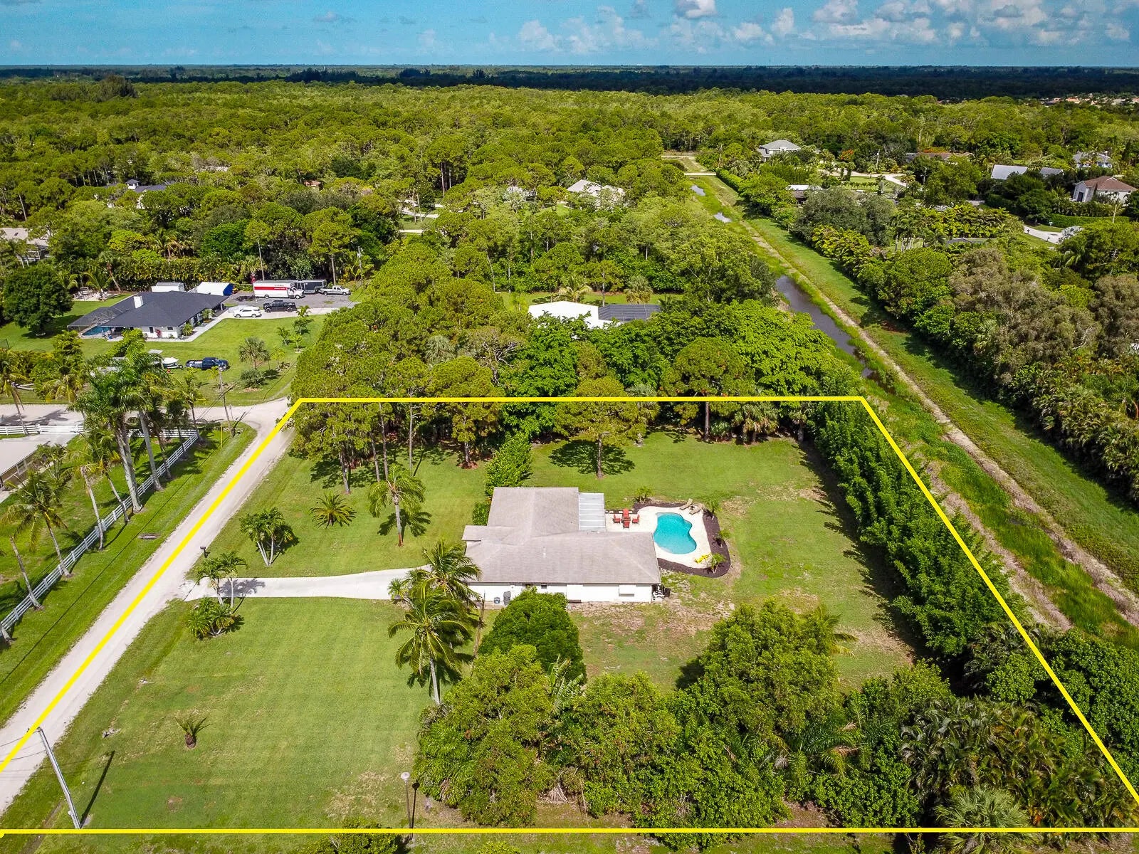 LOWEST PRICED CBS Pool home in PBCE. Price increase April 1st. Immaculate CBS 3 BR, 2 BA, small den, 2-car garage, $100k+ 2021 salt system pool/ huge paver deck on very private 1.32-AC lot in Palm Beach Country Estates. NEW roof, HWH & HVAC in 2018 New interior & exterior paint & carpet. $85,000 refurbishing since OCT 2025. 300 feet from paved road (76th). Formal dining room and separate breakfast area off the kitchen. Split floorplan and vaulted ceilings. NEW decorative wood fencing. Lush treed level lot backs to a canal for extra privacy. Concrete pad perfect for storing an RV or boat. No HOA, city water, and close to Alton Town Center and Abacoa. All A-rated schools. IMMEDIATE OCCUPANCY. Replacement cost new would be over $1,670,000.