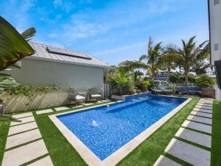 AVAILABLE FOR SEASON 2025! Just moments from the sparkling shoreline, this stunning 4-bedroom, 2-bath residence blends refined coastal style with contemporary design. Sun-filled spaces feature an open floor plan where large windows showcase serene pool views. A gourmet kitchen with premium appliances flows effortlessly into the inviting living area. The primary suite is a peaceful retreat, offering a spa-inspired bath and a private covered balcony. Three additional bedrooms provide flexibility for guests or family. Outdoors, a glistening pool is framed by vibrant landscaping and a spacious patio perfect for lounging, beachside strolls, or hosting elegant gatherings. This home embodies coastal living at its finest.