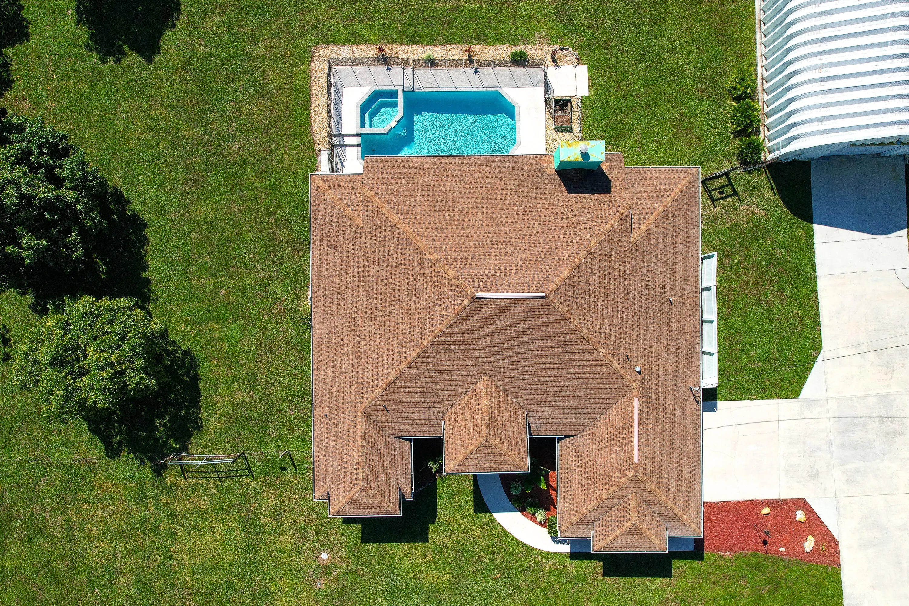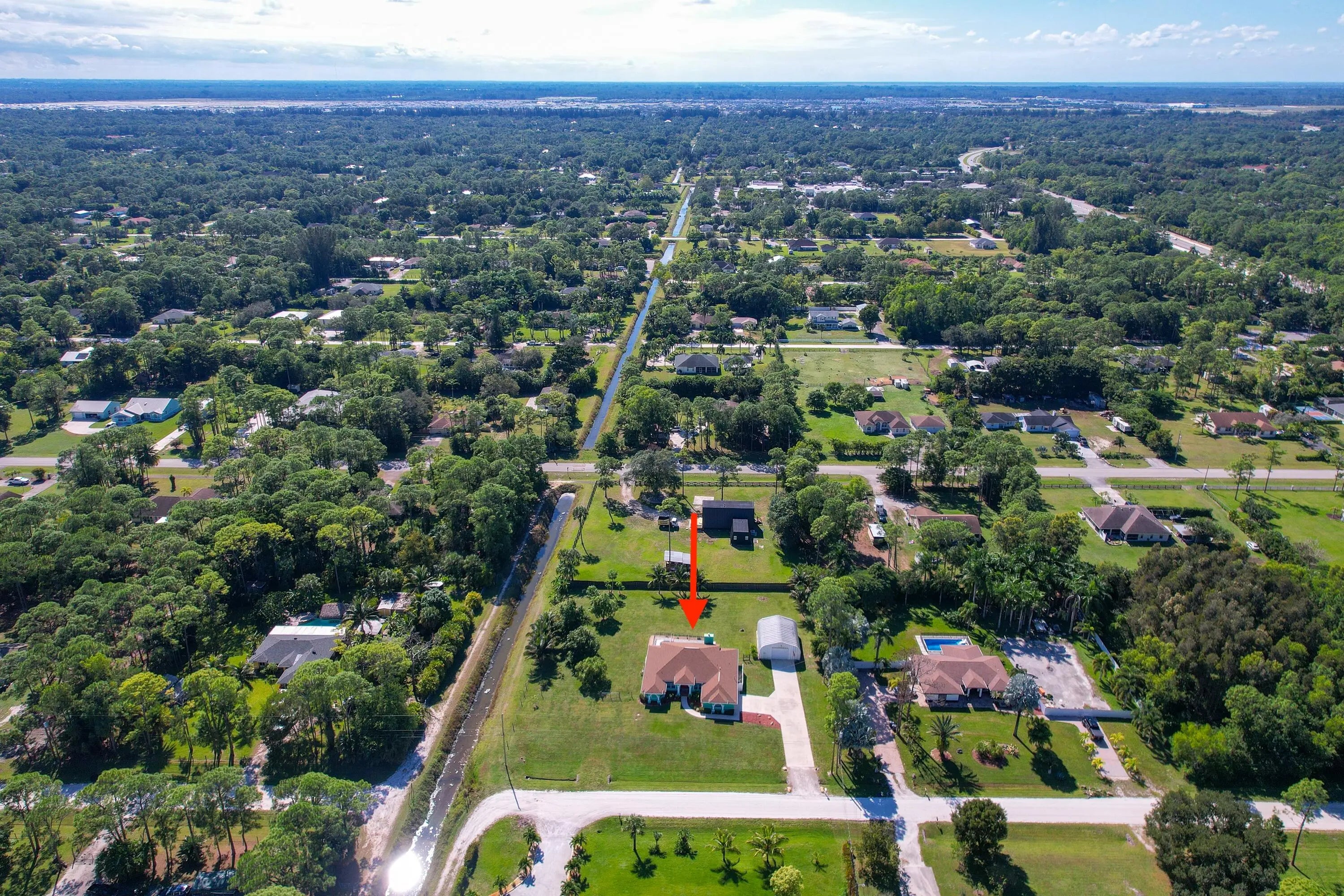 This spacious 3-bedroom + Den, 2-bath single-family home on 1.31 acre at the end of the road in the Acreage offers room to grow and relax. The versatile den/flex room complements the split floorplan, while two living areas, including one overlooking the pool, provide plenty of space for gatherings. The updated kitchen features a bay window, island, and extra seating, and the home's bright, open, and airy layout enhances its inviting feel. The primary bath has been modernized, and a cozy fireplace adds charm. Recent updates include an exterior repaint, a new garage door for the detached garage, and a new pool pump. Enjoy your own in-ground pool, fruit trees, a large metal storage/workshop garage, hurricane panels, and a 2-car garage—all situated on a large lot with no HOA!