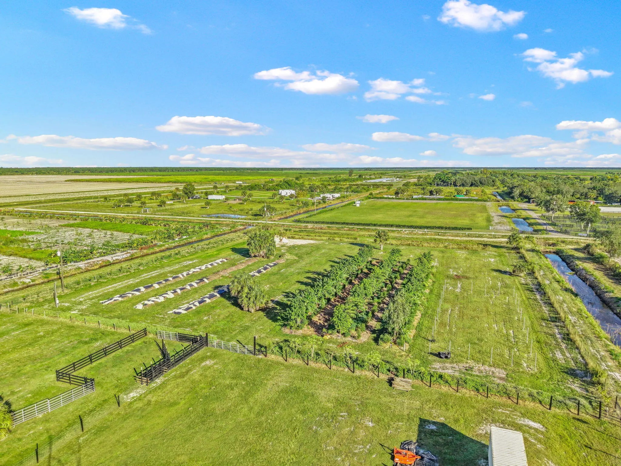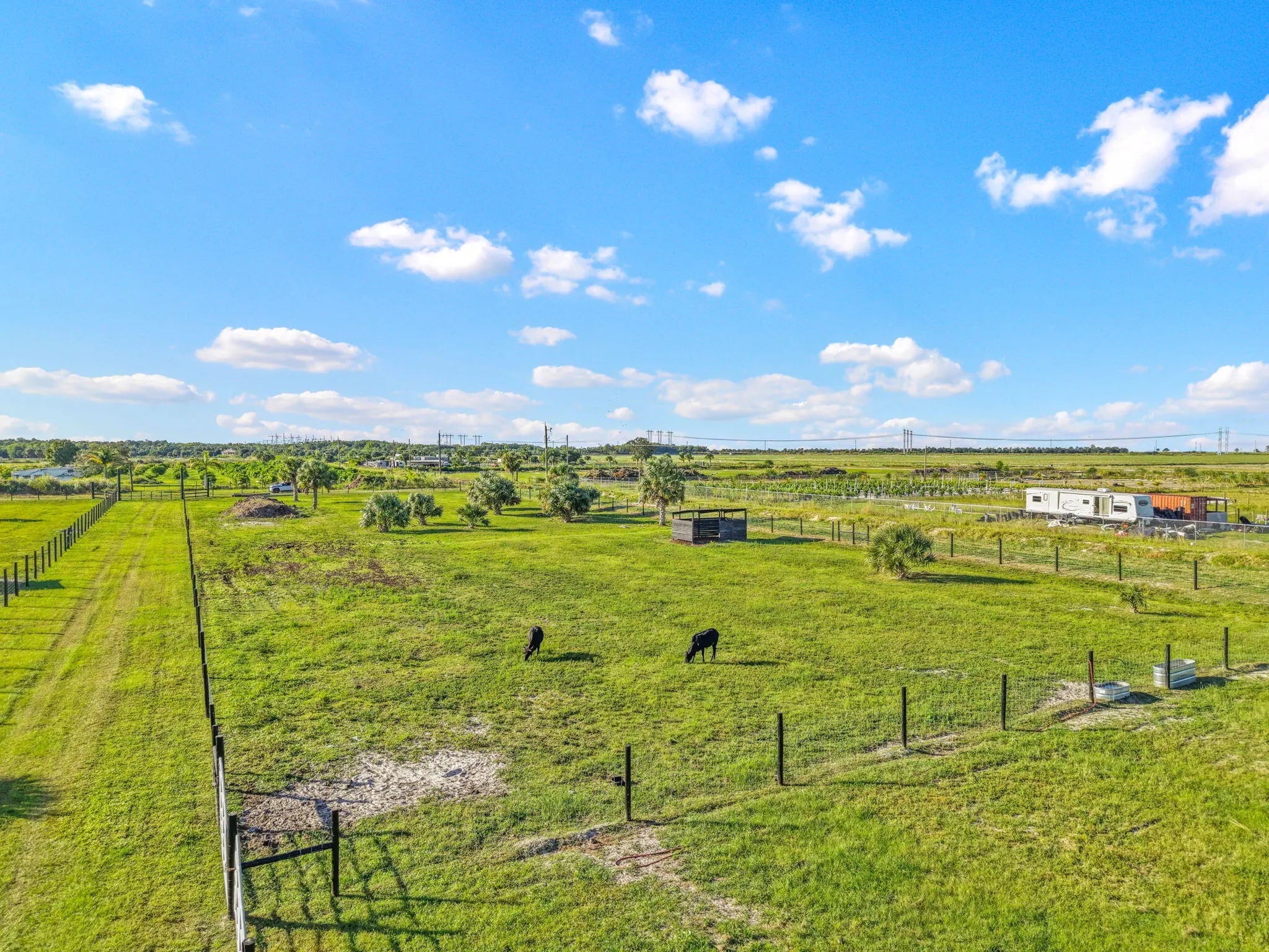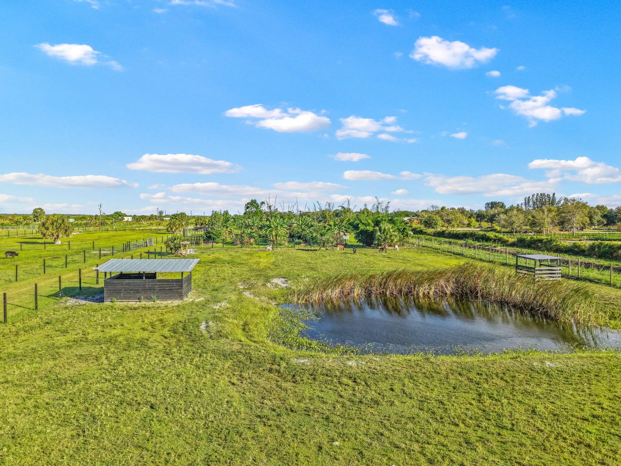 Exceptional opportunity to own nearly 9 acres of fully improved agricultural land in Loxahatchee - ready for farming, livestock, or to make your private estate.Featuring approx. $200,000 in upgrades! Property includes a 2021 Kubota tractor w/implements, 2021 shipping container, 3 ponds (1 stocked w/tilapia), 3 fenced paddocks w/2 shelters & 7 purebred miniature Zebu cows. 5 HP well pump, electrical connection & irrigation for 2 acres planted w/ tropical fruit trees—10 varieties of mangoes, 6 avocados, pineapples, jackfruit, bananas, papaya, finger limes, carambola, Barbados cherry, mulberry, edible bamboo, longan, allspice, bay leaf, turmeric, galangal, cassava, pumpkins, guava & more. 3 raised garden beds. Incredible opportunity for hobby farming or income-producing agriculture in Lox!