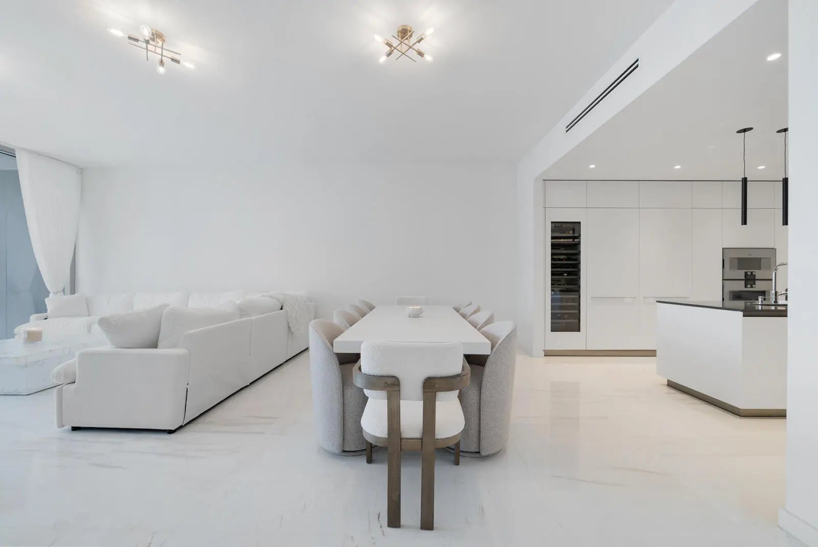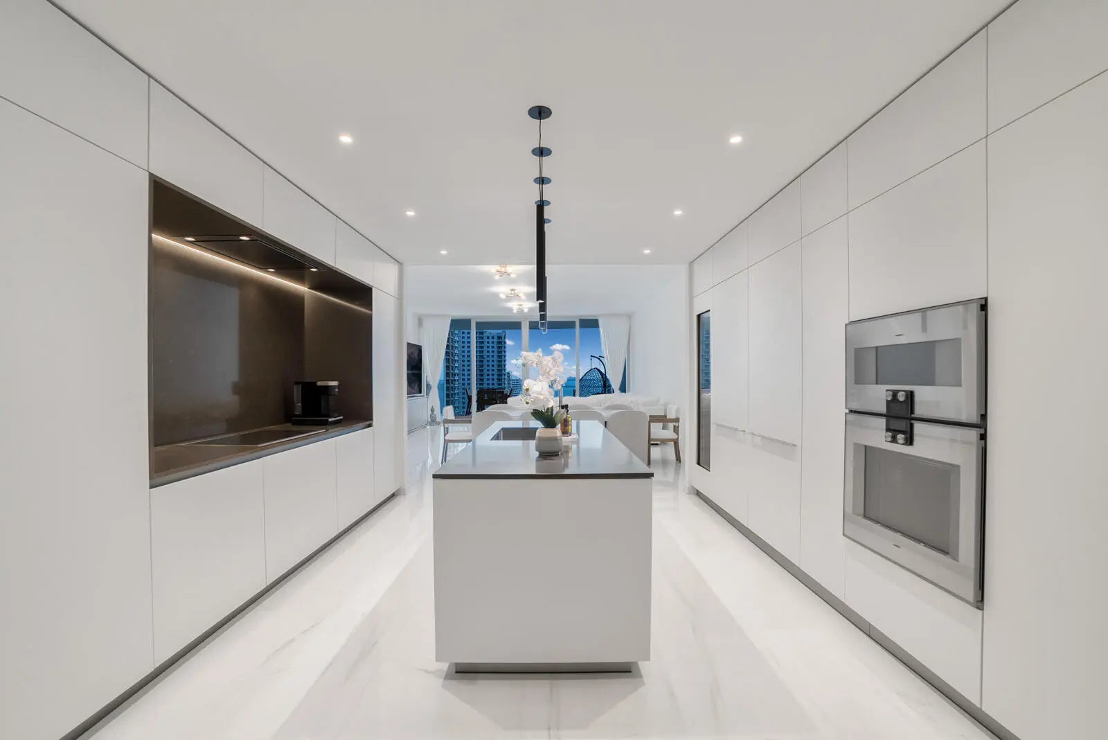 Step into refined living at the prestigious Aston Martin Residences, where elegance meets cutting-edge design. This expansive 3,536 sqft high-rise residence features 4 spacious bedrooms and 5.5 luxurious bathrooms, offering a flawless blend of comfort and sophistication. Enjoy stunning southern and northern exposures, bathing the home in natural light throughout the day. The interior boasts polished marble flooring, a chef-inspired kitchen complete with a wine cooler, and tasteful partial furnishings that complement the home's sleek aesthetic. A private patio extends your living space outdoors — perfect for unwinding or entertaining with skyline views. Enjoy unparalleled amenities on the Sky Amenities level, offering over 42,500 sq. ft. of luxury including an infinity pool, spa, a two-story fitness center, movie theater, private boat for residents' use, state-of-the-art fitness center, golf simulator, art gallery, butler services & more. This residence delivers an exceptional blend of privacy, exclusivity, and sophisticated luxury tailored for the most discerning buyer.