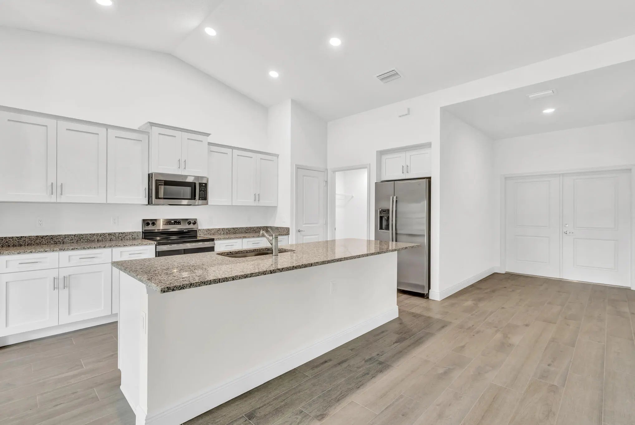 Cathedral Ceiling(s), Entrance Foyer, High Ceilings, Pantry, Vaulted Ceiling(s), Walk-In Closet(s), Bedroom Layout - Split, Pull Down Stairs