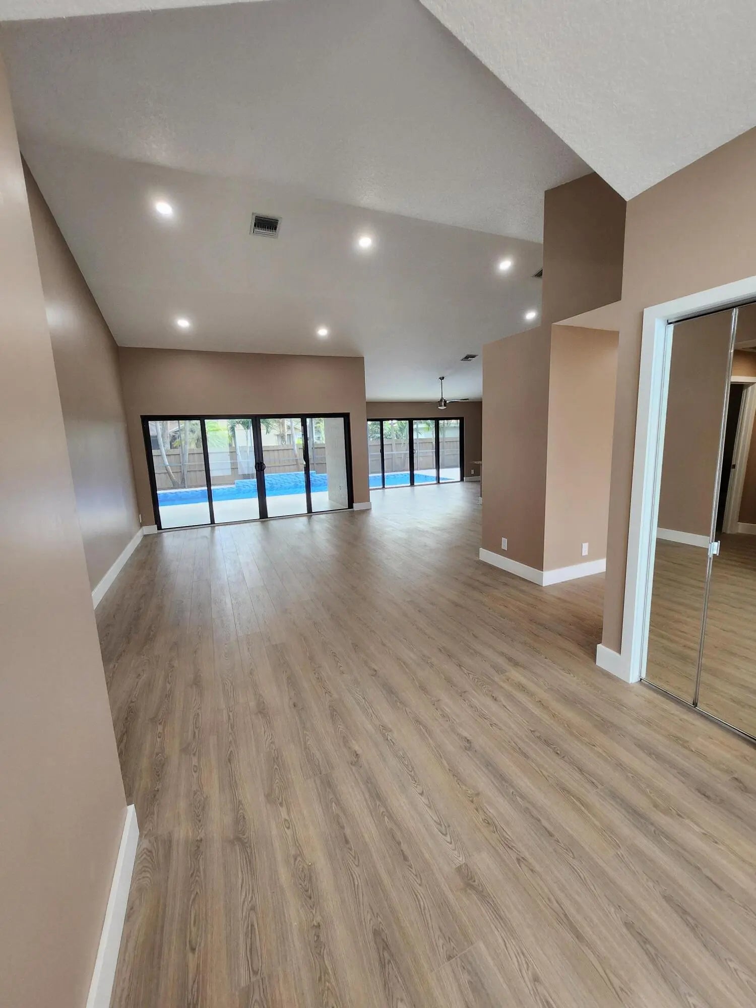 NO HOA 150k in New Renovations! New Hurricane impact Window, Doors & Oversize 2 car Garage,13ft Vaulted Ceilings, New flooring & Molding throughout, & All New Led Lighting. , Newly Renovated Pool w diamond bright & Glass Tiles. Completely screened in Patio. Clean looking Synthetic turf throughout side yards. 200 x12 feet of space for you Dog to run around and keep pet out of the mud! with full visibility. New PVC fence Gates and Walking distance to Top public schools, local shopping and dining. Prime location in Florida's equestrian capital, the residence is minutes from world-class events at Wellington International. Versatile Open floor plan New Bathrooms & tiles includes full kitchen, living room, dining room,3 bedrooms, two full baths, and one half bath