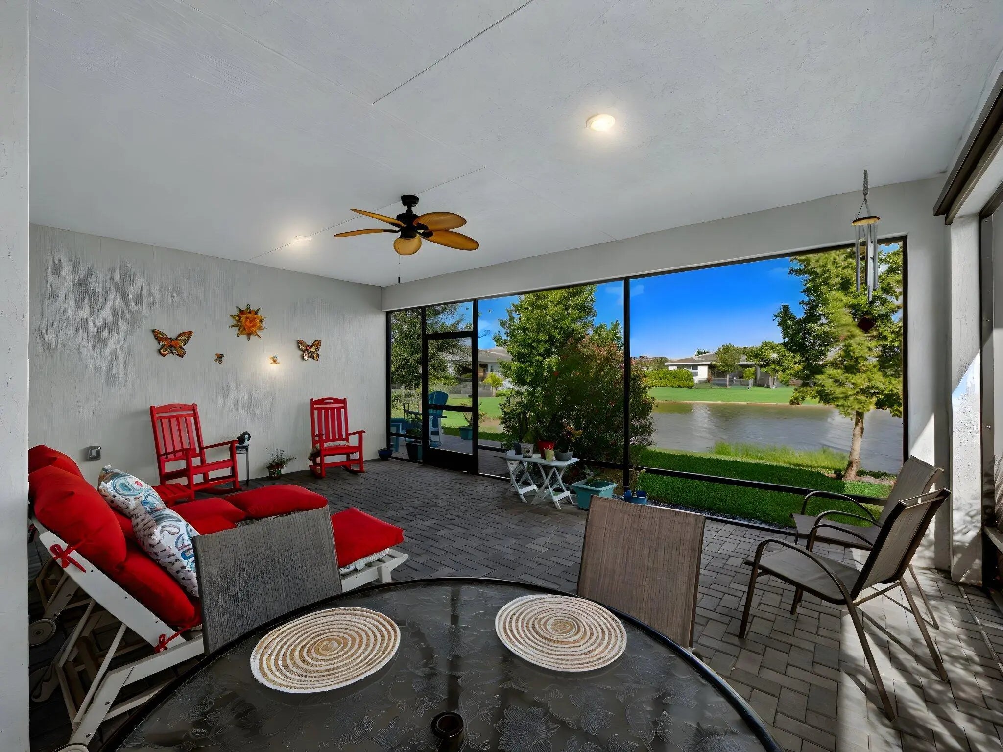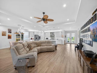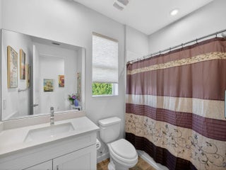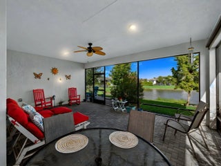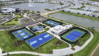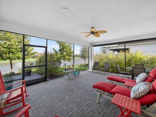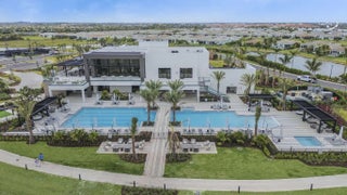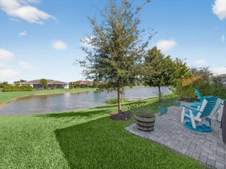 Situated on a premium lakefront lot with lush greenspace on one side, this impeccably upgraded residence located in Telaro at Tradition offers refined indoor-outdoor living and elevated design throughout. Thoughtfully curated enhancements blend luxury, comfort, and functionality in every space. The home features ceramic tile plank flooring throughout, creating a seamless, modern aesthetic. A gourmet kitchen anchors the living space, accented by designer pendant lighting and ideal for both entertaining and everyday living. The flex room has been transformed with a custom Closets by Design built-in office, providing a sophisticated and highly functional workspace. Expansive sliders open to a screened, extended lanai and adjacent outdoor patio, offering the perfect setting to relax while enjoying tranquil lake views. Privacy hedges and lanai sunshades enhance comfort and seclusion, creating a true outdoor retreat. Premium window treatments include Hunter Douglas Luminette privacy sheers on lanai sliders and dining room windows, complemented by custom cellular blinds throughout the remainder of the home. Ceiling fans in every room and the lanai, an insulated garage door, and a Whirlpool refrigerator/freezer add comfort and efficiency. Additional upgrades include TV mounts in the great room and two bedrooms, completing this move-in-ready home designed for effortless Florida living. This exceptional property combines a coveted lot, high-end finishes, and thoughtful upgrades an ideal opportunity for buyers seeking luxury, privacy, and style. HOA covers cable, internet, lawn care, security, and community events. Ideally located near Cleveland Clinic, top medical facilities, the upcoming Heart of Tradition shopping center, and the future Stars & Stripes Sports Park.