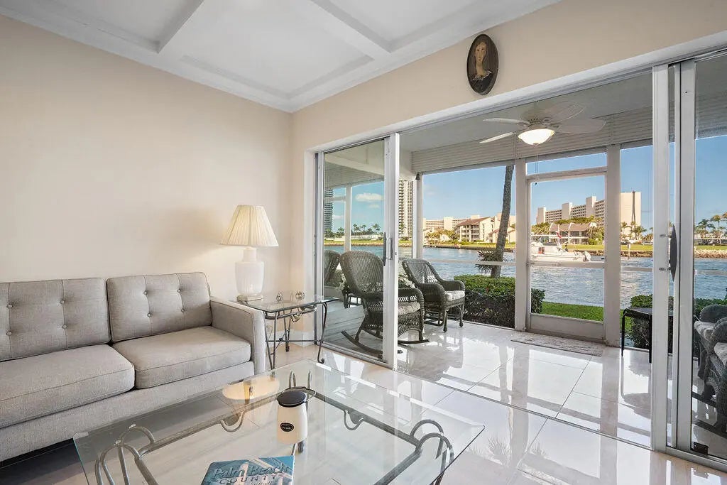 Enjoy Million Dollar intracoastal views and waterfront living at its finest in this stunning fully renovated condo. This 2 BR, 2 BA condo w/ covered parking has been completely redesigned w/ a versatile sliding wall/door allow you convert the large open living area to a private second bedroom with Murphy bed and en-suite bathroom while the master suite offers dual vanities and a fog-free lighted mirror. Fabulous attention to detail with a custom designed kitchen w/Viking appliances, polished 24'' x 48'' tile flooring and custom tray ceilings throughout with recess lighting. Watch the yachts parade by as you relax on your private patio, or drop a line and fish right out your back door. Buildings painted 2025. Ports O Call is an active 55+ community includes pool, gym and clubhouse. Boat slips available for rent, up to 24 ft, for $1,000 per year, current waitlist. Conveniently located to shopping, dining, golfing including North Palm Beach Country Club, Safe Harbor Marina, beaches & airports.