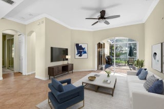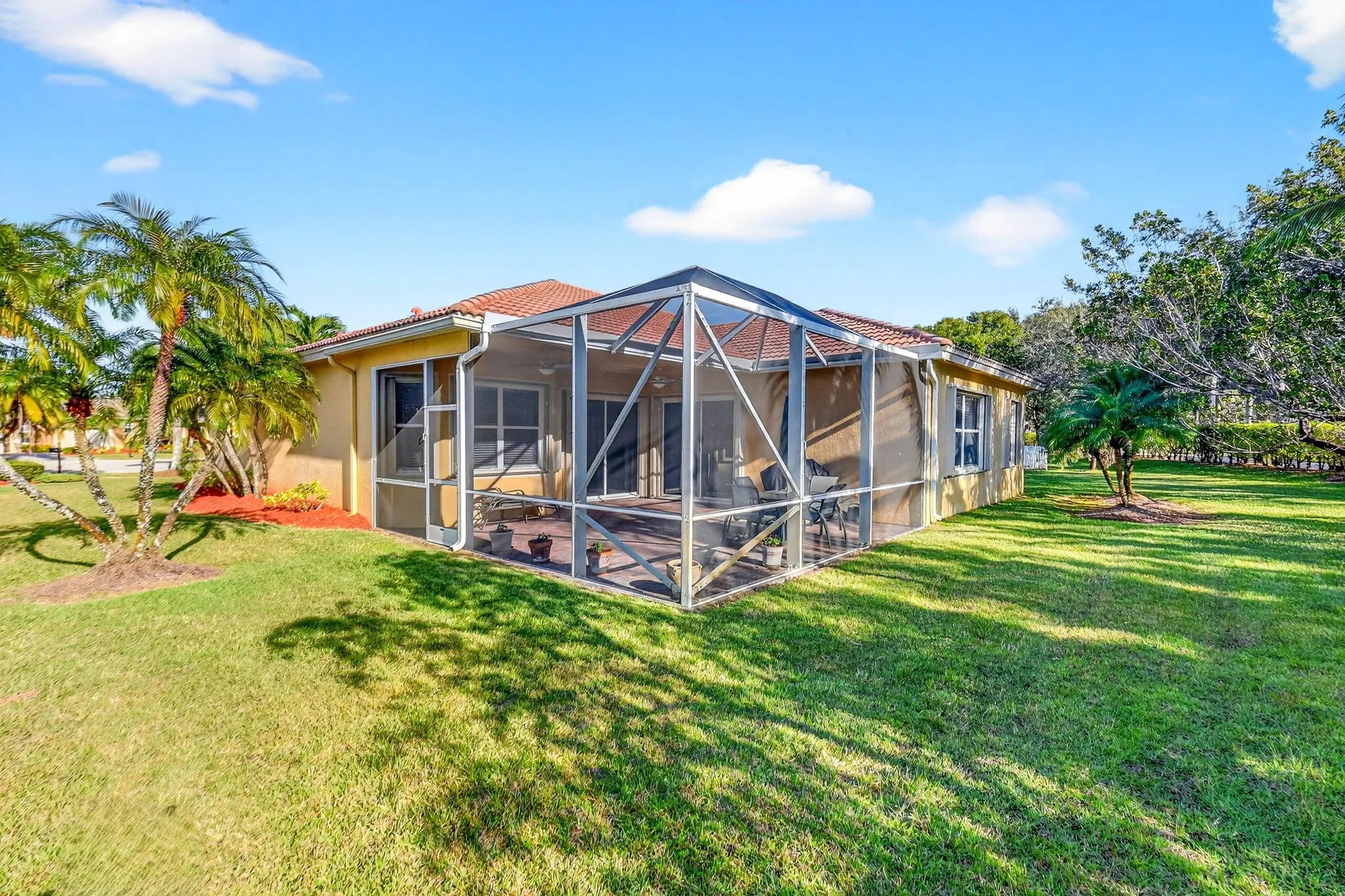 Set on a serene cul-de-sac within the prestigious Estates section of Baywinds, this refined Engle Homes Bermuda model offers an exceptional blend of elegance, comfort, and resort-style living. Thoughtfully designed with three bedrooms and two-and-a-half baths, the home showcases a desirable Jack-and-Jill suite for guests and an expansive layout ideal for both entertaining and everyday luxury. Formal living and dining rooms transition seamlessly into a spacious family room and sunlit eat-in kitchen, all opening to a NEW extended screened LANAI that invites effortless indoor-outdoor living. The primary suite is a private sanctuary, featuring a sitting area, dual custom walk-in closets, and a spa-inspired bath with dual vanities, Jacuzzi tub, separate shower, and private water closet. Baywinds offers a resort-style lifestyle with 24-hour manned security, three heated pools, Har-Tru tennis courts, pickleball, bocce, a fitness center, and a spacious clubhouse with numerous clubs and activities. The HOA includes cable with DVR, high-speed internet, landline phone, and ADT monitoring. Conveniently located near shopping, dining, and Palm Beach International Airport. HOA approval required with a six-month capital contribution due at closing. Enjoy the best of Florida living in this exceptional home.