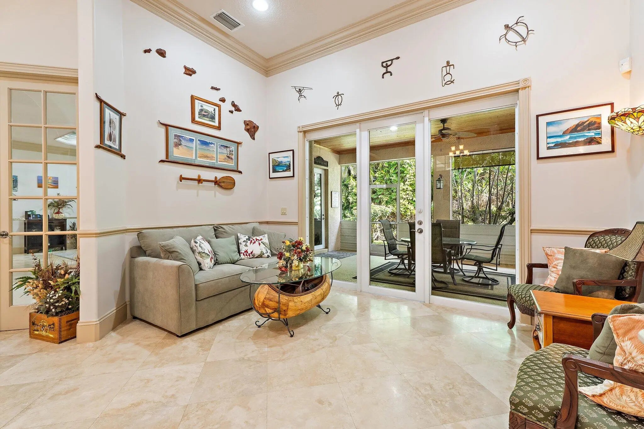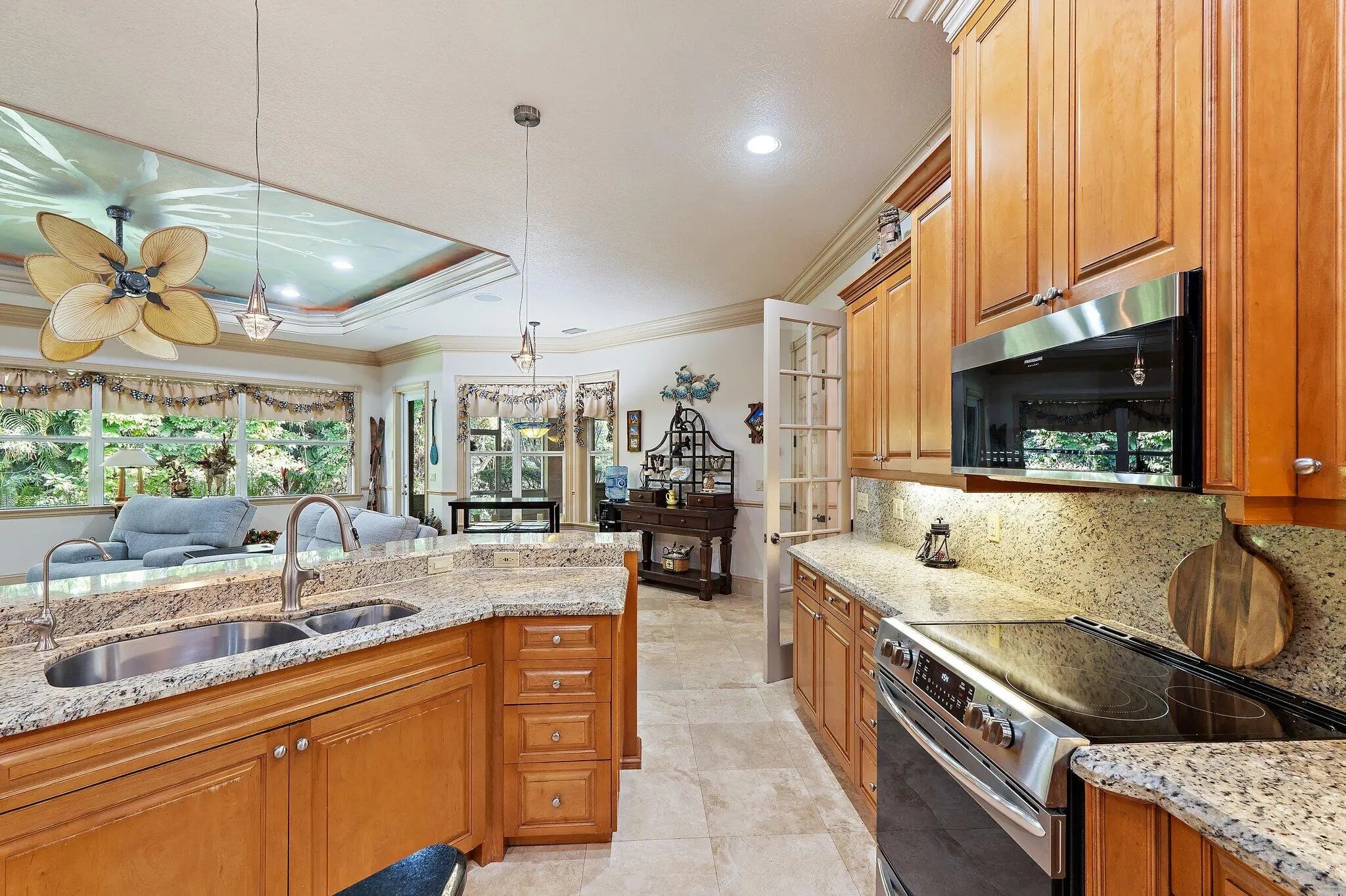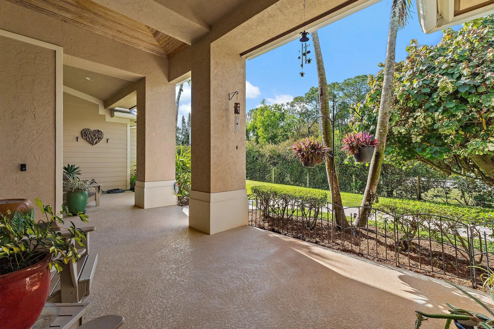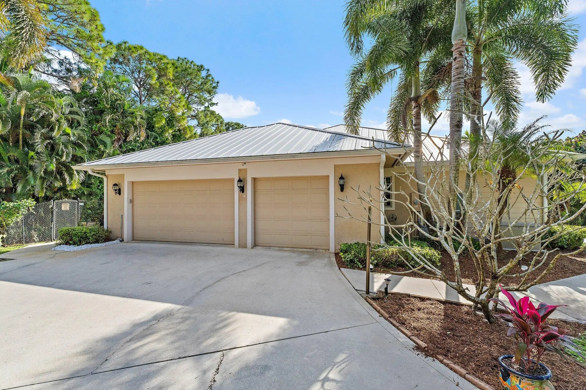 Built solid with concrete block construction, this Jupiter Farms pool home with a detached pole shed offers a rare blend of privacy, functionality, and comfort on just under an acre with no HOA. The well-designed floor plan features 12-foot ceilings, 4 bedrooms, 2.5 bathrooms, and a true split layout for added privacy. The large kitchen offers generous cabinet storage and prep space, flowing into the main living area and out to a screened-in patio ideal for year-round use. A heated saltwater pool highlights the backyard, complemented by new sod, fresh landscaping, and a full irrigation system with Wi-Fi control. The 48x25x16 pole shed, added in 2022, includes 50 amp RV service and 110/120V outlets, offering excellent flexibility for storage, equipment, or recreational use. A separate 10x12 she-shed, built in late 2022, is insulated and outfitted with a window A/C unit, making it ideal for hobbies, creative space, or a quiet retreat. Additional highlights include full impact windows and doors, a new roof (2022), new HVAC system, and a 2022 water heater. A buried 500-gallon propane tank powers the 26kW Kohler whole house generator, providing backup security and peace of mind. The pool heater is electric. Situated on a paved corner lot and fully fenced, the property allows room for RVs, boats, or future expansion. With a strong foundation and valuable systems in place, this home offers long-term potential in one of Jupiter's most desirable acreage neighborhoods.