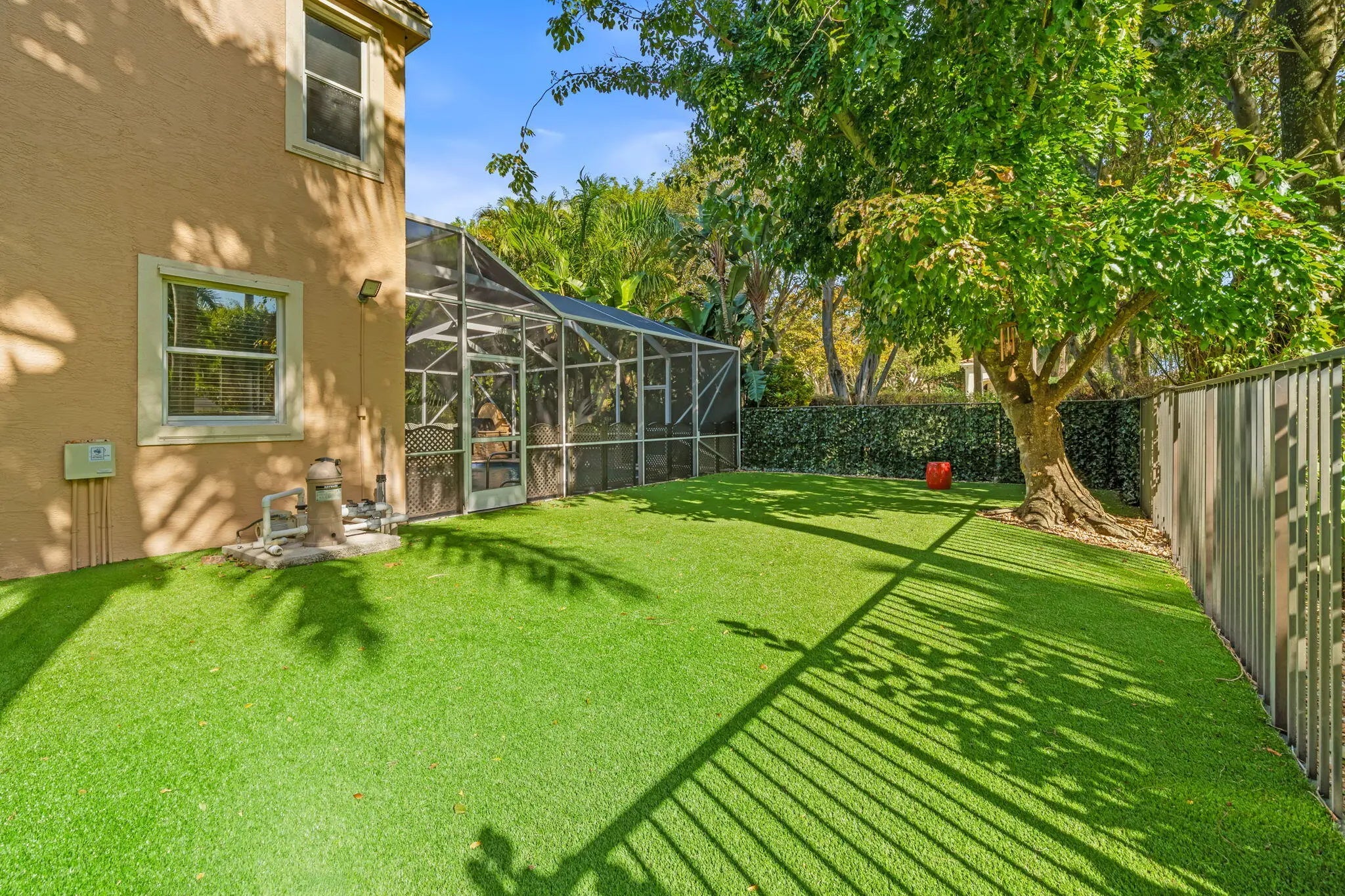Welcome to this beautiful Mediterranean-style two-story home in guard-gated Olympia, set on an oversized corner lot with lush tropical landscaping, turf fenced yard, and a paver driveway. Offering 3 spacious bedrooms, 2.5 baths, and 2,573 sq ft of living space, the layout features an inviting foyer, spacious living and family areas, and a bright kitchen with a center island and pantry, opening to the main living spaces—perfect for everyday living and entertaining. Enjoy tile and wood flooring, generous bedroom sizes, and a primary suite with walk-in closet. Step outside to your private backyard retreat featuring an in-ground pool with screened enclosure, screened patio, built-in BBQ, and fenced yard with serene pool views. Complete with a 2-car attached garage and extensive storm protection, including accordion/storm shutters. Olympia offers resort-style amenities including a clubhouse, fitness center, tennis, basketball, playgrounds, and moreideally located near Wellington's top schools, shopping, dining, and equestrian venues