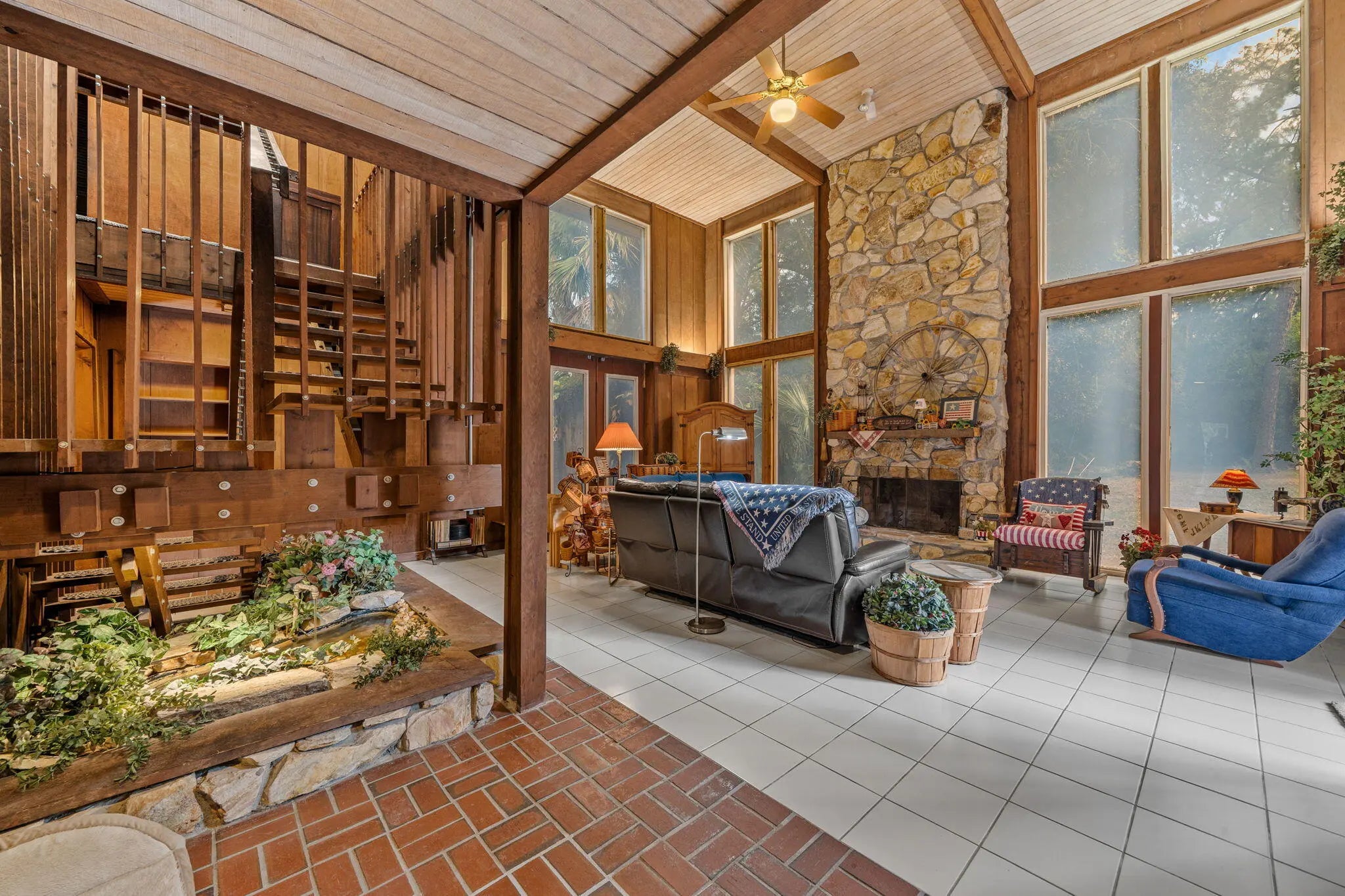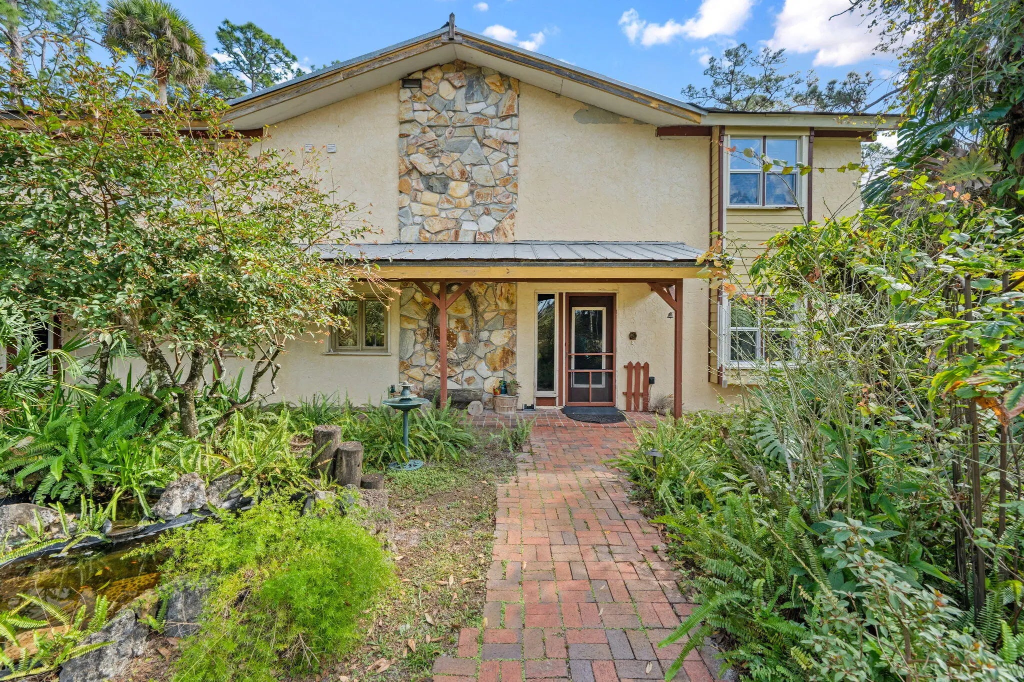 Welcome to a truly one-of-a-kind retreat in the heart of Loxahatchee Groves. Situated on a beautifully treed, private 5+ acre lot, this distinctive home offers the perfect blend of rustic charm, natural surroundings, and peaceful country living just minutes from modern conveniences. The home features soaring vaulted ceilings, rich wood accents, and expansive windows that flood the home with natural light while framing serene views of the surrounding landscape. A dramatic stone fireplace anchors the living space, creating a warm and inviting atmosphere ideal for gatherings or quiet evenings at home. Unique architectural details throughout reflect timeless craftsmanship and character rarely found in today's construction. The spacious kitchen offers ample cabinetry and counter space, perfect for everyday living or entertaining, while maintaining the home's authentic, country-inspired aesthetic. Multiple living and dining areas provide flexibility for entertaining, relaxing, or working from home. The primary suite is a tranquil escape, featuring vaulted ceilings, natural light, and peaceful views of the property. Additional bedrooms and living spaces offer comfort and versatility for family, guests, or multigenerational living. Outside, the expansive grounds provide endless possibilitiesroom for horses, gardens, workshops, or future expansion. Mature trees and lush vegetation offer privacy and shade, embracing the Old Florida lifestyle Loxahatchee Groves is known for. With no HOA restrictions, enjoy the freedom to live, work, and play your way. Conveniently located near Wellington, shopping, dining, top equestrian venues, and major roadways, this property delivers the rare opportunity to enjoy country living without sacrificing accessibility. This is more than a homeit's a lifestyle.