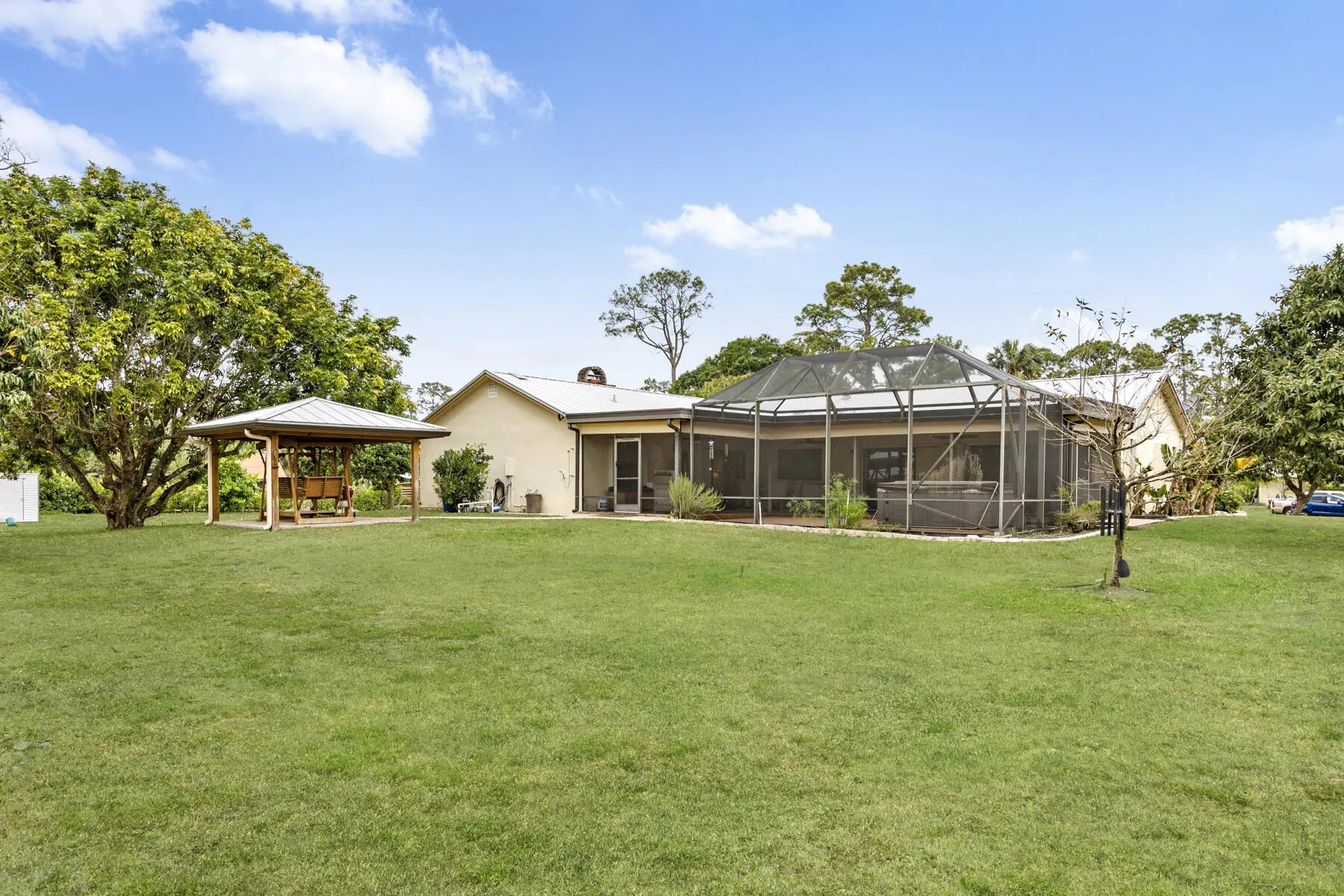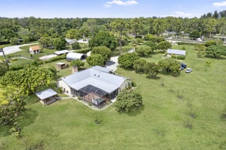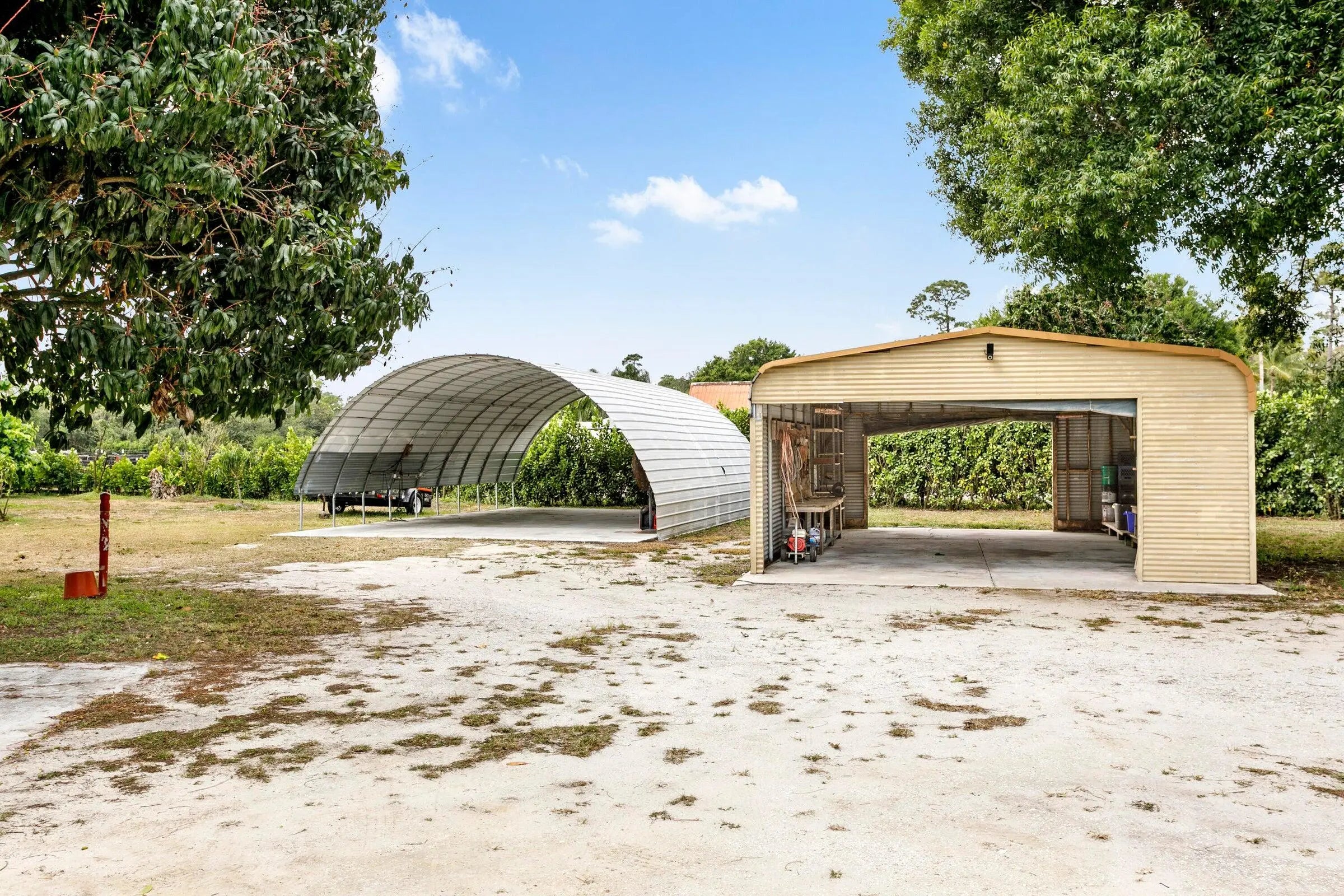 Exceptional Location with Endless Possibilities! Nestled on a picturesque manicured 5-acre parcel, this property boasts two well-maintained single-family homes, offering the perfect blend of serene country living with unparalleled proximity to the city. Ideally situated just minutes from Palm Beach County's most sought-after destinations, you'll enjoy the best of both worlds. Within minutes to Palms West Hospital, Publix, PBI Airport and nearby shopping, and find yourself just a stone's throw from the renowned Polo Grounds and Wellington Green Mall. This rare and unique property is currently operating as a thriving fruit farm, with an impressive array of mature, exotic fruit trees—including Mango, Avocado, Longan, Sugar Apple, Jackfruit, Sapodilla, Mamey Sapote, Dragon Fruit Read MORE The property is also benefiting from agricultural Orchard Land Use tax exemptions, making it an ideal investment for agricultural enthusiasts or those looking for a private, nature-filled retreat. Both homes feature high-quality standing seam metal roofs, replaced in 2022, while the patio flat roof has been recently redone in 2024. Full 4-point inspection and wind mitigation reports are available for peace of mind. This one-of-a-kind property offers an incredible opportunity to experience a peaceful, rural lifestyle without sacrificing the conveniences of urban living. Don't miss your chance to own this extraordinary piece of land in one of the most coveted locations in the area. Main home: This spacious 3-bedroom, 2-bathroom home boasts 2,244 sq. ft. of living space with a thoughtfully designed split floor plan. Enjoy the expansive 728 sq. ft. covered and screened patio, perfect for entertaining or relaxing, complete with an 8-person hot tub. The property offers breathtaking views of a serene lake, enhanced by a fountain that also serves as an irrigation source. The main home showcases a striking front façade with authentic Old Chicago brick and a cozy wood-burning fireplace. Inside, you'll find laminate and tile flooring throughout, with elegant Margaritelli wood floors in the formal living and dining areas. Triple sliding doors lead out to the rear patio deck from multiple rooms, providing a seamless indoor-outdoor living experience. The master suite features a walk-in, drop-down shower and dual vanities, while the cabana-style hall bathroom adds extra convenience. Additionally, the property is fully equipped with a 20+KW Kubota Diesel Generator, along with a 500-gallon fuel tank, ensuring uninterrupted power to the entire home, including air conditioning. Guest House: The 1-bedroom, 1-bathroom guest home offers 744 sq. ft. of living space and features a spacious bedroom with a walk-in closet, a full-size kitchen, and laundry hookups. A generous great room leads out to a large, partially covered brick paver patio, ideal for enjoying the outdoors. For added convenience, the guest house has a 50-amp RV hookup with gray water setup. Additional Structures & Storage: This property offers exceptional versatility with multiple outbuildings, including: - A detached 40 x 25 Quonset hut, perfect for 4 cars, with a 30-amp RV hookup. - A 30 x 20 workshop with electricity. - Two covered equipment structures (32 x 26 and 32 x 12) for additional storage, workspace or equipment. - Three additional aluminum sheds (18 x 11, 15 x 10, and 8 x 6) to accommodate all your storage needs. Additional Amenities: Both homes are protected by aluminum accordion storm shutters on every window and door, offering added peace of mind during storm season. This remarkable property is truly a one-of-a-kind gem, with way more features than can be listed here! It's an exceptional opportunity that won't last long--schedule your showing today before it's gone!