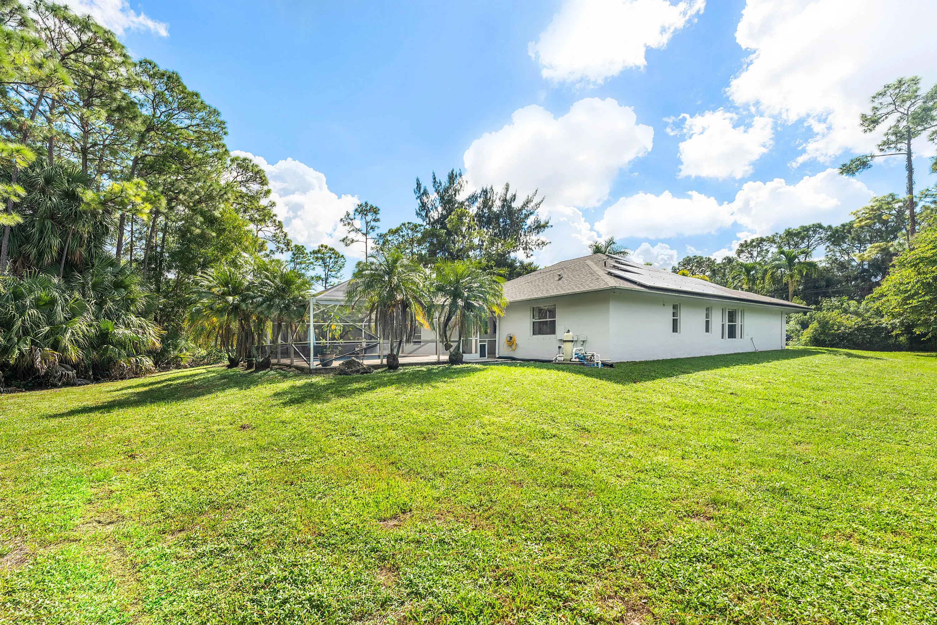 Where the Pavement Ends, Your Freedom Begins. Escape to on of the most private lots in the Zip Code. Tucked away at the absolute end of a quiet street, this 1.31-acre estate is the last house on the lane-- zero through traffic, zero street noise, and total peace. This isn't just a home; it's a 3,227 total sq. ft. sanctuary for those who value fresh air, wide-open spaces, and the ''off-the-grid'' spirit without sacrificing high-end luxury. The Ultimate Lifestyle Floorplan: Step inside to a modern, carpet-free interior featuring a seamless mix of rich wood and durable tile flooring. The kitchen is a chef's dream with double ovens, perfect for hosting after a day on the land. The functional versatility is unmatched: • The Flex Suite: A massive wing with a wet bar, wine fridge, and en-suit bath--ideal for a high-end office or media room. " Bonus Room: A dedicated 5th-room potential with its own window and closet. Outdoor Freedom & Autonomy: The fully fenced 1.31 acres is a haven for the traveler's lifestyle. With no HOA, your RV, boat, motorcycles, and muddin' toys finally have the space they deserve. Spend your evenings at the custom outdoor fire pit under the stars, or retreat to the screen-enclosed saltwater pool and oversized covered patio. Recent upgrades include a brand-new water softener system, solar panels, and new A/C. Value-Add Living: Landlord provides high-speed AT&T internet and covers FPL electric (up to $400/mo), making this a rare "turn-key" rural experience. Minutes from Wellington's equestrian heart, yet completely secluded. Live where the neighbors are distant and the air is clear.