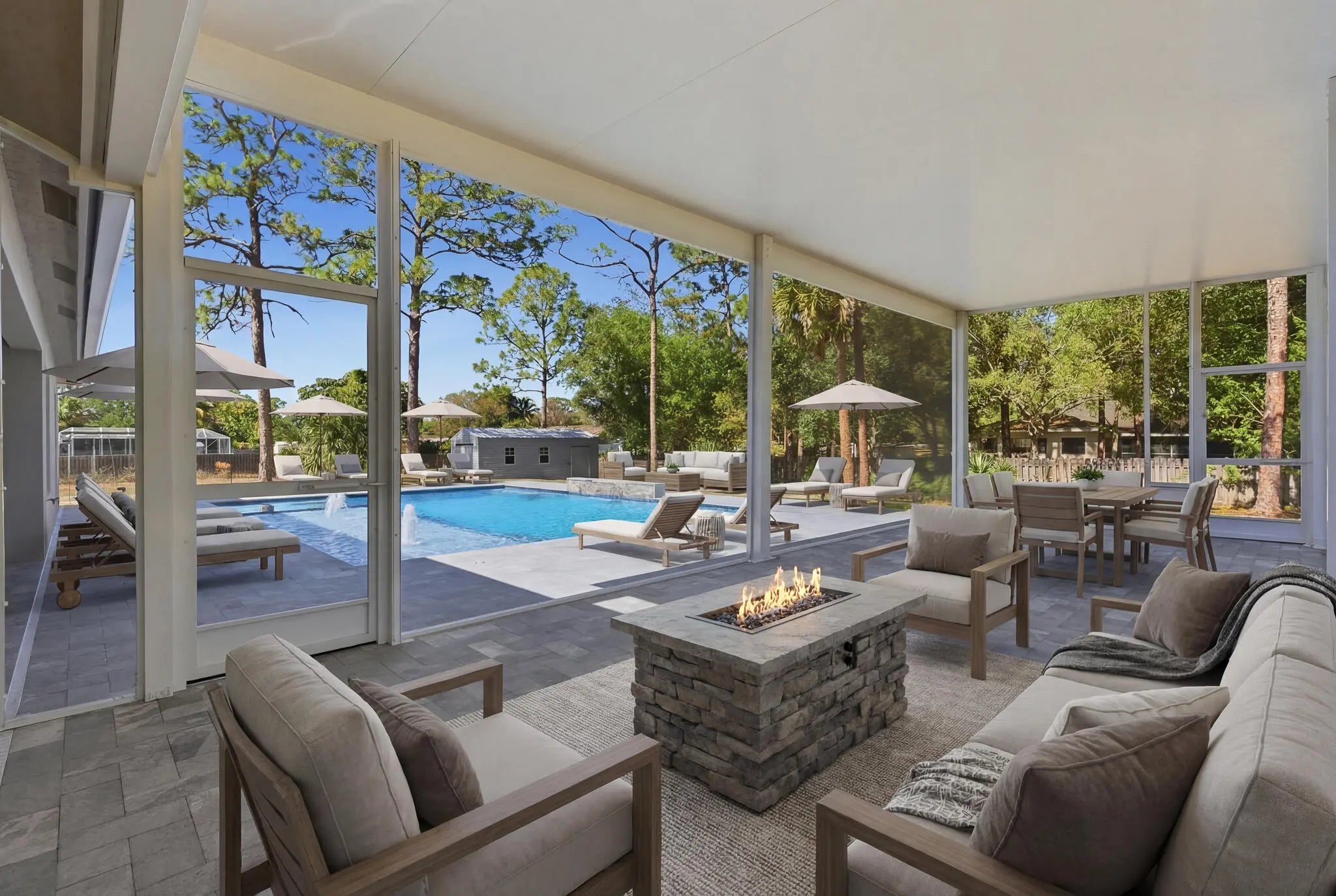 Completed in 2023, this refined 4-bedroom, 3-bath residence offers modern luxury with intentional design throughout. Two expansive primary suites provide exceptional flexibility and privacy. The home opens to an inviting outdoor living retreat, anchored by a heated saltwater pool and spa with waterfall features, all framed by a large screened lanai designed for year-round enjoyment. Impact windows, spray-foam insulation, and smart-home systems enhance comfort and efficiency, while elegant finishes elevate everyday living. Thoughtfully built and impeccably maintained, this is a rare opportunity to own nearly new construction where luxury, lifestyle, and longevity meet.