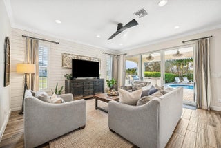 Located on a quiet cul de sac in the sought after Arden community, this highly upgraded Ryan Homes Corin model offers four bedrooms, two and a half baths, and 2,418 square feet of thoughtfully designed living space. The backyard is a true standout, designed for both entertaining and everyday enjoyment. Features include a private pool with new saltwater system and pump, outdoor kitchen, powered awnings, custom landscape lighting, and a private putting green finished with premium turf. The home has been transitioned to city water, adding long term convenience and value. Inside, the home is equipped with whole house impact windows, plantation shutters, a farmhouse sink, pull out cabinet shelving, and a finished den with custom built ins. The finished garage includes epoxy floors and built in cabinetry, while a whole house generator provides peace of mind during any outage. A new HVAC system further enhances efficiency and comfort. Set within Arden's award winning, gated community offering miles of walking and biking trails, lakes, a working farm, and a resort style clubhouse, this home delivers a rare combination of luxury upgrades, privacy, and lifestyle focused living. This is a move in ready property with significant capital improvements already completed.