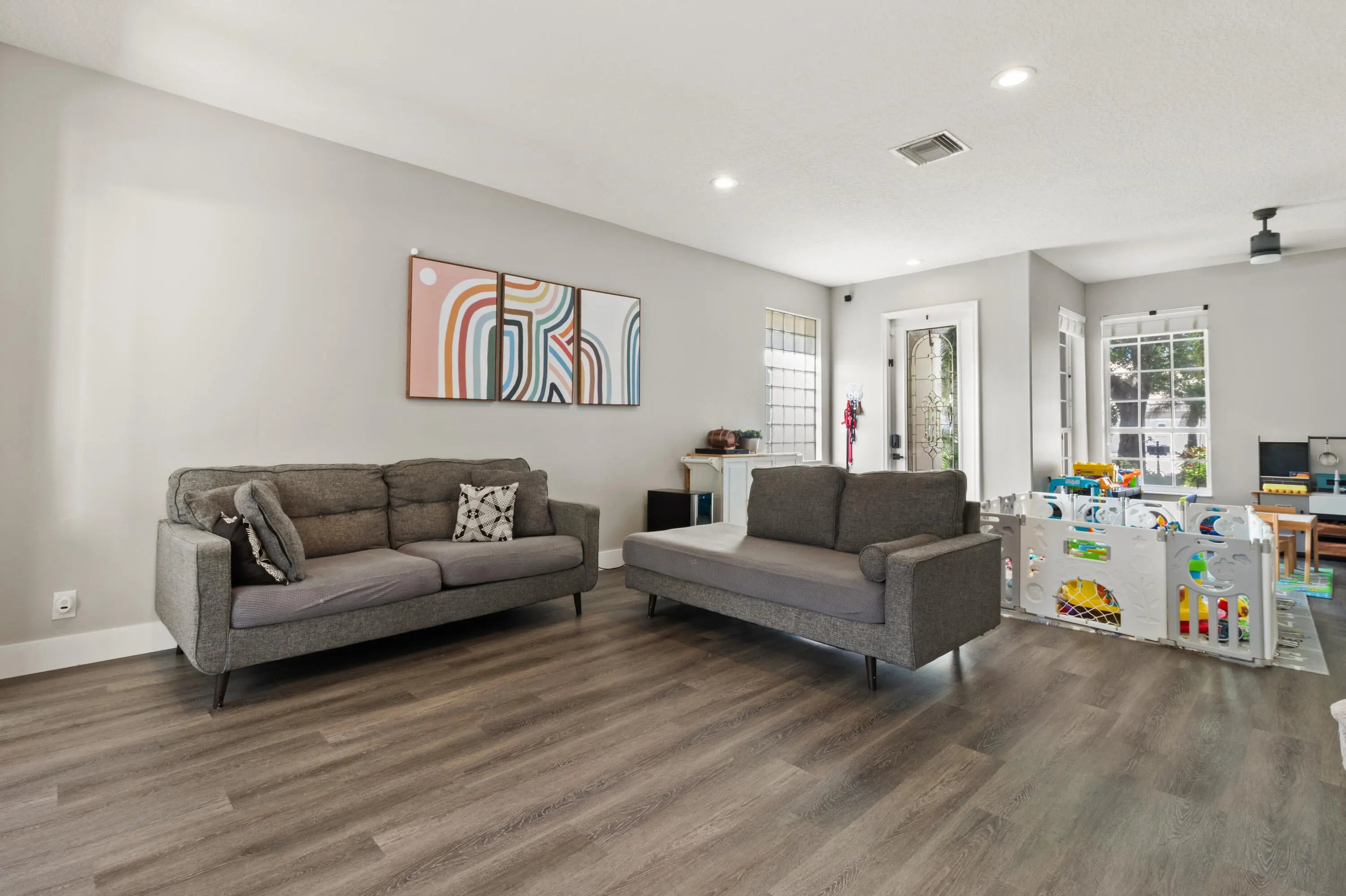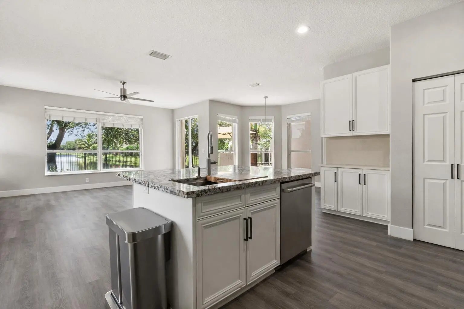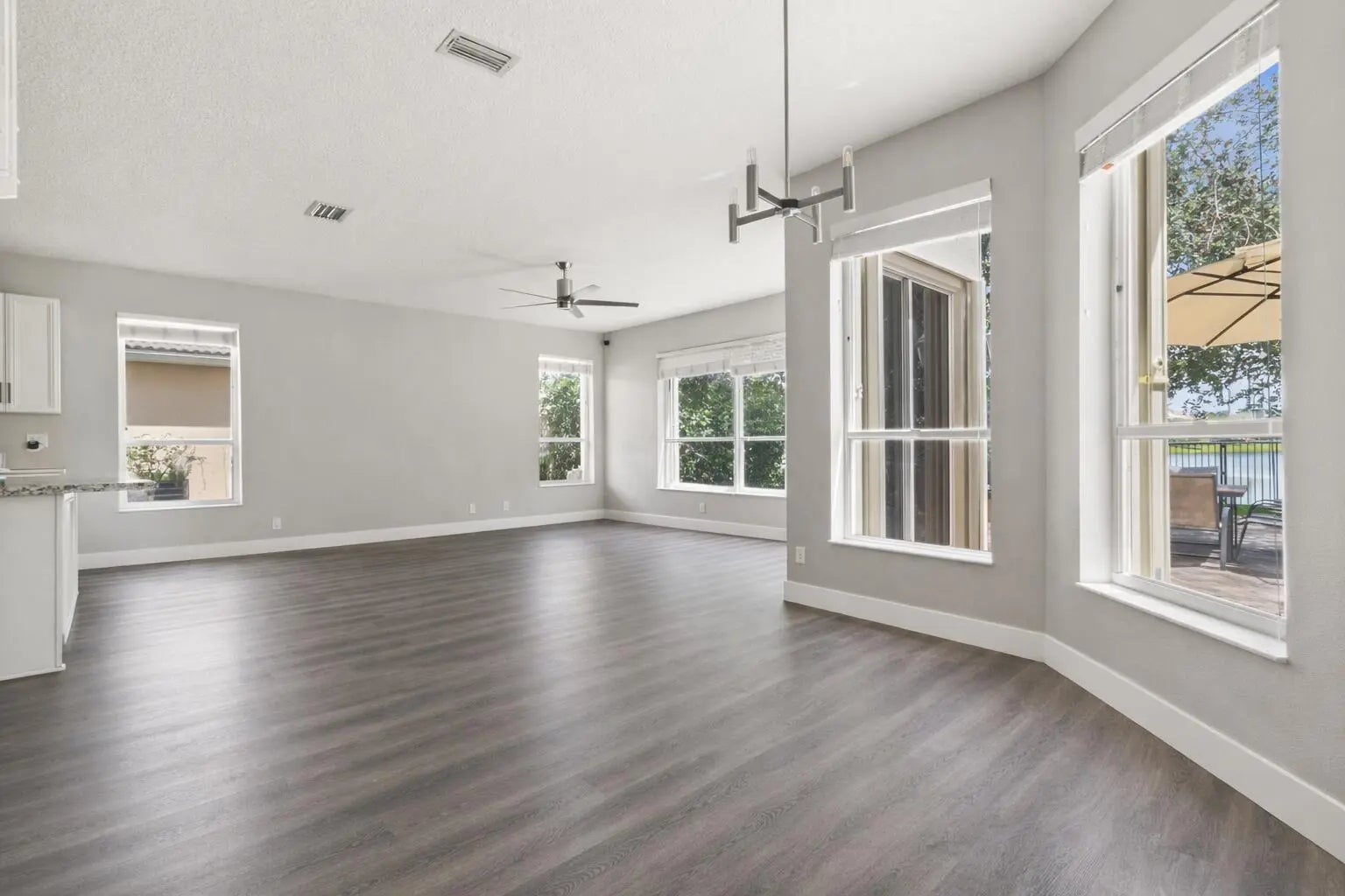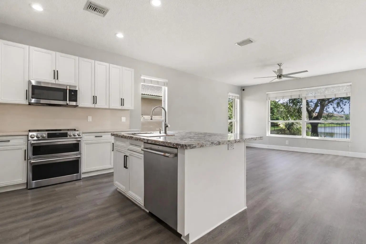 LAKE FRONT HOME + Excellent Location! This spacious 5BR/3BA offers nearly 3,000 sq ft of living space and a bright, open layout. Recent updates include elegant new flooring throughout the ground level, fresh interior paint, and a fenced backyard perfect for pets and outdoor enjoyment. The modern kitchen flows to expansive living and dining areas, while upstairs bedrooms provide comfort and privacy. Enjoy tranquil lake views, community clubhouse amenities, and one of the most walkable locations in Wellington, just minutes to Panther Run Elementary and Polo Park Middle School. A rare blend of lifestyle, location, and upgrades! A Capital Contribution $1185 at Closing. No lease first year. Max 3 pets per unit. Lease for minimum 12 months.
