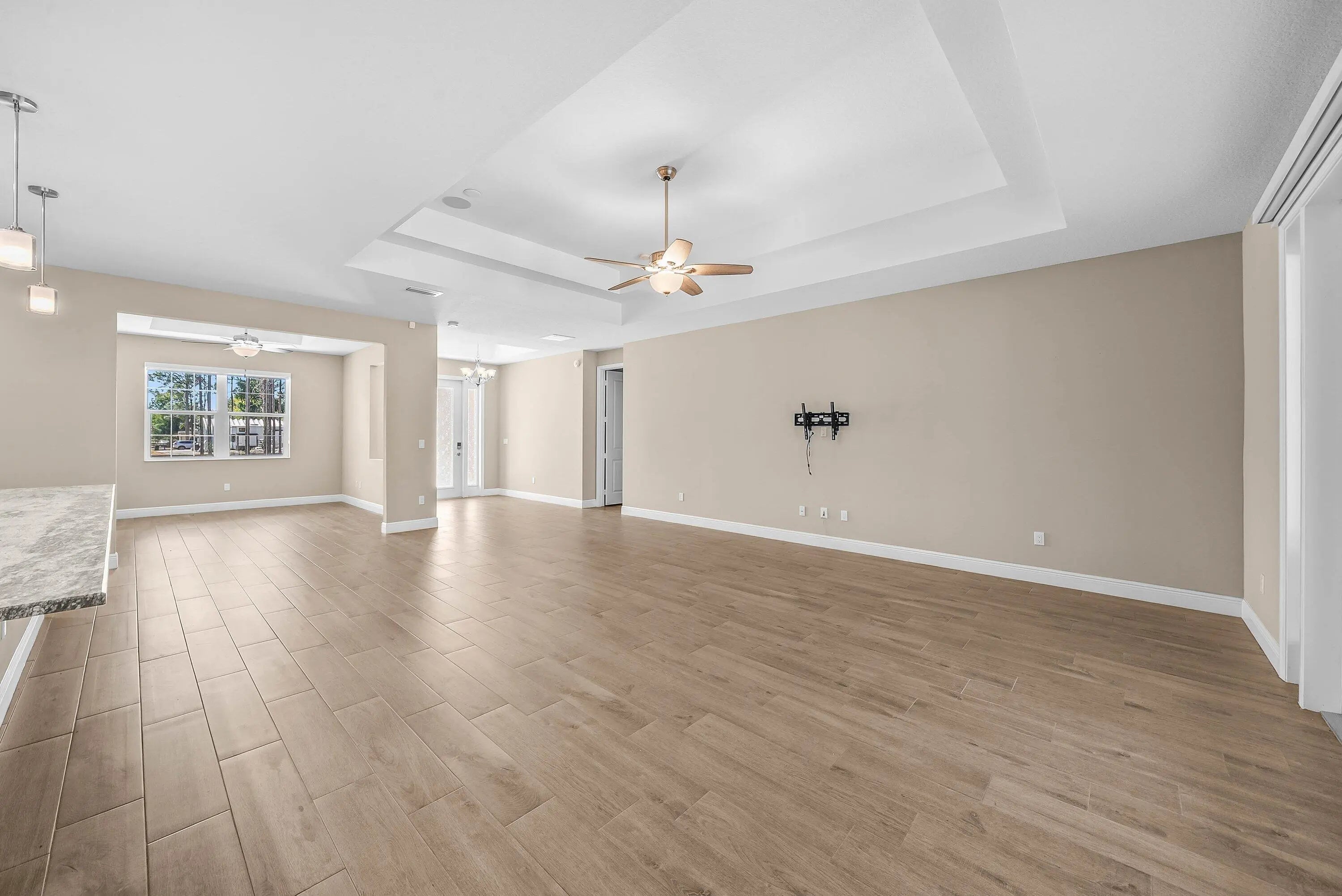 Built in 2022, this spacious 4-bedroom, 3-bath home sits on over an acre of fully fenced land, offering both modern comfort and plenty of room to spread out. The thoughtfully designed layout features an additional private primary suite with its own full bathroom, ideal for guests or multi-generational living. Inside, you'll find durable wood-plank tile flooring throughout, granite countertops, stainless steel appliances, and impact-resistant windows and doors for added peace of mind. Enjoy the convenience of a whole-house reverse osmosis water system, with monthly maintenance and lawn care included in the rent. With more than an acre of property, there is ample space to bring your boats, trailers, or recreational toys and truly take advantage of the outdoor lifestyle this property offers