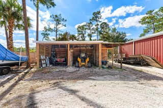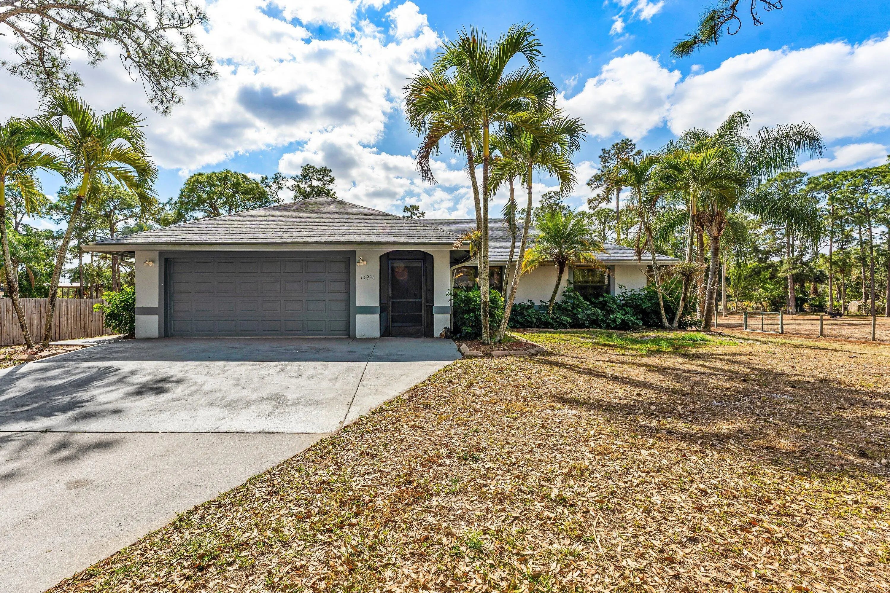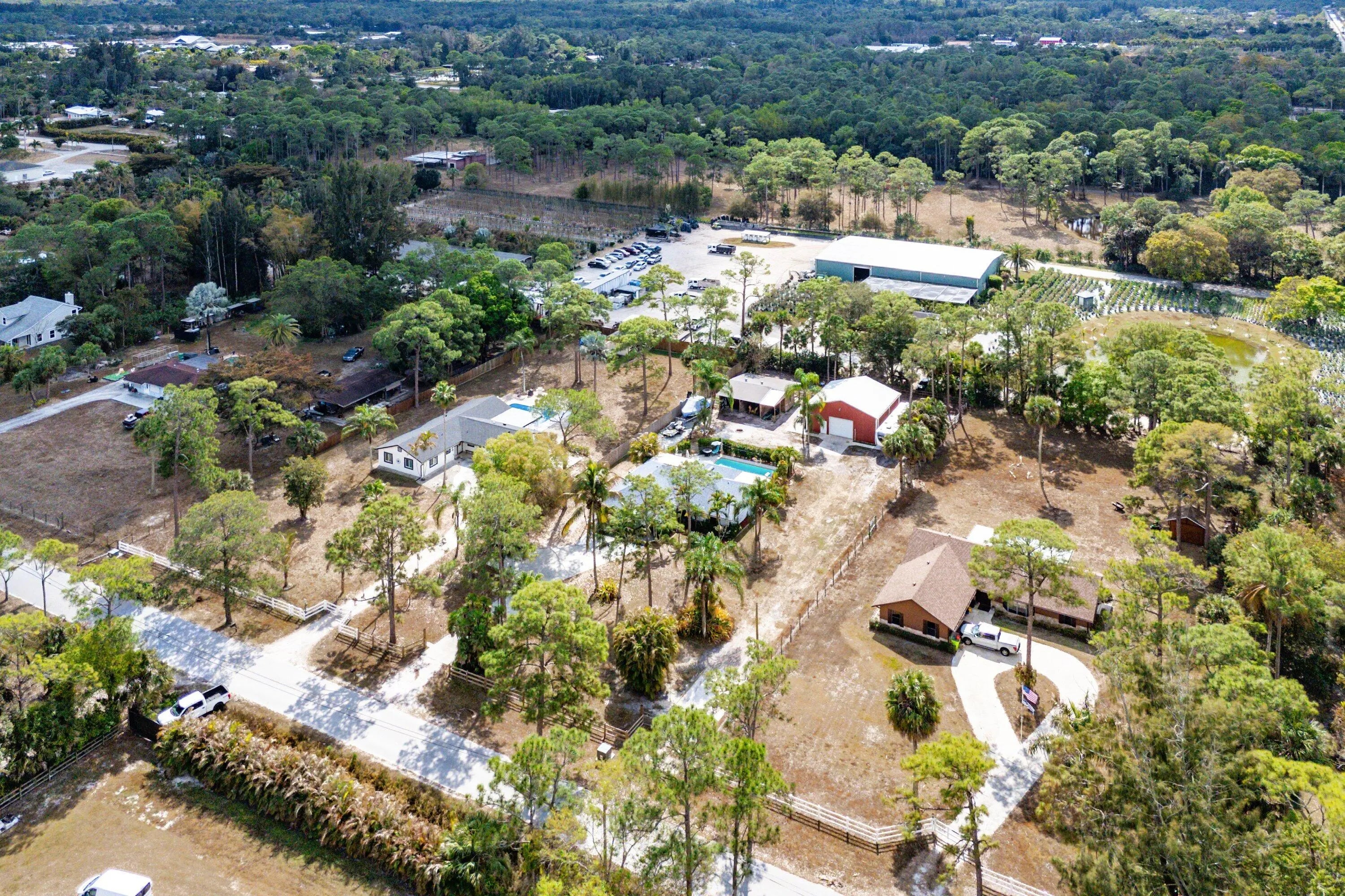 Amazing property in Loxahatchee Groves! Easy access just north of Okeechobee Rd off C Rd! Large 3/2 home with 2 car garage has a new roof in 2025! Diesel generator and Starlink system negotiable. Property has powered gate and security cameras throughout run by app.Lovely cathedral ceilings and granite counters. Open floor plan-living room to dining area out to finished patio under AC, and 2 screen areas with multiple sliders to fenced pool/bbq area. The hurricane rated steel workshop is extra large with high ceilings w/over 1200sf under A/C and 220. The barn is 1000sf and has 2 enclosed stalls and 3 run-ins , as well as a tack room and covered shedrow. Trailer pad with hookups. This fenced property has everything you need to live work. Sellers will negotiate credit towards closing costs.