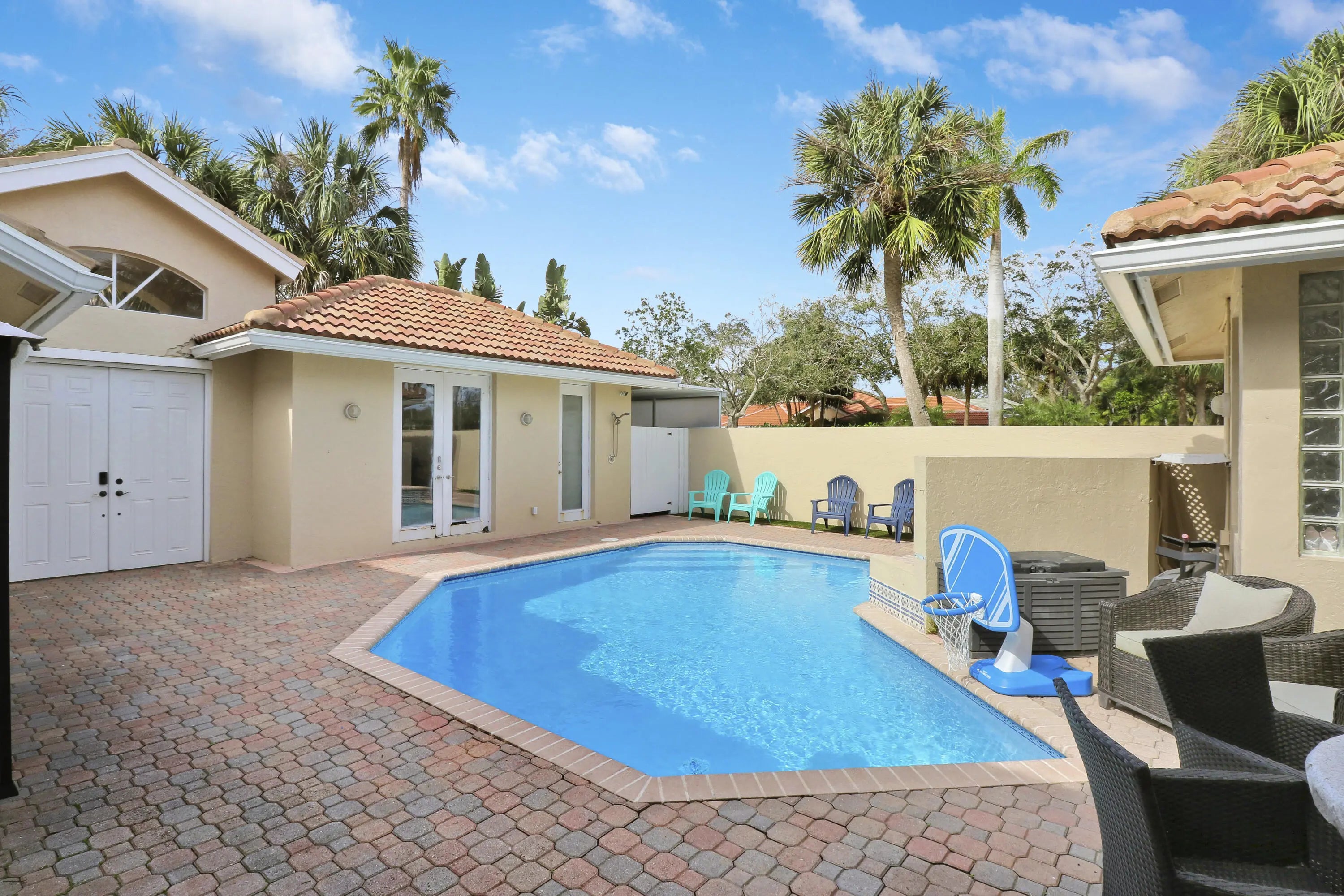 Welcome home to 6995 Cypress Cove Circle, nestled in the serene gated community of Cypress Cove within The Shores of Jupiter. This stunning courtyard home offers 4 bedrooms, 3 full bathrooms, and a 2-car garage, blending elegance and comfort in one of Jupiter's most sought-after neighborhoods. Step inside and immediately appreciate the abundance of natural light pouring through grand windows, accentuating the tall ceilings and beautiful new flooring throughout the two main living areas. The thoughtfully updated kitchen features crisp white cabinetry, stainless steel appliances, and a clean, modern aesthetic, perfect for everyday living and entertaining alike. With a seamless flow between the living room, family room, and kitchen, the open and inviting floor plan creates the ideal setting for gatherings and making lasting memories. The fully fenced yard adds both privacy and functionality, perfect for pets, play, or peaceful outdoor enjoyment. Life in The Shores of Jupiter means tree-lined streets shaded by mature oaks, scenic lakes for canoeing, kayaking, and fishing, and miles of sidewalks perfect for biking and evening strolls. Residents enjoy a newly renovated tot-lot playground and a true sense of community. Ideally located in the heart of Jupiter, you're just minutes from I-95, PBI Airport, pristine beaches, top-rated dining and shopping, and A-rated schools within biking distance.