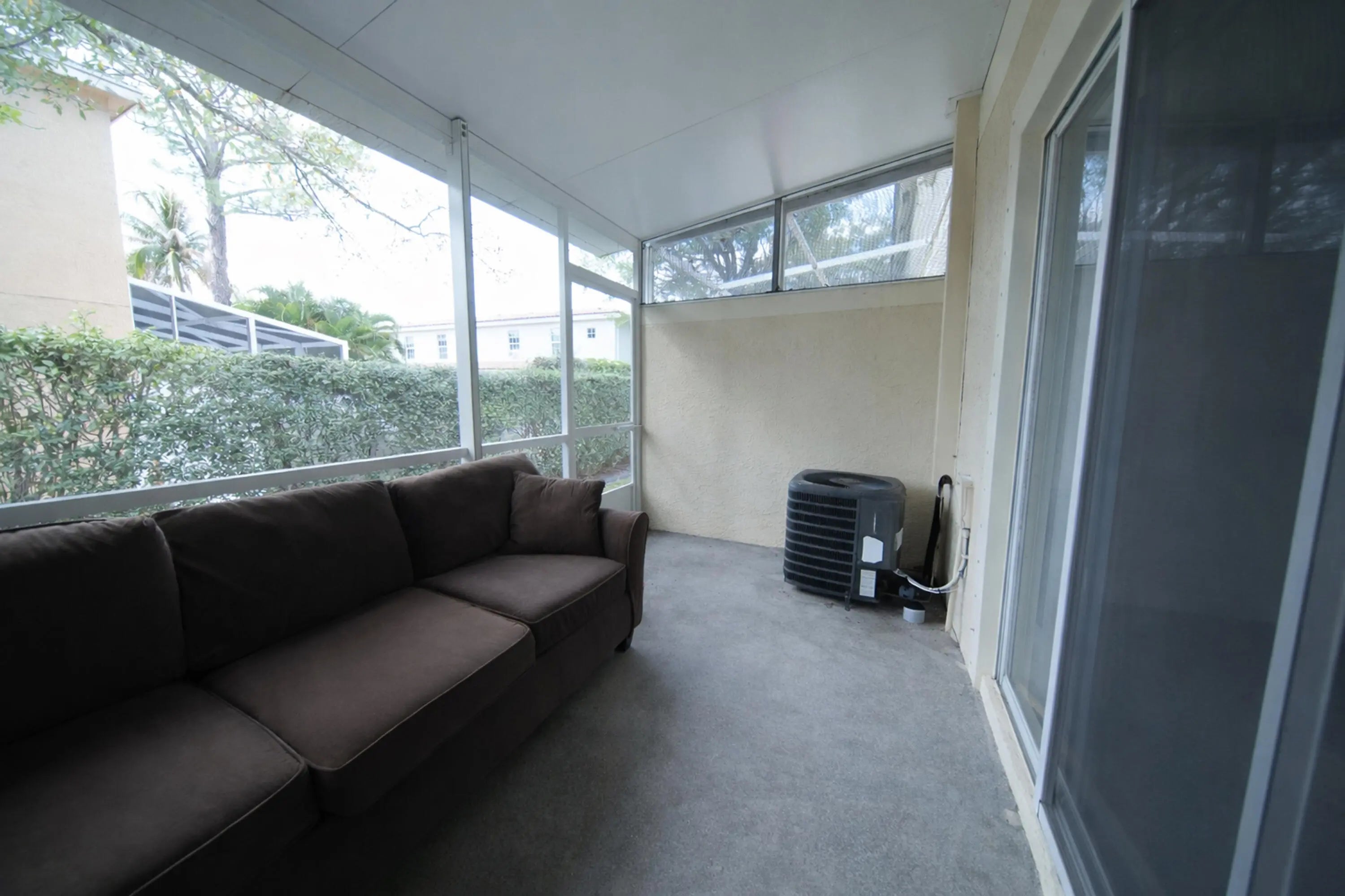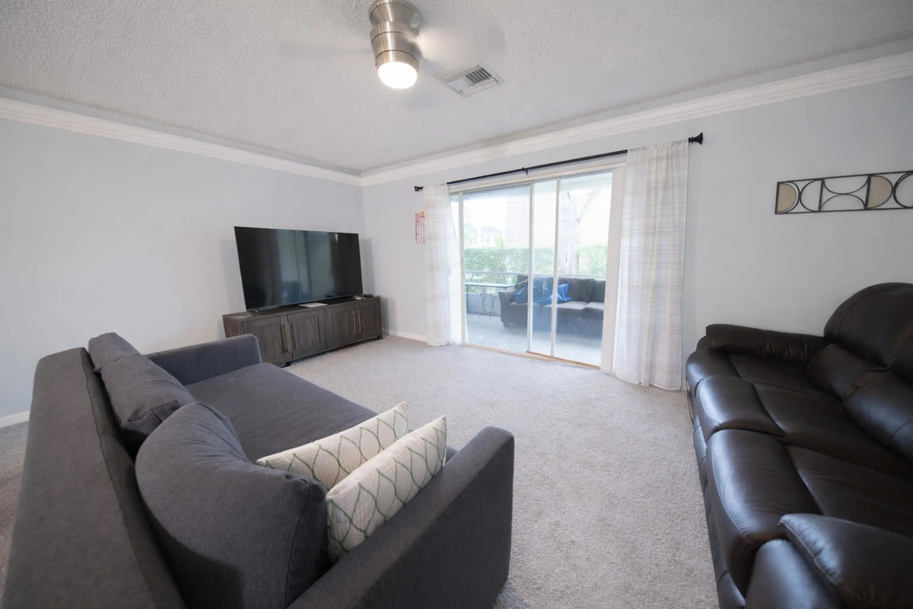 This charming 2-bedroom, 2-bath townhome is located in the highly desirable Timberwalk community of Jupiter. The open-concept floor plan is filled with natural light from expansive sliding glass doors, creating a bright and inviting living space ideal for both relaxing and entertaining. The spacious living area flows seamlessly into the updated kitchen, which features stainless steel appliances, sleek cabinetry, and updated backsplash, ample counter space, and a convenient breakfast bar for casual dining. The primary suite offers a generous layout with a walk-in closet, while the second bedroom is perfect for guests, a home office, or a nursery. Bathrooms feature contemporary fixtures and updated lighting for a clean, modern feel. Step outside to your private patio--an ideal space for morning coffee, outdoor dining, or creating your own garden oasis. Residents enjoy access to community amenities including a swimming pool and green spaces. Conveniently located near shopping, dining, parks, and major roadways, this home delivers the perfect blend of lifestyle, location, and value. Move-in ready and waiting for you to call it home.