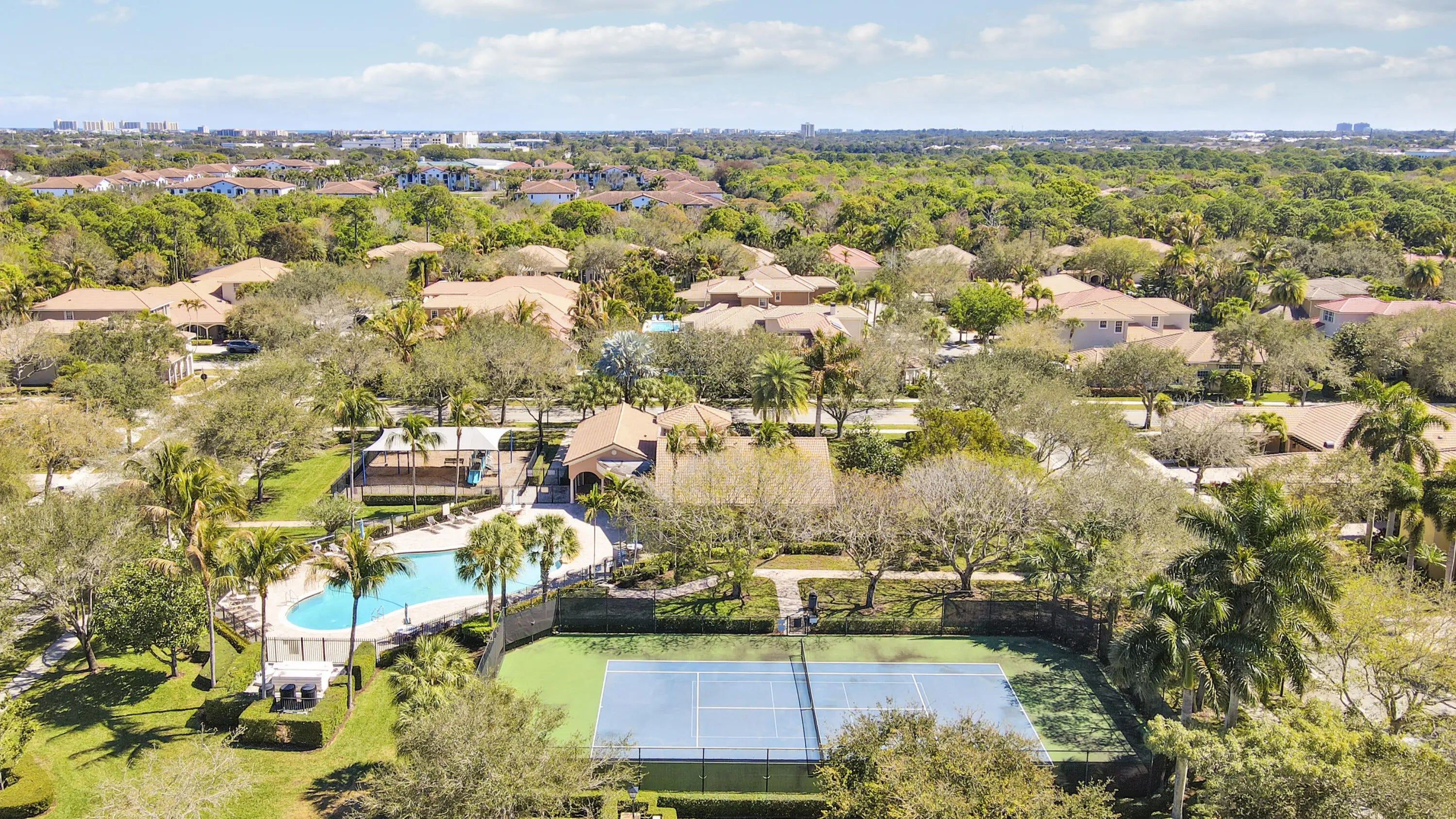 Beautiful 4 bedroom, 2.5 bathroom home in the highly sought after Paseos community in Jupiter. Offering over 2,400 square feet of living space, this home features a spacious open floor plan, generous living areas, and abundant natural light throughout. The kitchen flows seamlessly into the family room, creating an ideal space for everyday living and entertaining. The primary suite offers a private retreat with a large bathroom and ample closet space, while the additional bedrooms provide flexibility for guests, family, or a home office. A two car garage and spacious private backyard complete the home. Residents of Paseos enjoy resort style amenities including a clubhouse, community pool, tennis courts, scenic walking trails, and playground.
