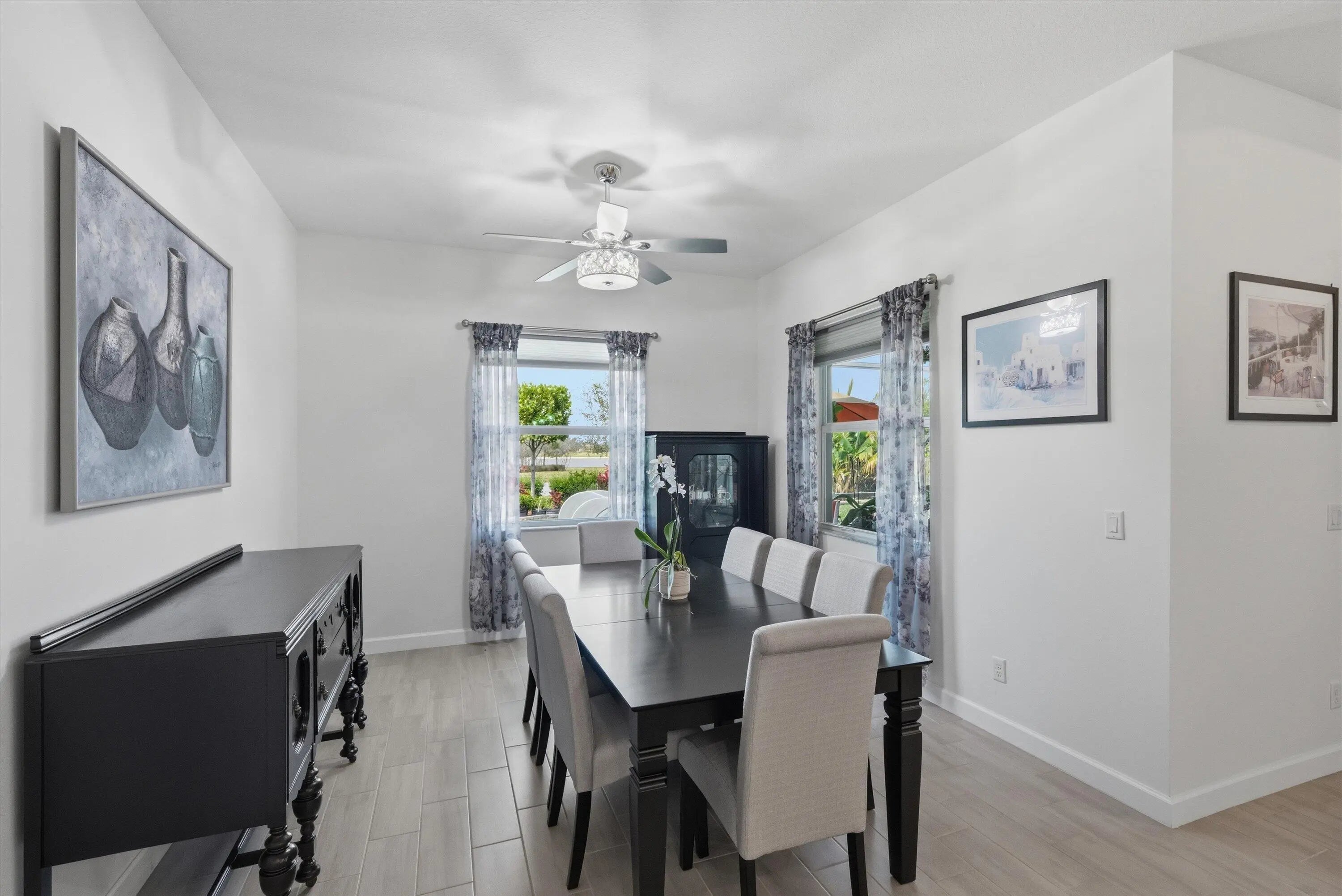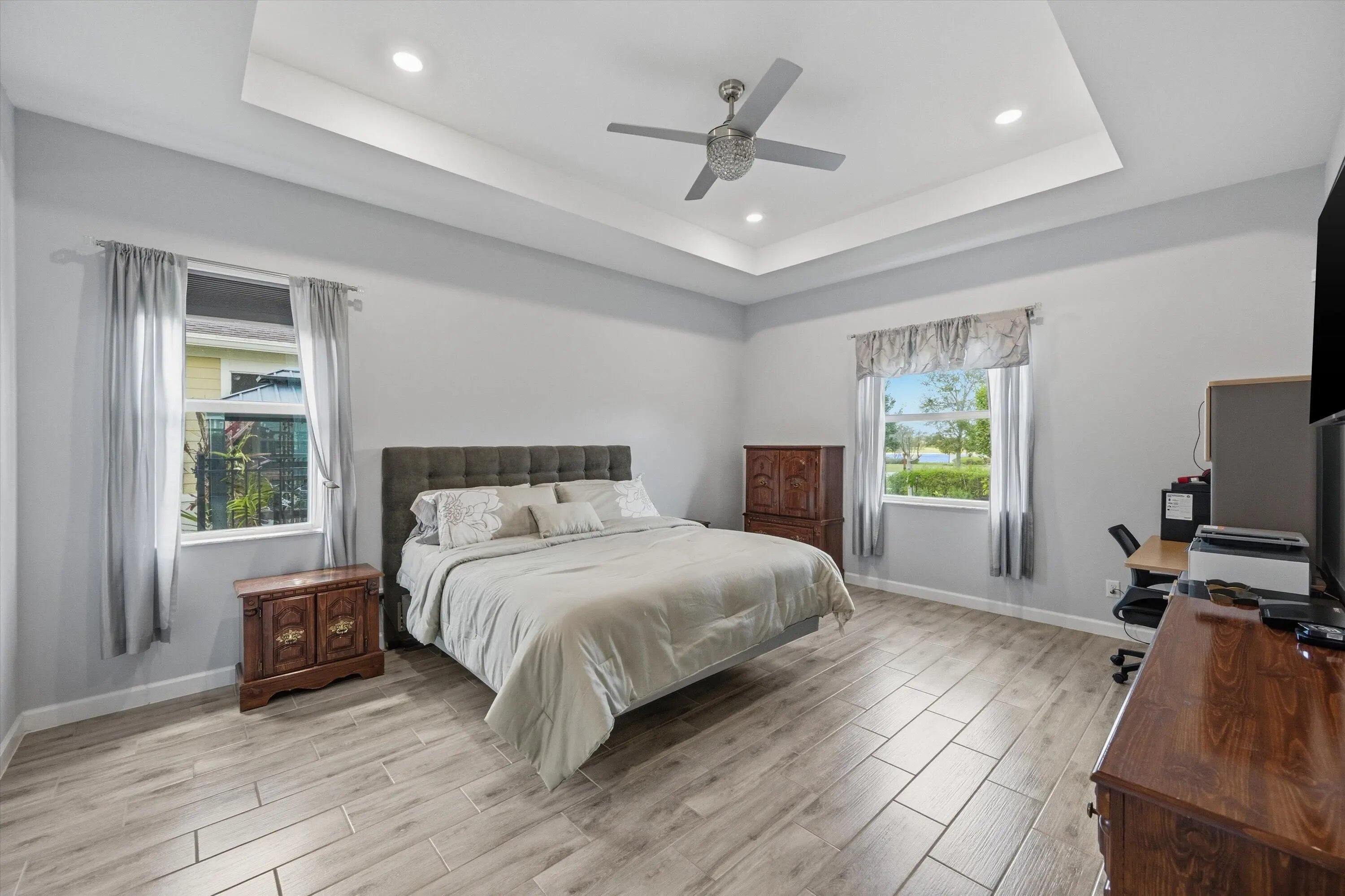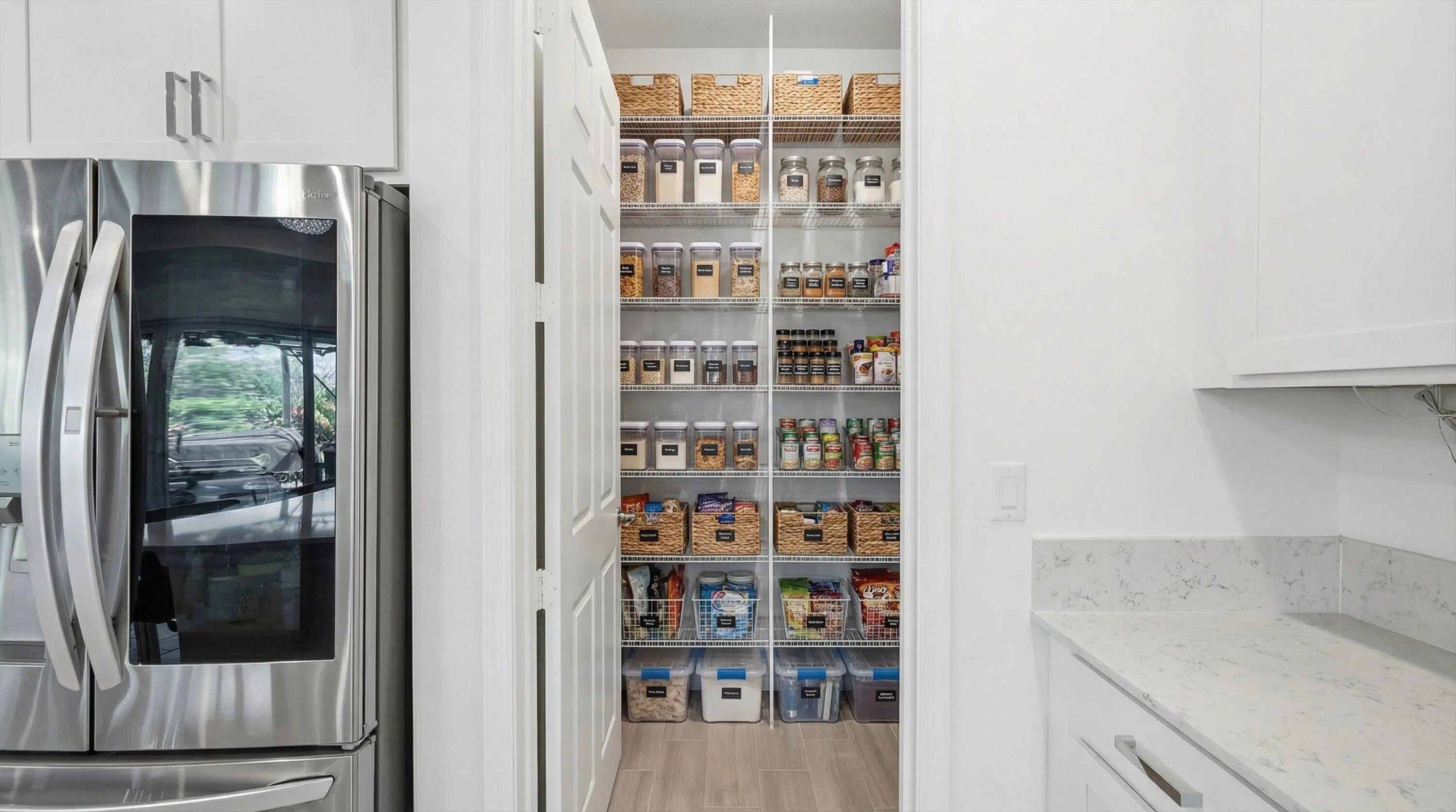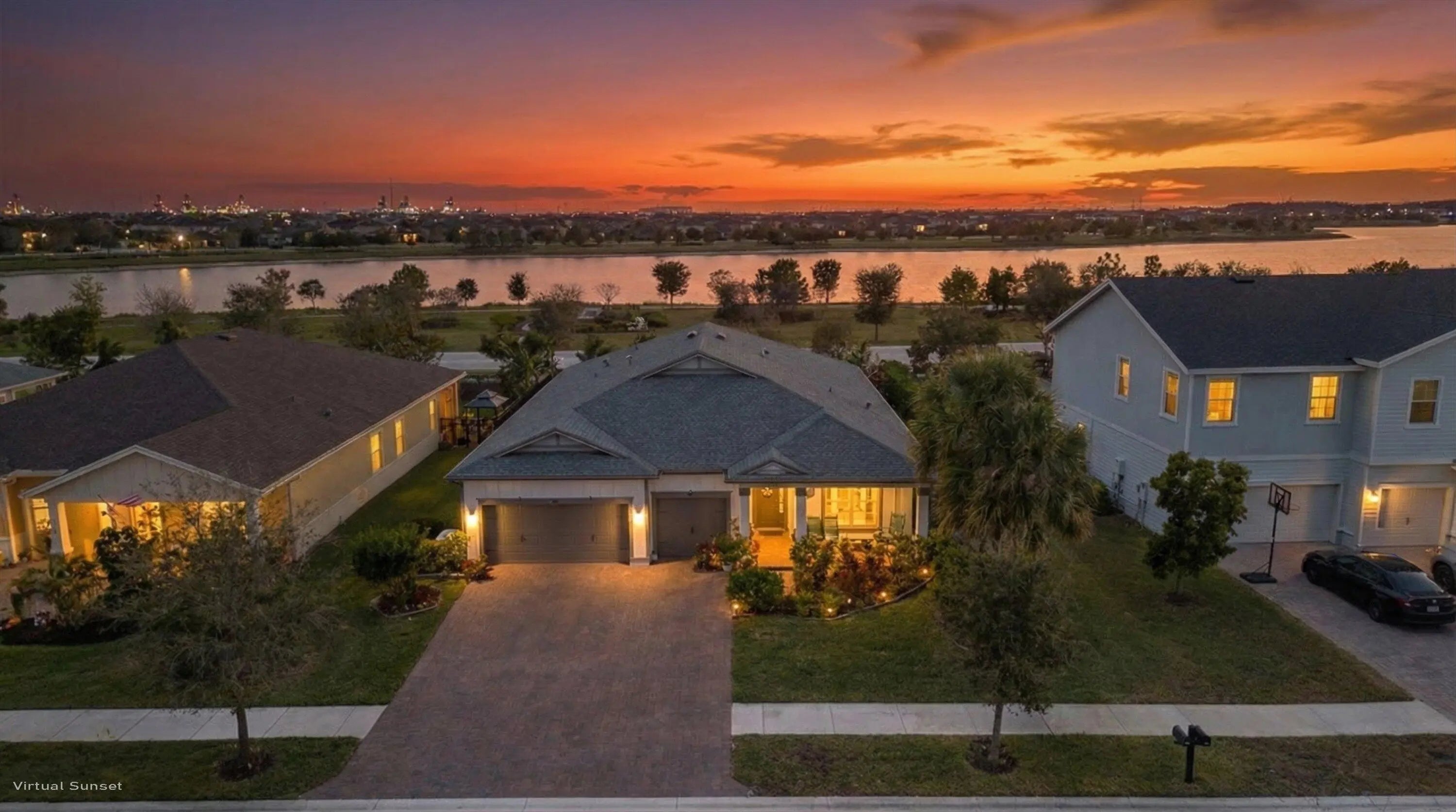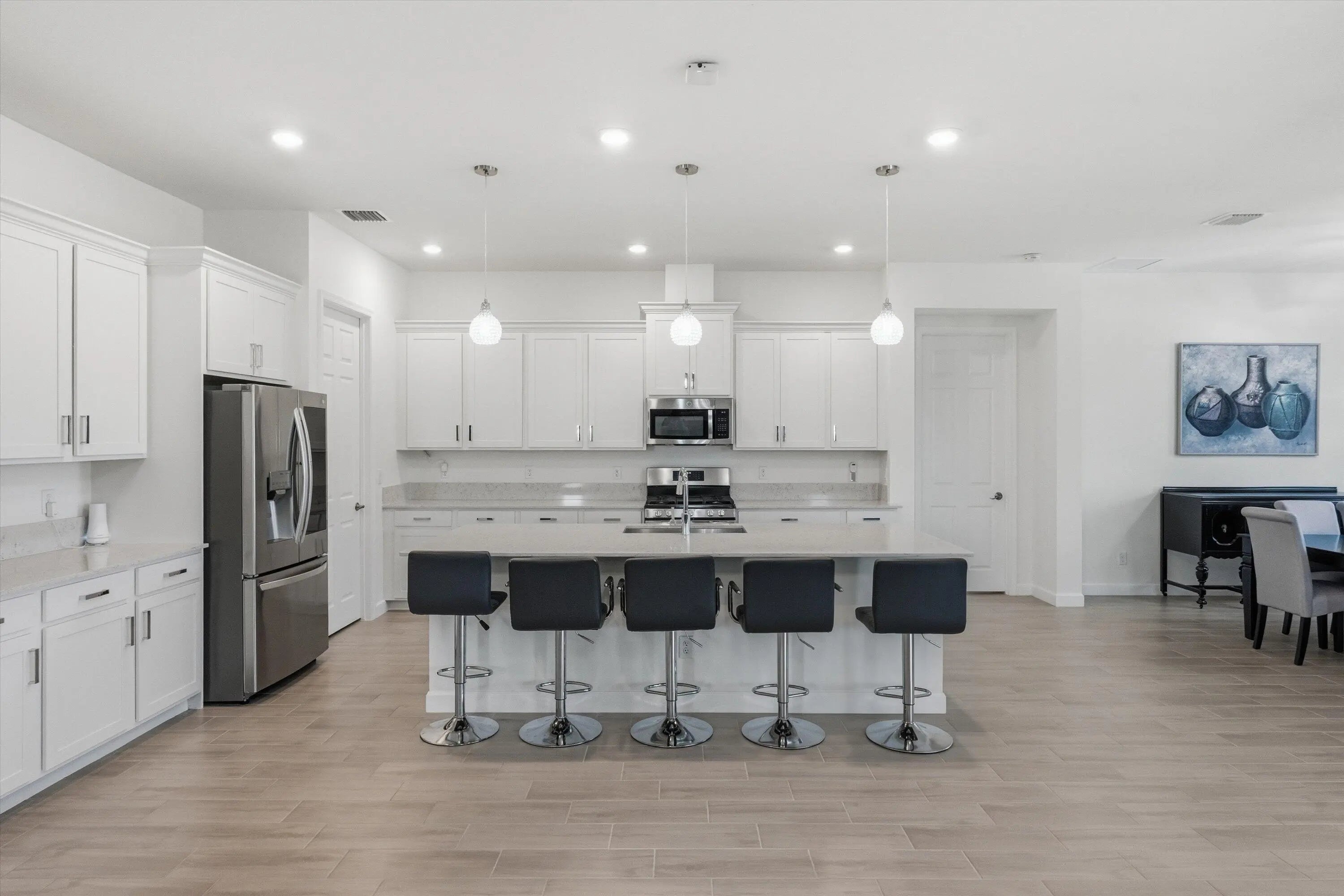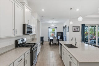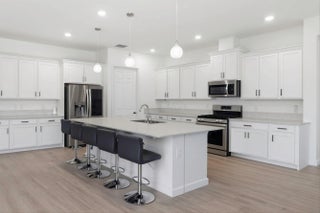 Welcome to this stunning 2021-built modern 4-bedroom, 3-bathroom home offering a sprawling one-story open concept design with beautiful lake views and soaring high ceilings throughout. This meticulously maintained residence blends luxury, comfort, and convenience. The spacious chef's kitchen is the heart of the home, highlighted by a huge center island with quartz countertops, stainless steel appliances, a large pantry, recessed lighting, and ample space for cooking, gathering, and entertaining. Located in a desirable gas community, the home is designed for modern living. Step inside to discover beautiful tile flooring throughout the main living areas. Enjoy peace of mind with a whole-house generator, ensuring uninterrupted power during outages. Additional upgrades include a new epoxy-coat garage floor for style and durability and a full gutter system to help protect the home year-round. One of the standout features is the extended patio, expanded by 276 square feet, creating the perfect outdoor space to relax or entertain while enjoying the tranquil lake views. Residents enjoy 20 miles of scenic walking and biking trails surrounding beautiful lakes, along with resort-style amenities including a state-of-the-art fitness center, tennis courts, soccer fields, basketball courts, a boat launch ramp, clubhouse, and resort-style pools. The community is also zoned for top-rated schools, including the brand-new Saddle View Elementary School.