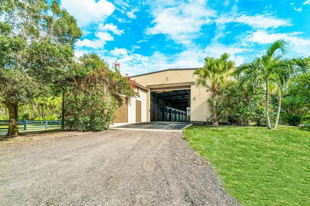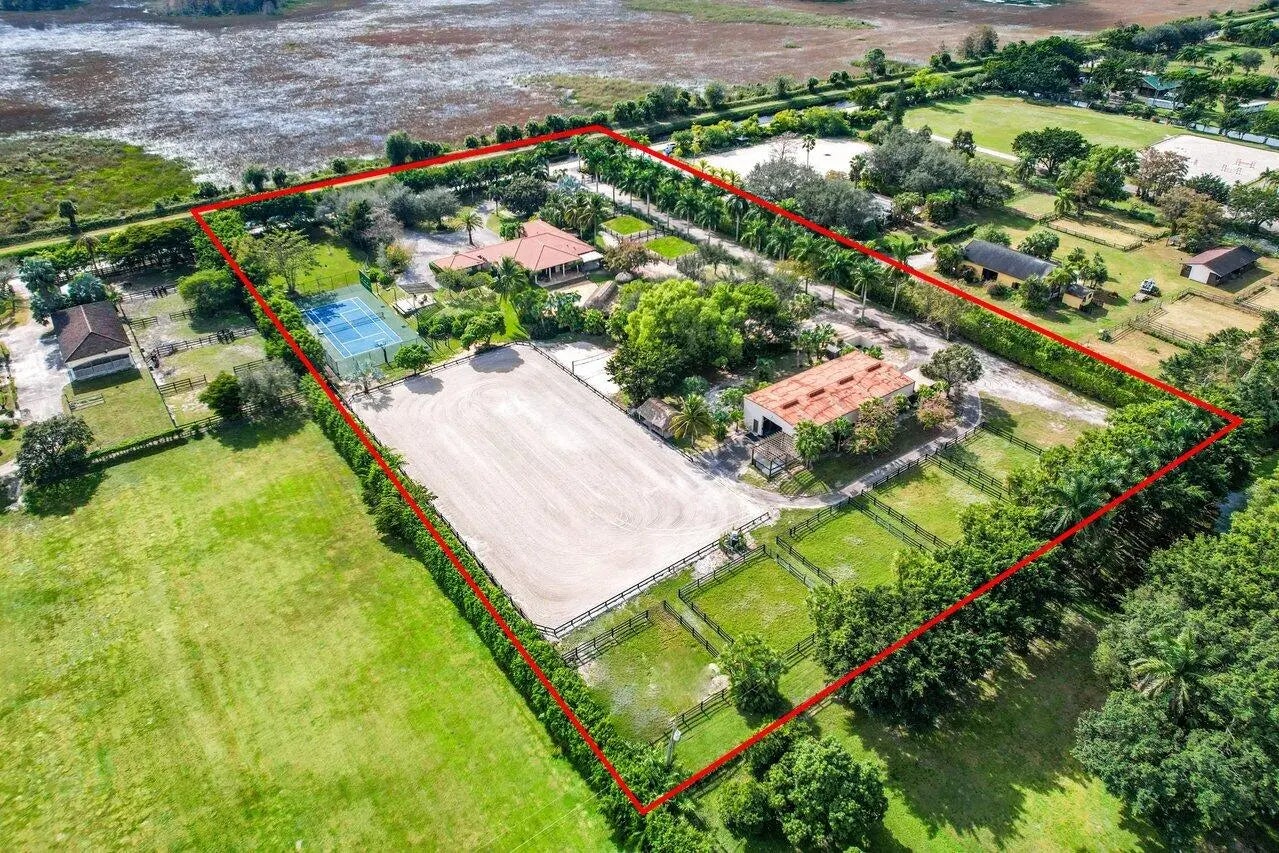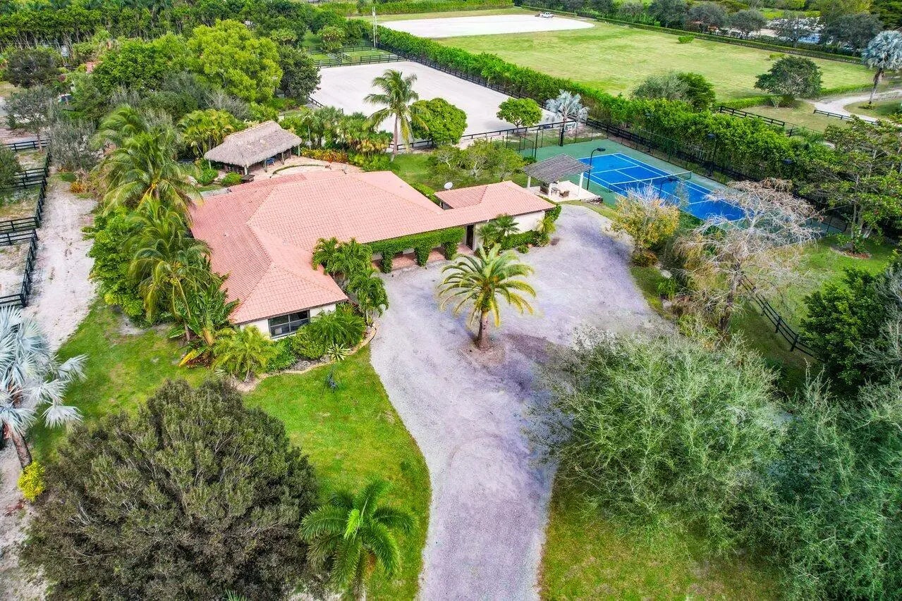 A Peacefully Situated Farm in Wellington: A 2007 Custom built home of 4,342 square feet (per county), nice open split plan with spacious 4 bedrooms, 3 bathrooms. Enjoy the benefits of a Complete Home Smart System (Control 4), capable of controlling an audio system throughout the property, security cameras, lighting, climate, gate intercom and much more, all at your fingertips. Outdoor amenities include a salt water heated swimming pool, tennis court, volleyball arena, kids park, expansive tiki hut, fire pit, sauna and outdoor shower. Recently updated 9 stalls barn with 2 wash racks, 3 apartments, 210x115 newly irrigated fenced arena and 9 paddocks of which 5 are brand new. Property has been raised and permitted to build a pad for a 6 stalls barn, although more can be built. All AC units, water pumps and water heater have been replaced less than 3 years ago.