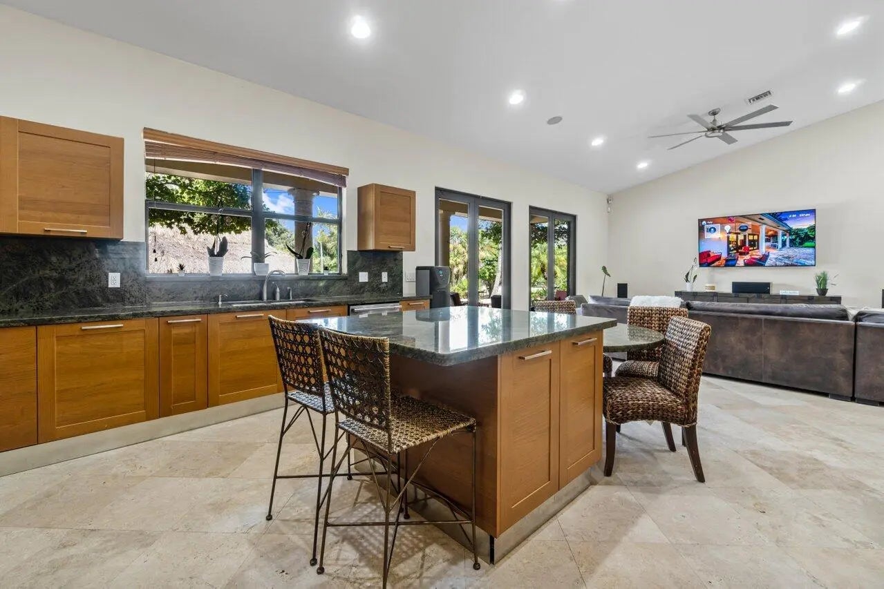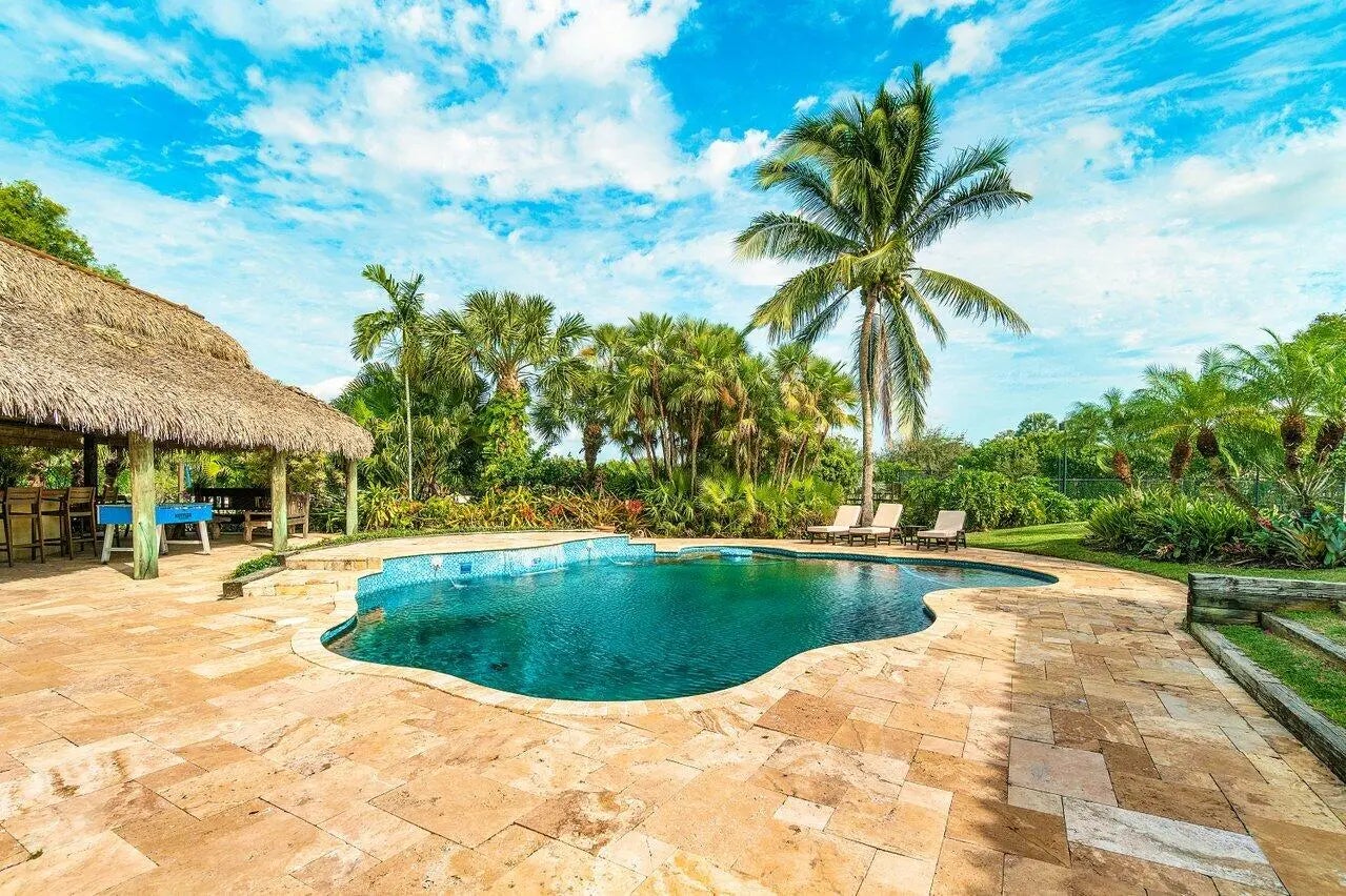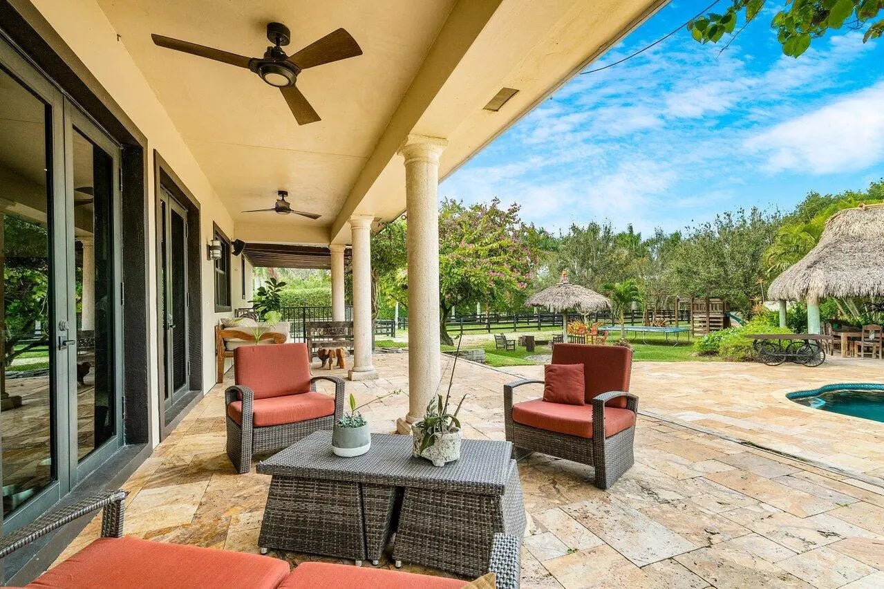 A Peacefully Situated Farm in Wellington: A 2007 Custom built home of 4,342 square feet (per county), nice open split plan with spacious 4 bedrooms, 3 bathrooms. Enjoy the benefits of a Complete Home Smart System (Control 4), capable of controlling an audio system throughout the property, security cameras, lighting, climate, gate intercom and much more, all at your fingertips. Outdoor amenities include a salt water heated swimming pool, tennis court, volleyball arena, kids park, expansive tiki hut, fire pit, sauna and outdoor shower. Recently updated 9 stalls barn with 2 wash racks, 3 apartments, 210x115 newly irrigated fenced arena and 9 paddocks of which 5 are brand new. Property has been raised and permitted to build a pad for a 6 stalls barn, although more can be built. All AC units, water pumps and water heater have been replaced less than 3 years ago.