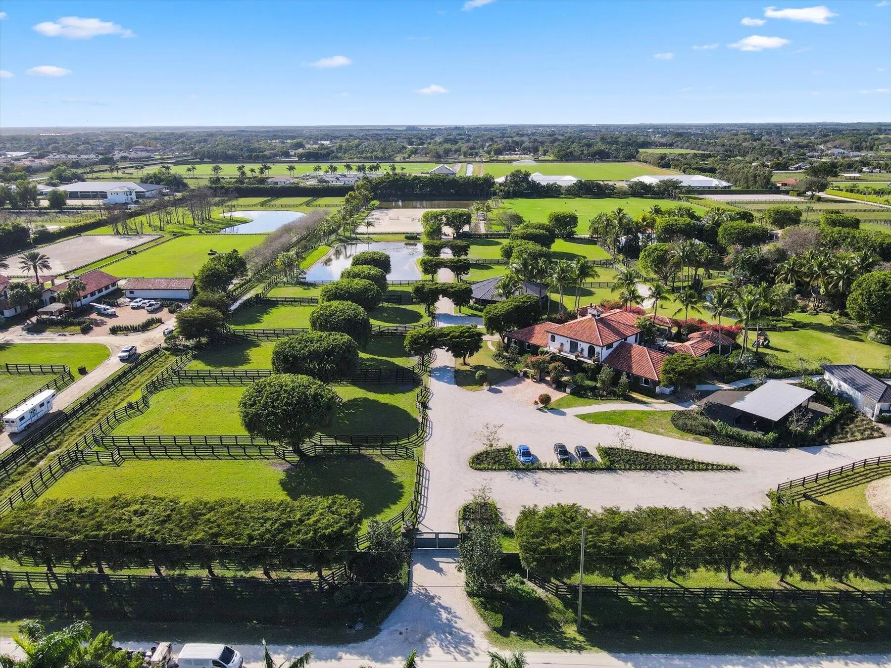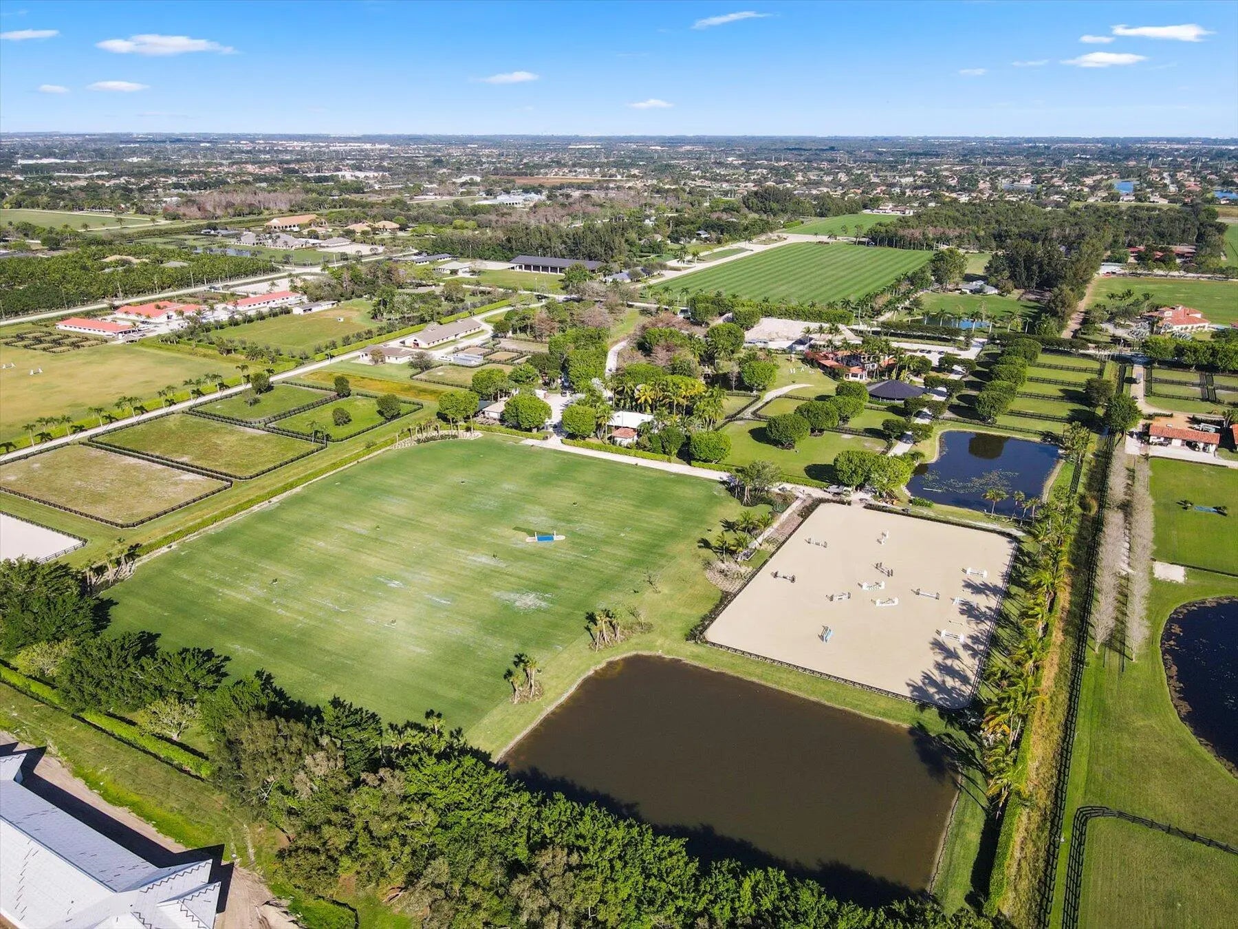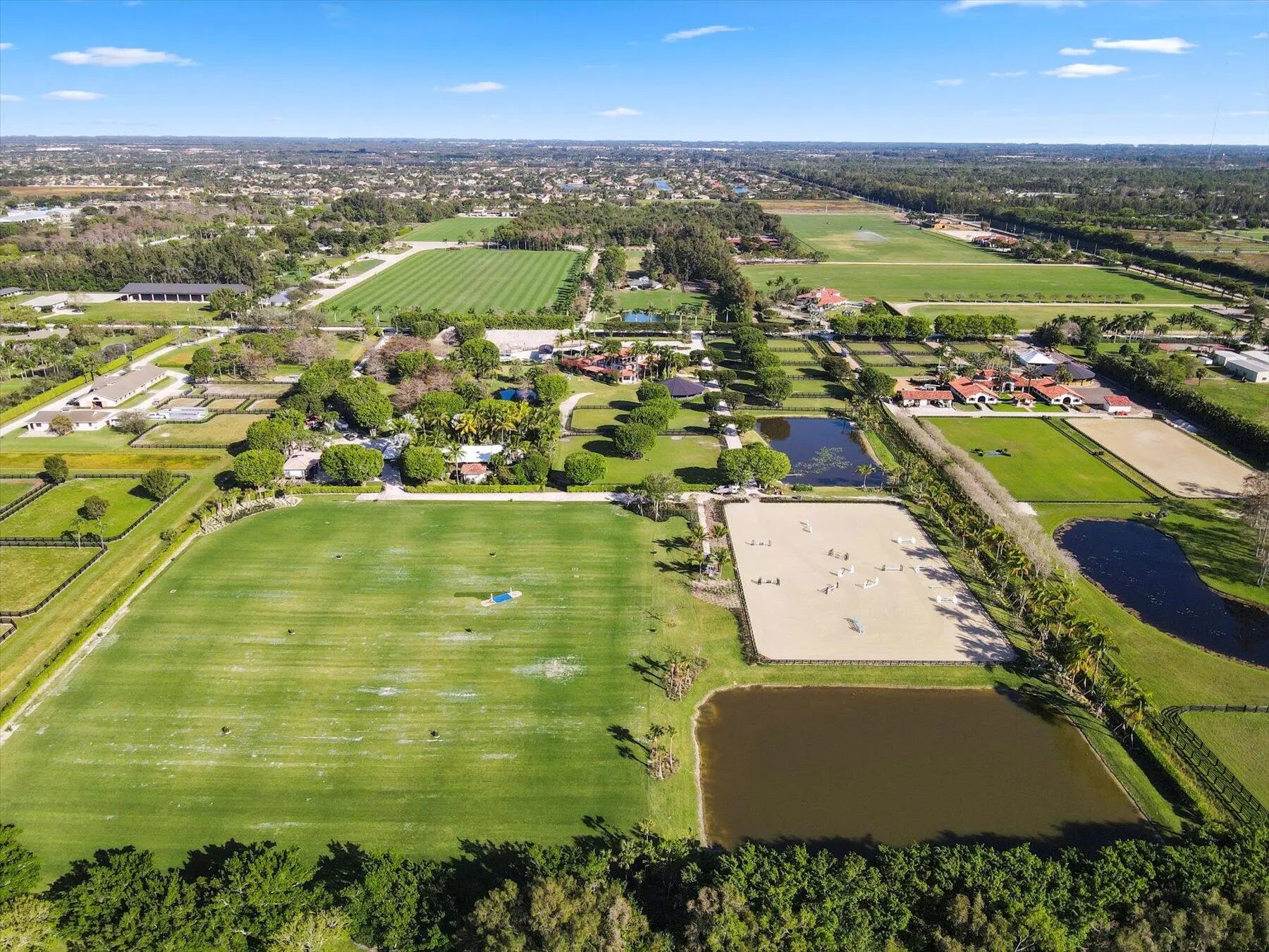 Stunning 21 acre Equestrian Compound located in the heart of Wellington close to all world class horse show and polo venues. Not to be rivaled this estate offers a 14 stall center aisle barn, large tack room, commercial laundry room, luxurious owners quarters with exceptional detail, a tennis pavilion, 6 acre irrigated Bermuda grass jump field and a new 180' X 300' riding arena adjacent to the jump field. There are guest and meeting cottages that open to a grand patio with pergolas over looking the private pond and waterfall. Truly a ''Must See'' property for the serious equestrian.