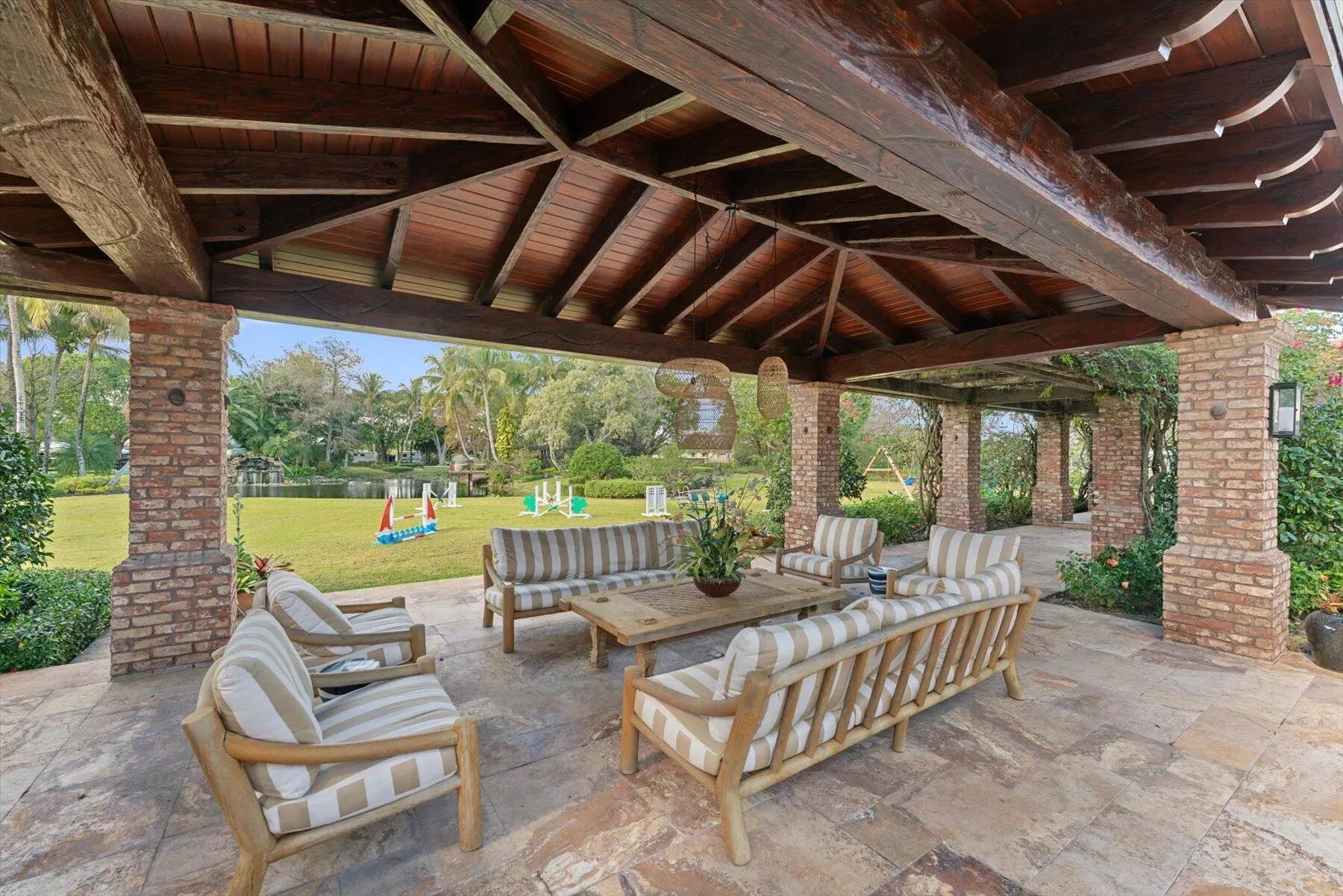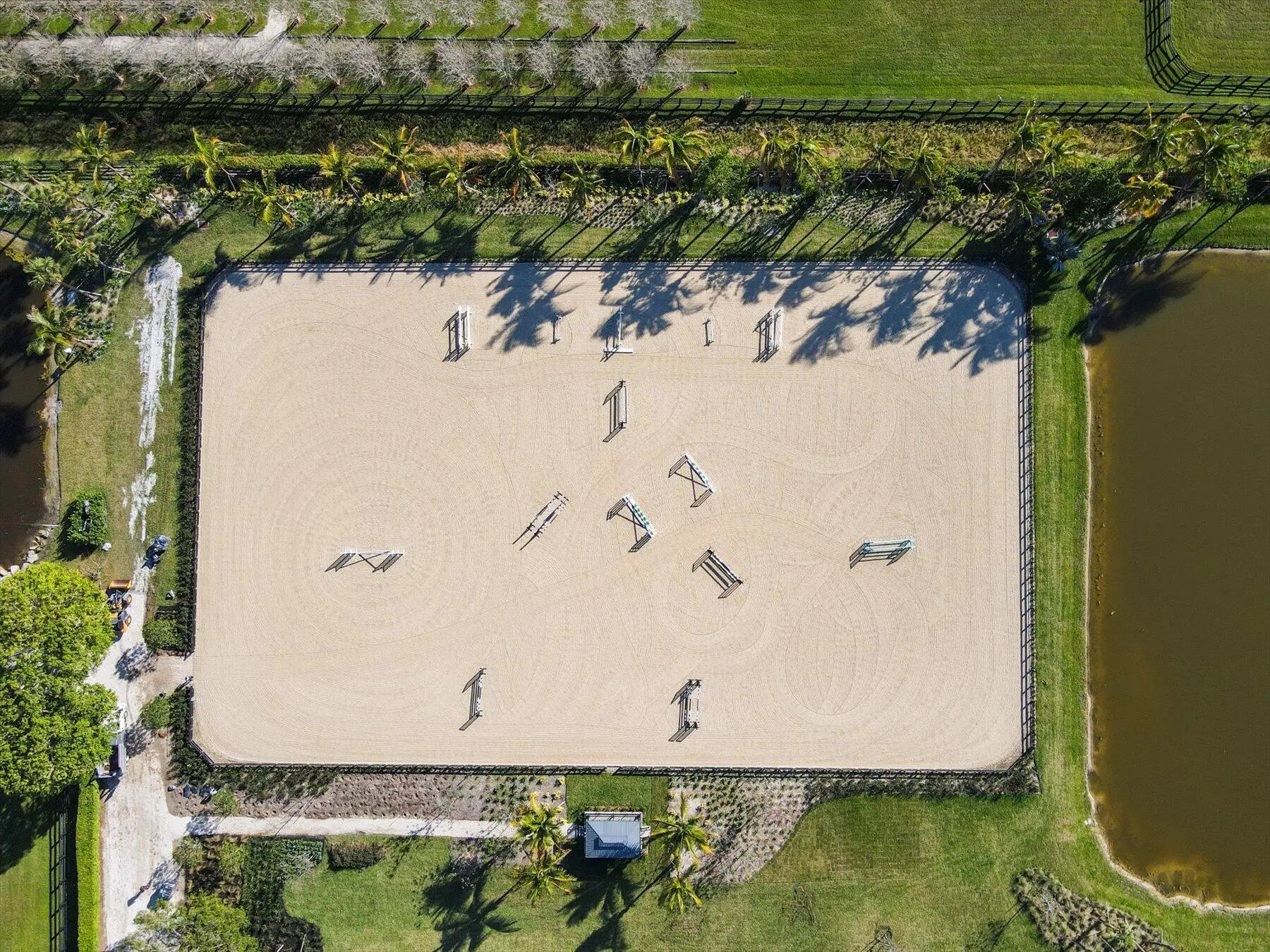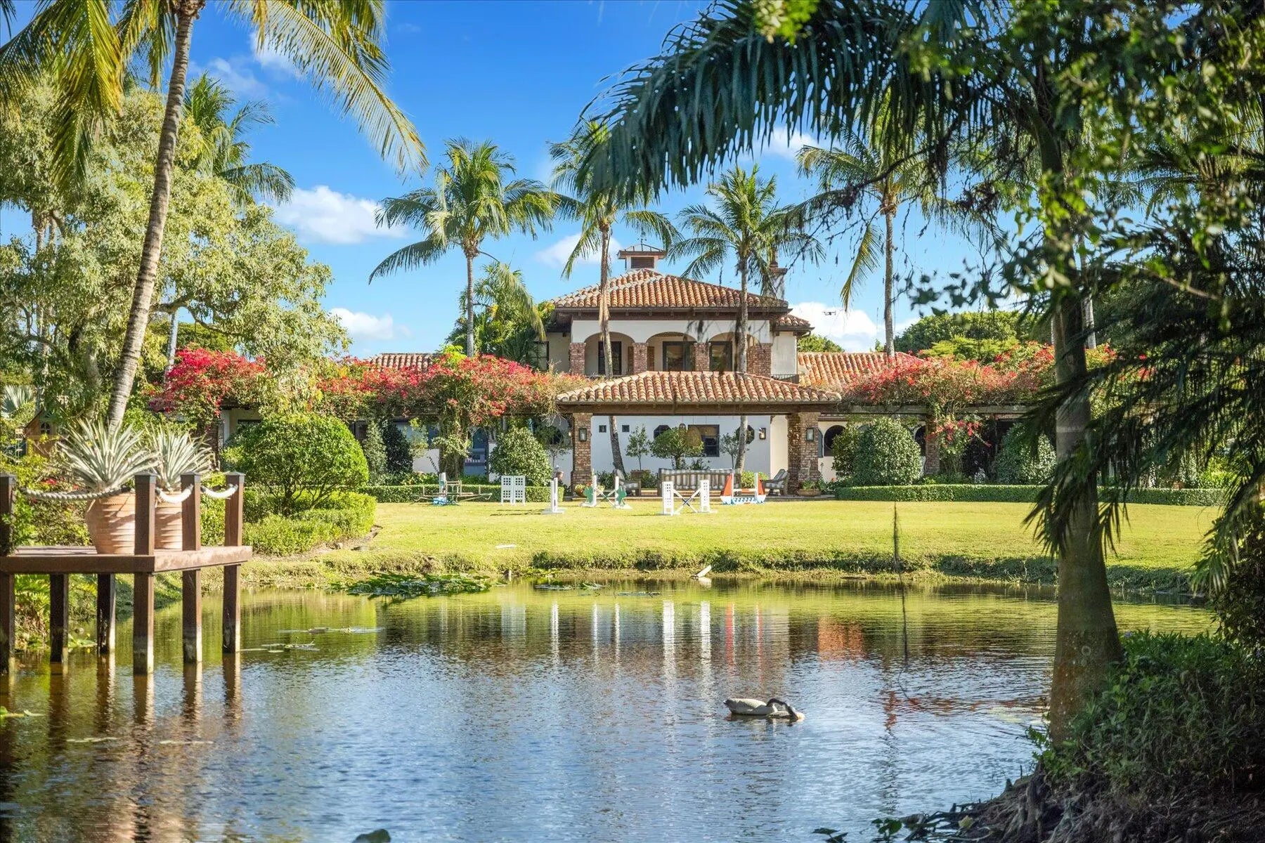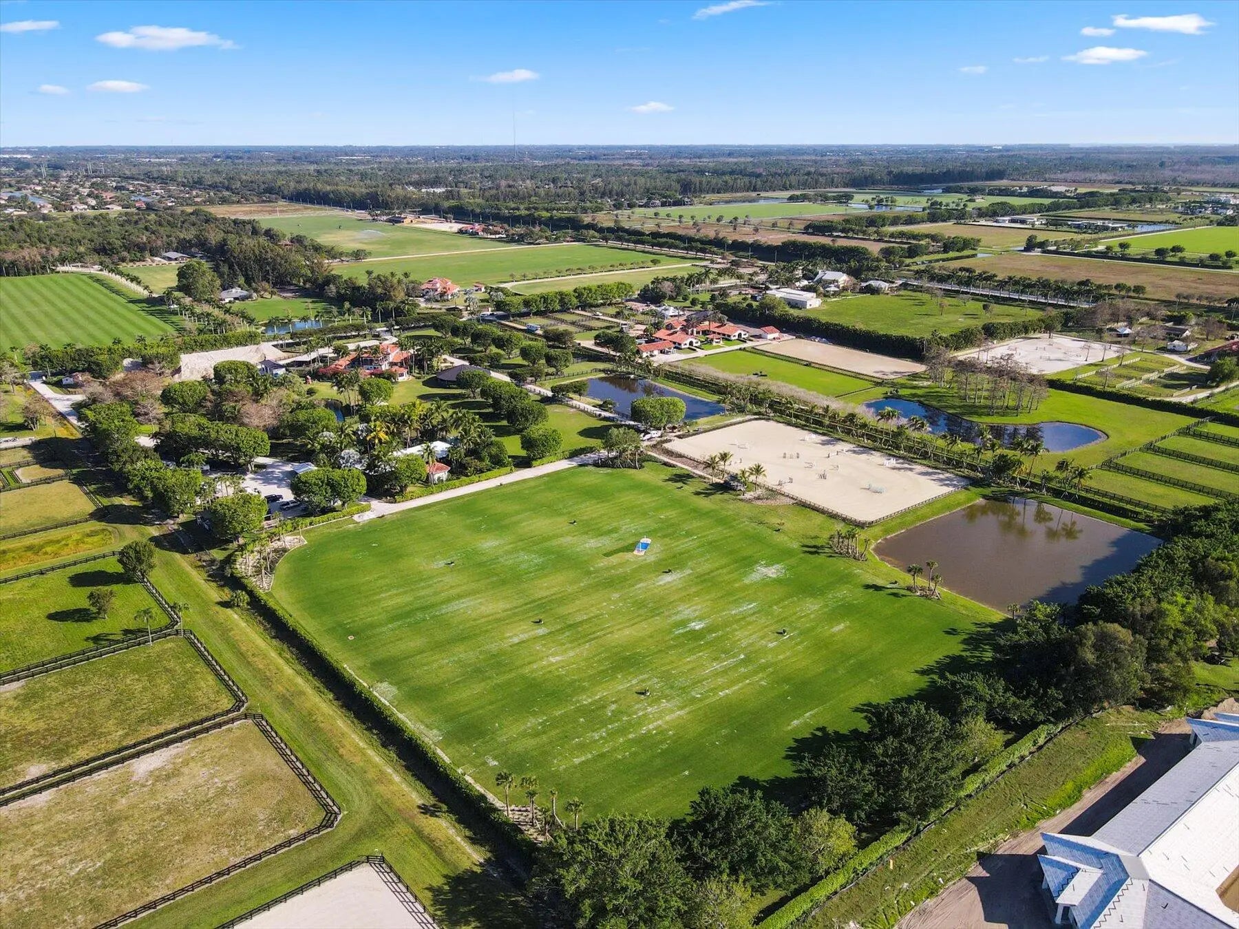 Stunning 21 acre Equestrian Compound located in the heart of Wellington close to all world class horse show and polo venues. Not to be rivaled this estate offers a 14 stall center aisle barn, large tack room, commercial laundry room, luxurious owners quarters with exceptional detail, a tennis pavilion, 6 acre irrigated Bermuda grass jump field and a new 180' X 300' riding arena adjacent to the jump field. There are guest and meeting cottages that open to a grand patio with pergolas over looking the private pond and waterfall. Truly a ''Must See'' property for the serious equestrian.