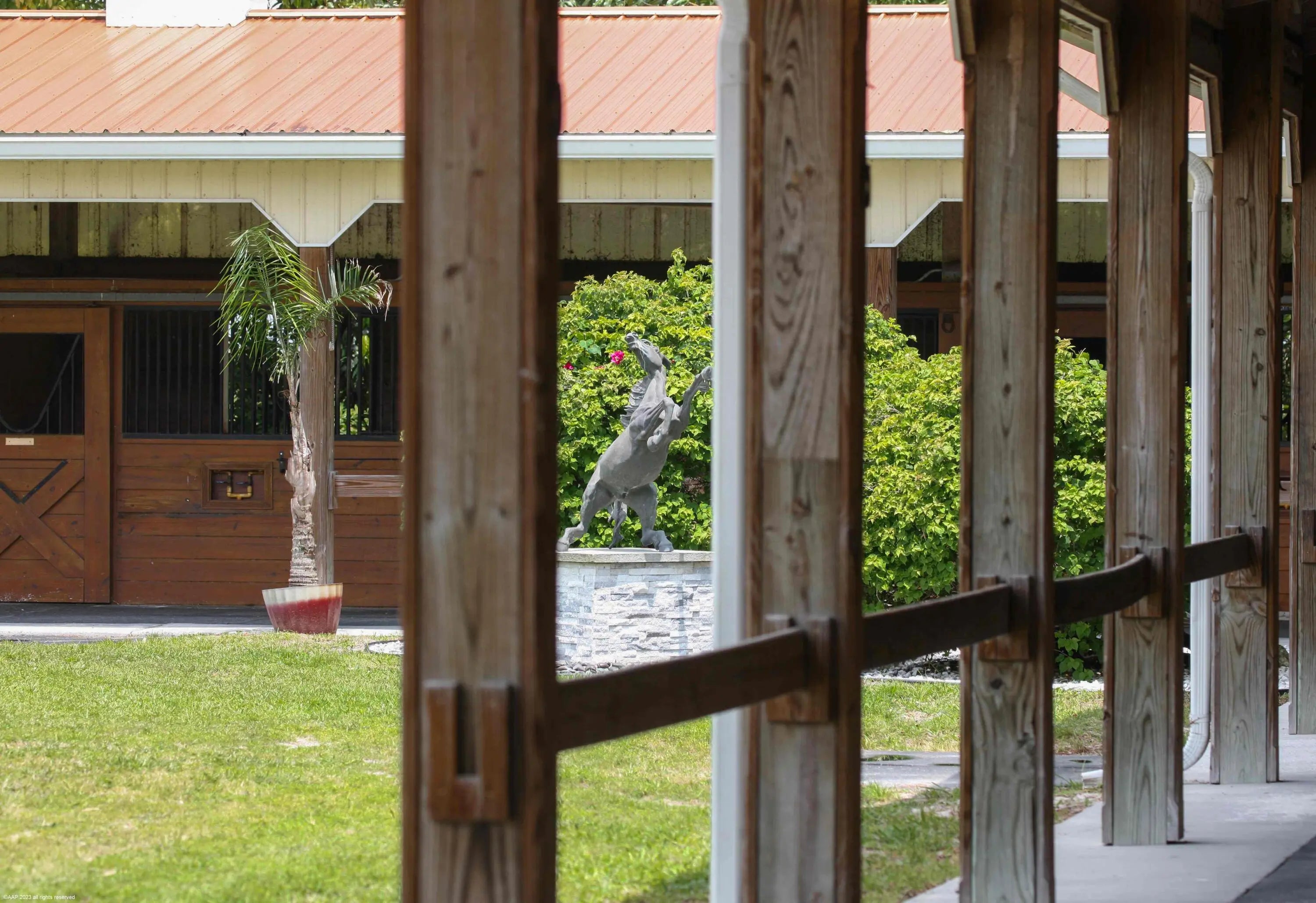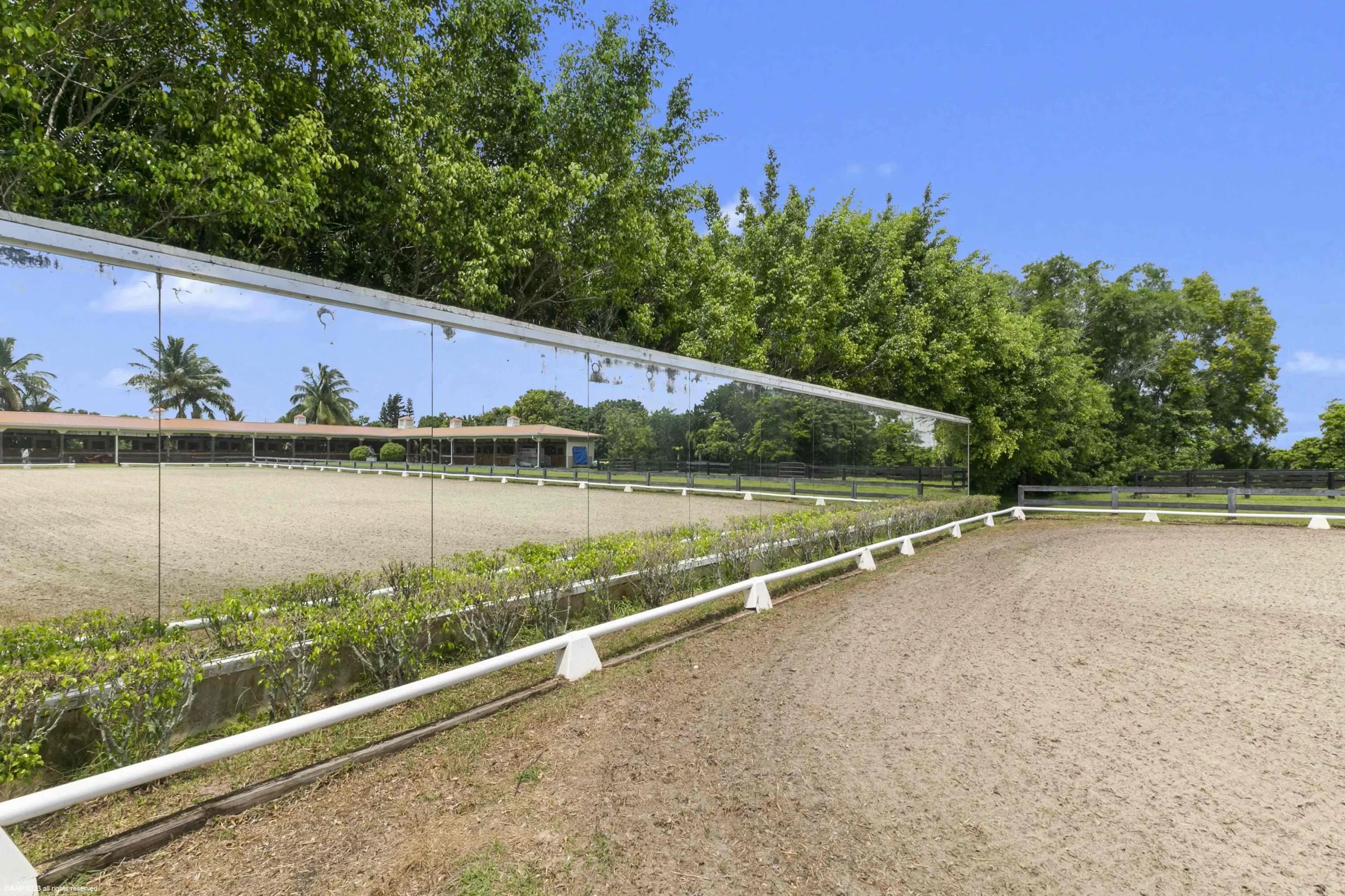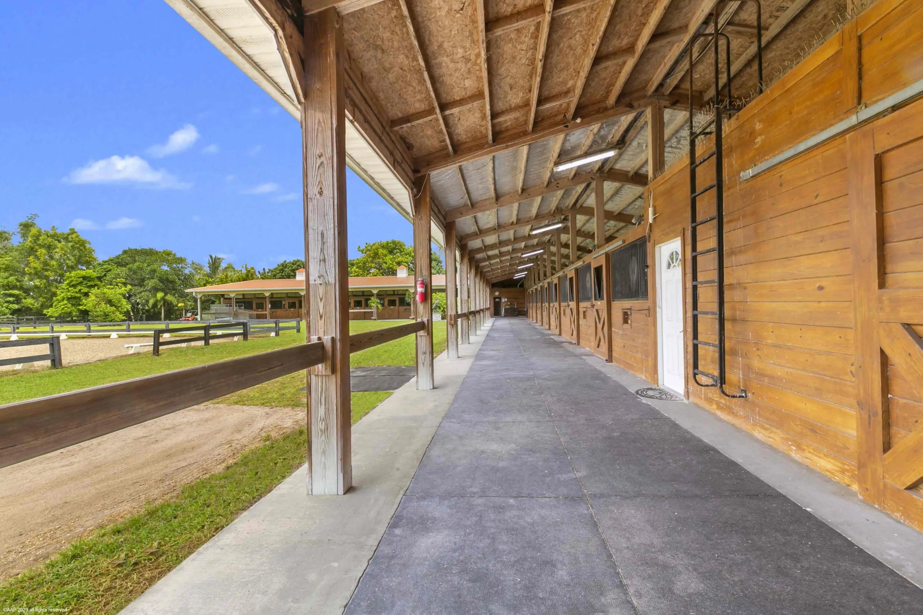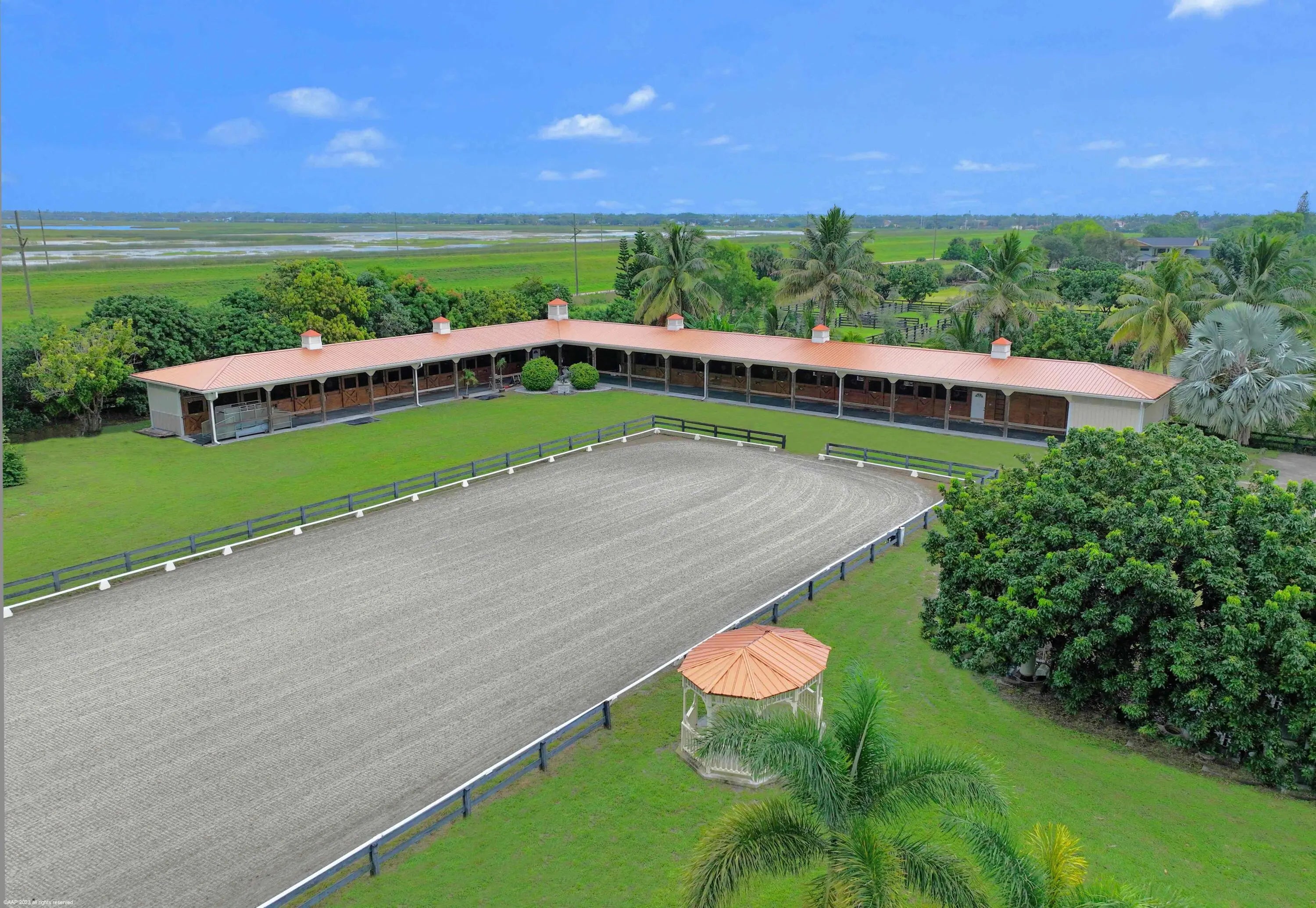 An amazing opportunity to own a beautiful turnkey horse farm in Wellington's horse country! Seller financing potentially available!! This farm is an exceptional value and is available now for quick occupancy! Designed and outfitted for the professional equestrian, the 5.51-acre property has a great layout and offers a 2010 Amish built barn with a studio apartment grooms quarters, 16 stalls (all 12x12 ft), two interior wash bays, farrier station, large tack room with washer/dryer/refrigerator/sink, bathroom, hay and feed rooms, horse hair interceptor, and a horse treadmill hook-up. The all-weather sub-irrigated arena features a newly-upgraded control system, professional top-of-the-line footing, dressage mirrors and a viewing pergola. There are 7 grass paddocks and a round pen.