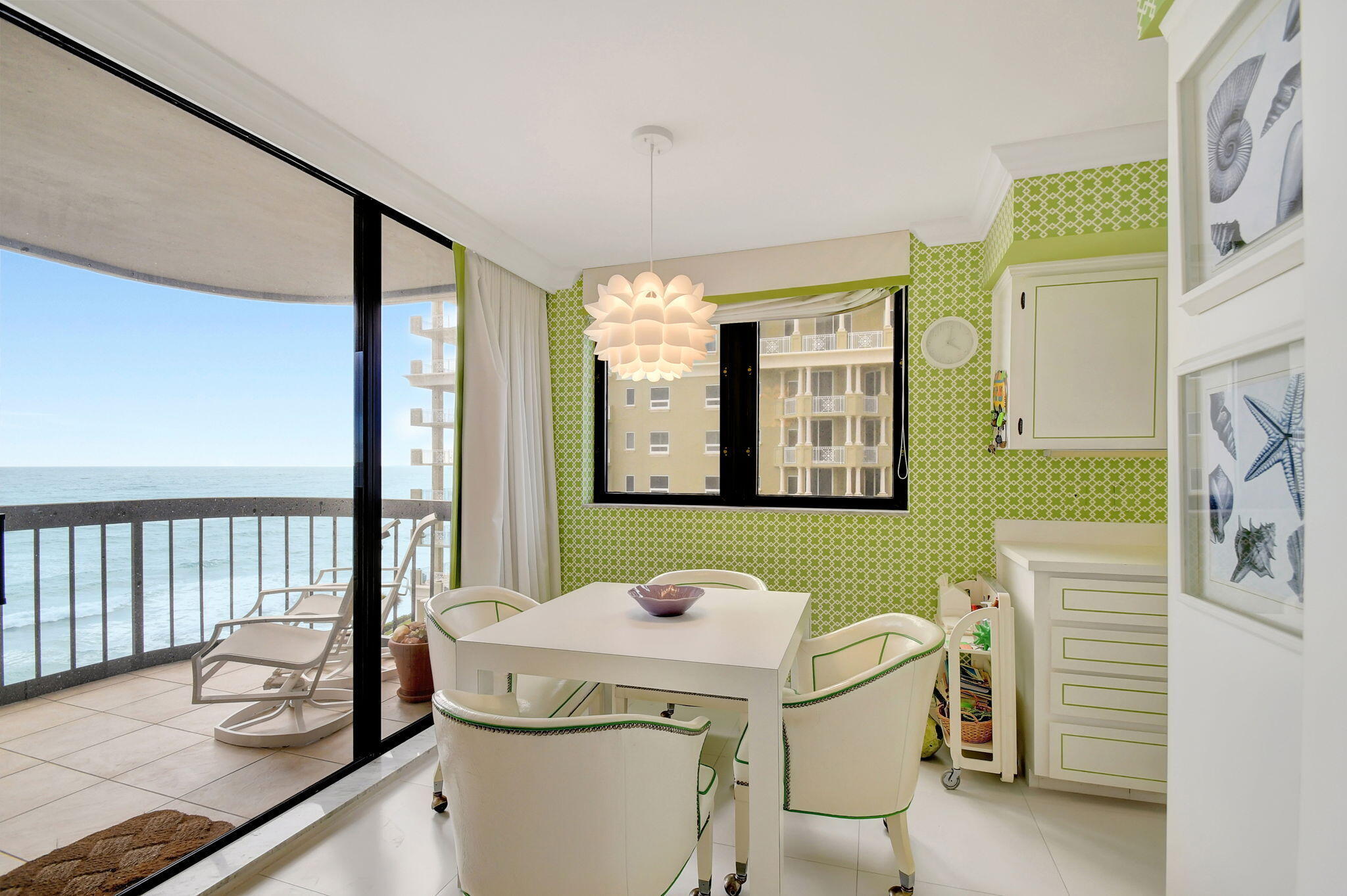 Make this your home away from home, direct Ocean and Intracoastal view two large bedrooms and baths. Large living room and dining room, kitchen with white cabinets, large window over the sink with ocean and intracoastal views. The large balcony can accommodate a dining area plus seating to watch the ocean waves. Enjoy the heated beachside pool with Jacuzzi, new stainless-steel barbecue area with dune walks, state-of-the-art fitness center with his/her saunas, relaxing billiard room with library, ocean lounge with full kitchen and bar, a secluded beach with private access, a twenty-four-hour manned guard gate, full time concierge.