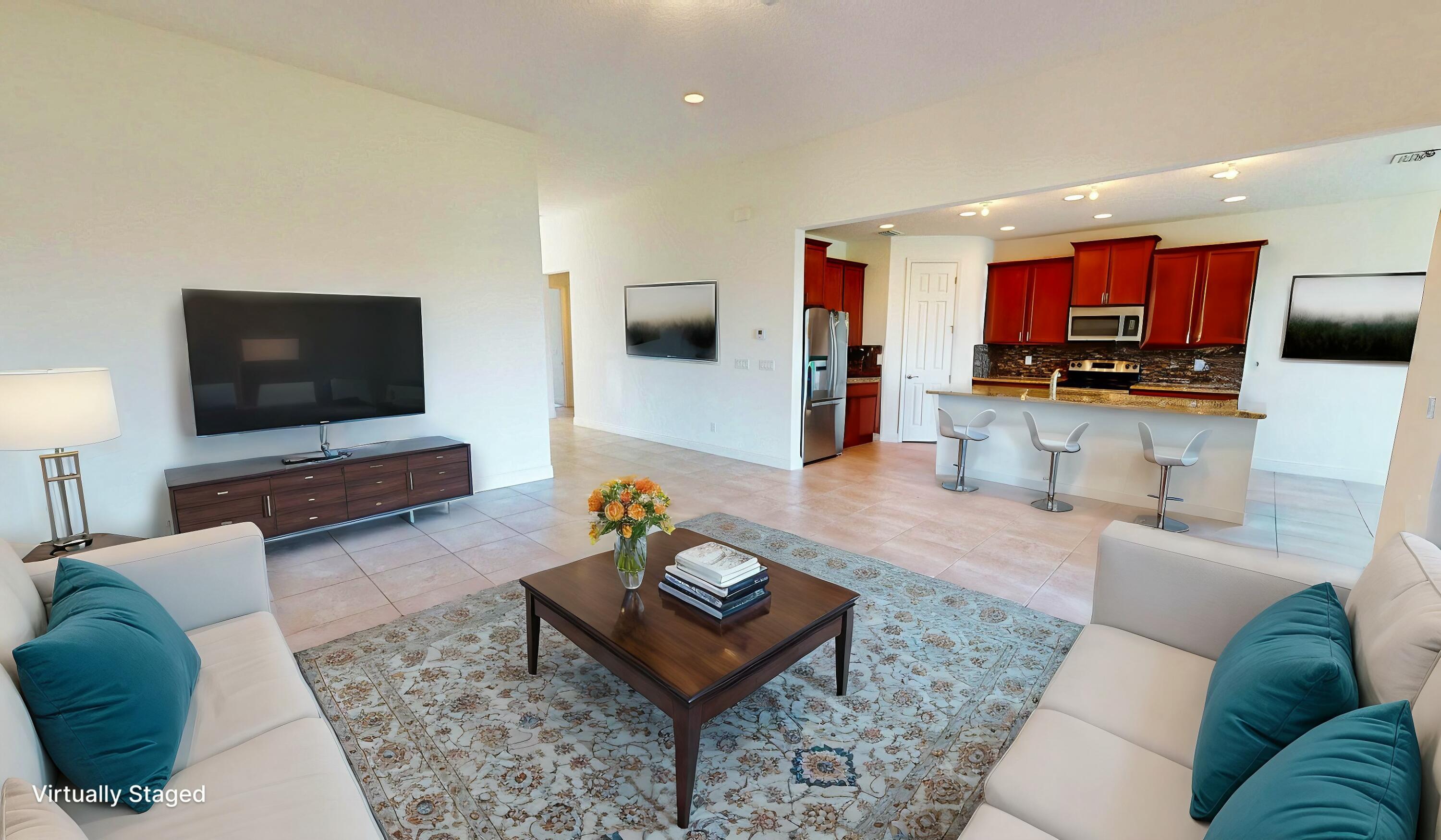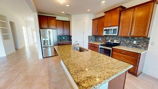 This elegant 4-bedroom, 3-bathroom home with a dedicated den offers over 2,400 square feet of luxurious living space, perfectly designed for comfort and style. From the moment you step inside, you're greeted by breathtaking long lake views that serve as the backdrop to the open family room and stunning kitchen. The kitchen, designed with entertaining in mind, features premium finishes, a large center island, and seamless sightlines to the main living areas. The expansive master suite offers a private retreat, complete with serene lake views, an oversized walk-in closet, dual sinks, and a spa-like stand-up shower. Three spacious guest rooms are strategically positioned for privacy, making them ideal for family or visitors.The den, located at the front of the home, provides a flexible space for an office or creative pursuits. Additional features include impact windows, a durable tile roof, and a brand-new AC unit for peace of mind. The large covered lanai is the perfect spot to relax and take in the stunning lake views, offering a serene outdoor living space. This home is a true gem, blending modern elegance with thoughtful functionality.