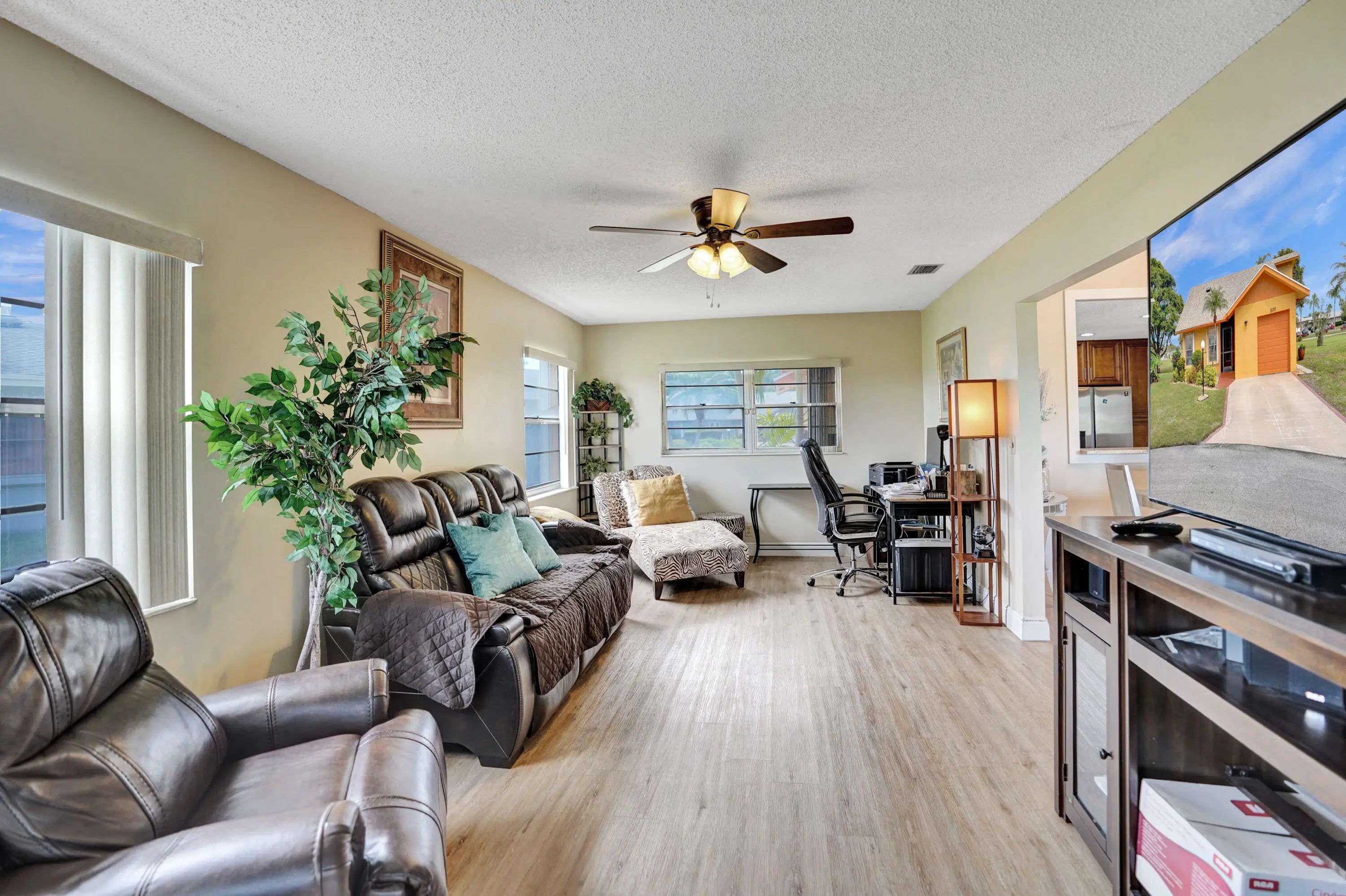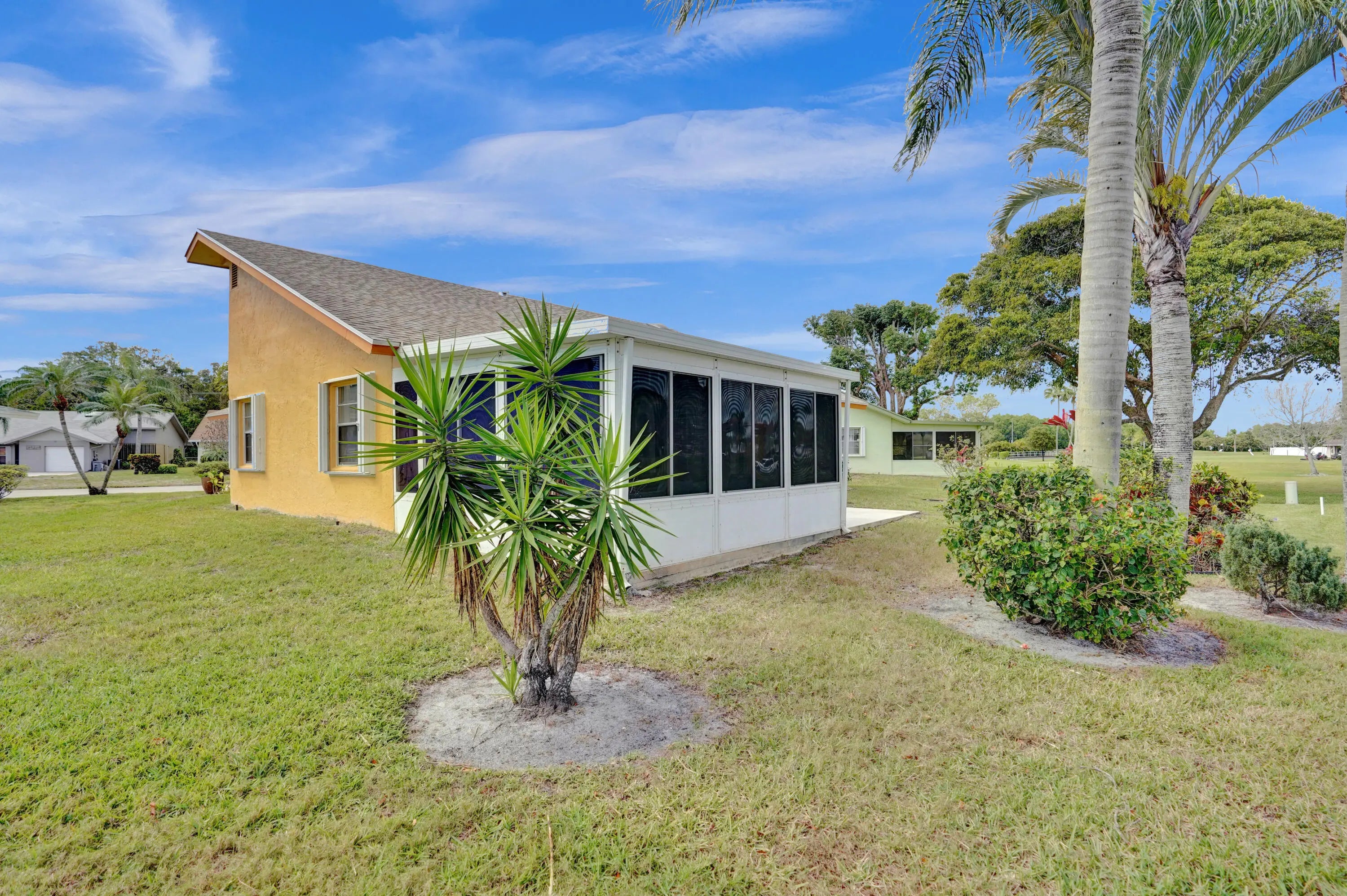 Florida lifestyle without the Florida price tag! This updated 2-bedroom single-family home in the sought-after Cypress Lakes community offers comfort, space, and thoughtful upgrades throughout. The redesigned kitchen features SS appliances and plenty of room for hosting. You will love the airy layout, volume ceilings, updated flooring, and a den perfect for a home office and TV room. An enclosed sunroom adds expanded living space, while the outdoor patio offers a peek of the lake and 18th hole just enough to relax with morning coffee. Additional perks include a skylight, decorative lighting, storm protection, and a garage. The Cypress Lakes 55+ Community offers 24/7 gated security, low HOA fees, and an active clubhouse lifestyle close to everything West Palm Beach has to offer!